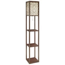 Floor lamp with flower pattern on shade & Three-tiered Shelves