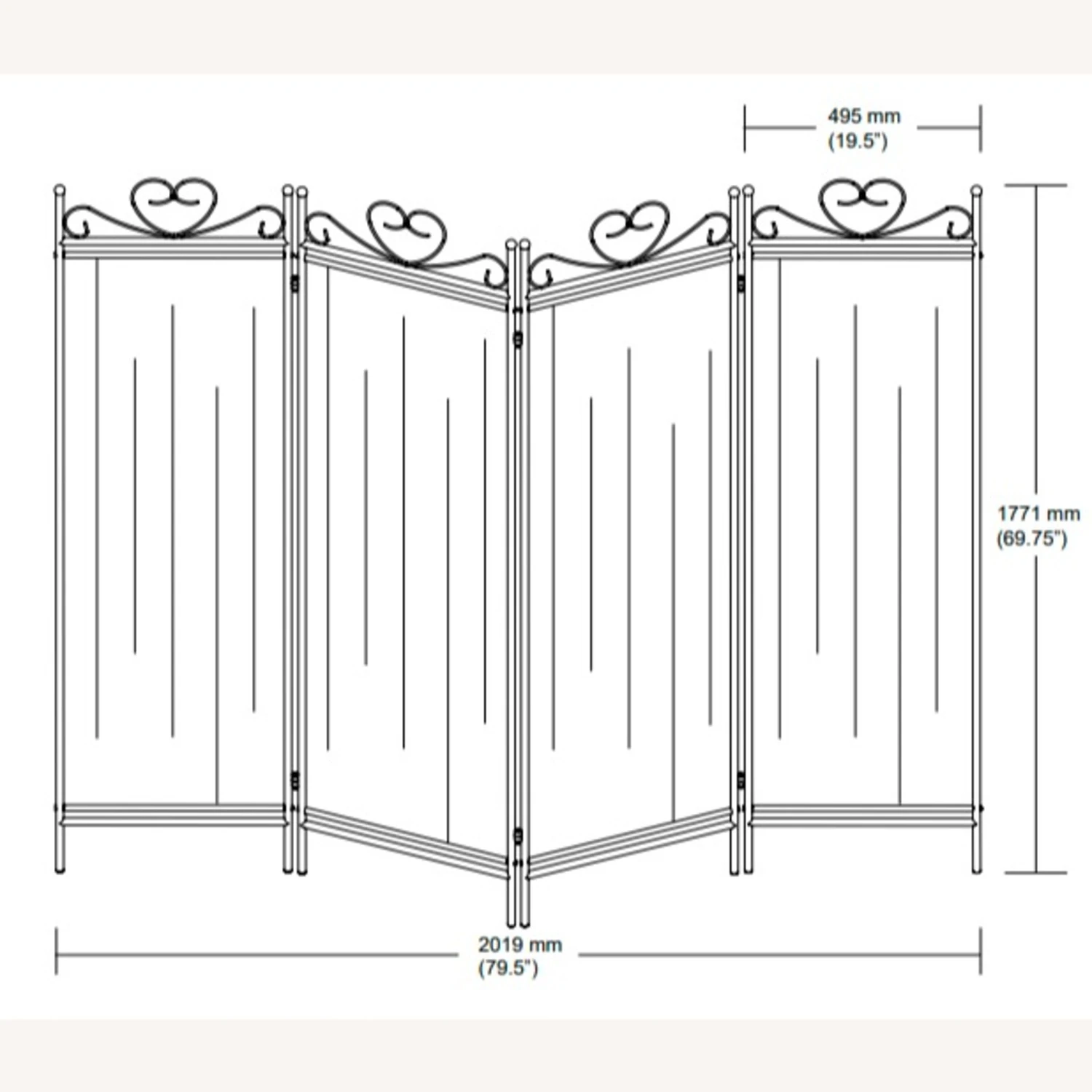 Overall Dimensions: Width: 79.5 inches, Height: 69.75 inches, Depth: 0.5 inches