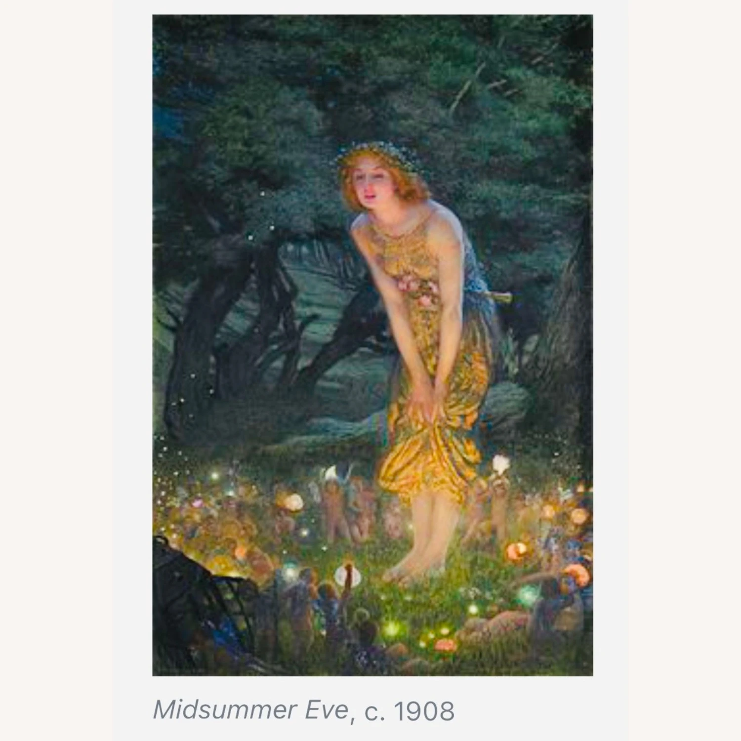 Seller’s Notes: This gorgeous print of a Pre-Raphaelite, Watercolor painting will help you to believe in fairies again! : ) This enchanting and well-known piece, originally painted c. 1908, one for which Edward Robert Hughes is famous, is truly memorable. It can add a pretty and poetic element of watercolor whimsy, to your home’s walls. Also, it is ready to be hung up ASAP! Available for pickup in Hell’s Kitchen, NYC – or for delivery. Thank you for your consideration, Katherine