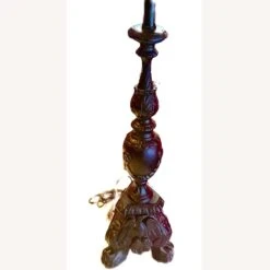 Seller’s Notes: This is a stunning, working lamp! Photos don’t do justice, This is a heavy, federal-style vintage lamp made by famed American designer Frederick Cooper from Chicago. It is carved out of some sort of stone or ceramic/clay material. This is a seriously gorgeous accent piece. Minor marks on one side.
