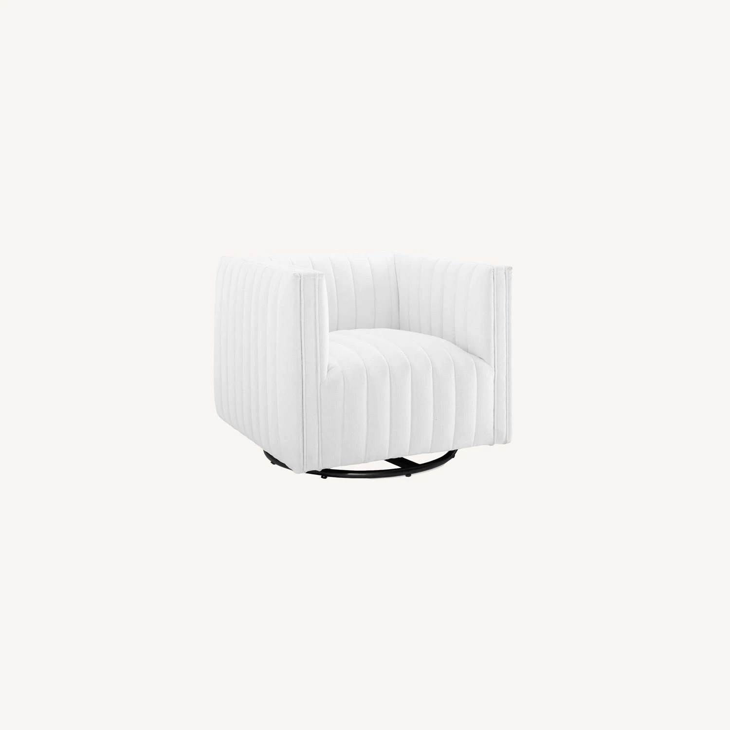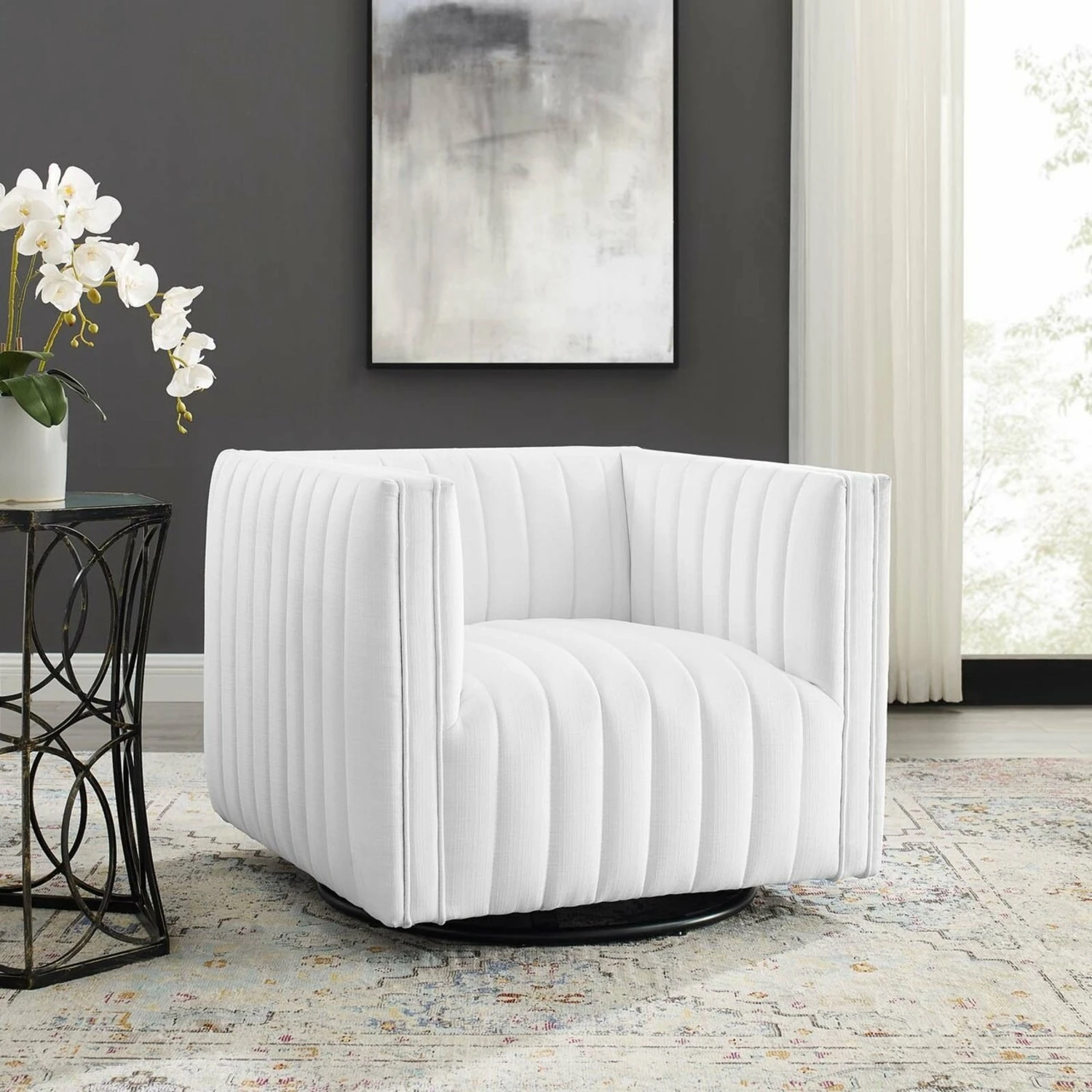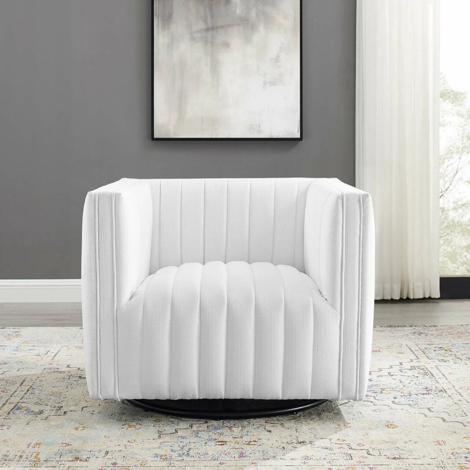 • Follow the organic linear design of this Channel Tufted Fabric Upholstered Swivel Armchair.