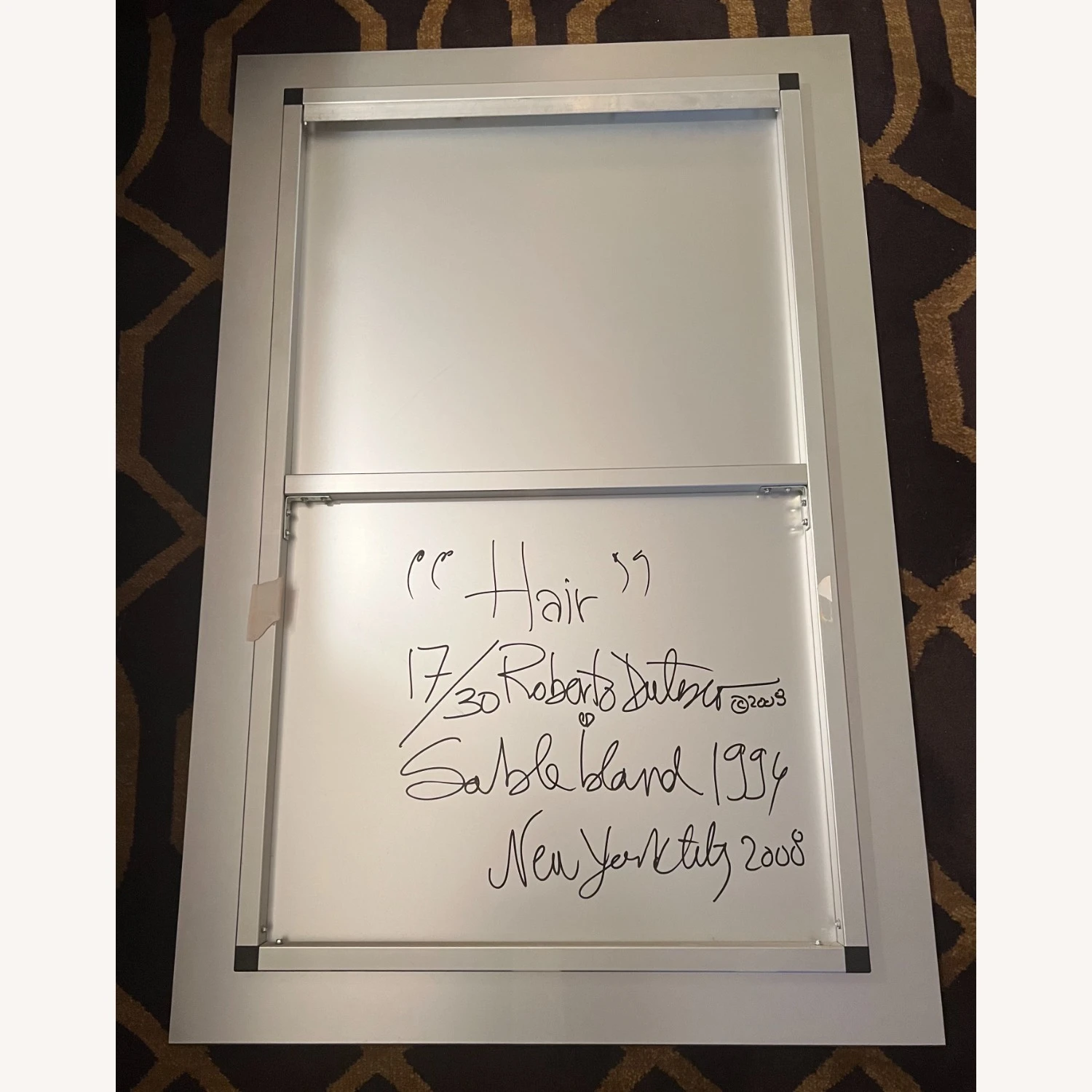Seller’s Notes: This is a limited (17/30), signed photograph entitled “Hair” by photographer Roberto Dutesco, part of the famous series of photographs entitled “The Wild Horses of Sable Island”. Dutesco’s works have been exhibited world-wide and featured in the documentary film “Chasing Wild Horses”. This toned metallic chromogenic artist print is face mounted on plexiglass with aluminum backing. It measures 48 inches in height and 32 inches in width. It is in mint condition. The now famous horses of Sable Island, off the coast of Nova Scotia, as described on the Roberto Dutesco website: “Far from the East Coast of Canada, cast ashore or abandoned by sailors long ago, a small herd of wild horses has managed to thrive, untouched by man, in an austere, unforgiving environment that offers not a single sheltering tree and just grass and rainwater ponds for sustenance.”
