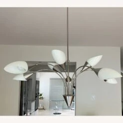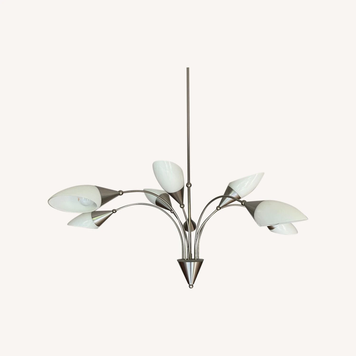 Ceiling Hanging lamp of stainless steel and 8 Shades of technical Glass in white