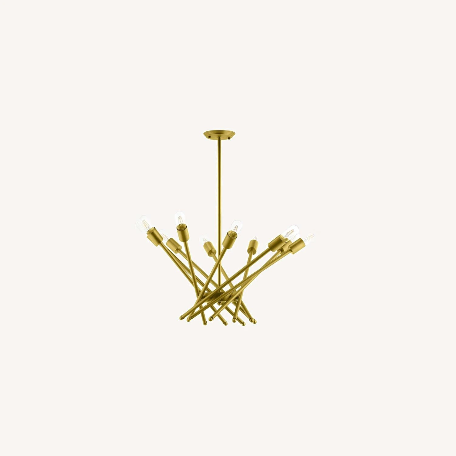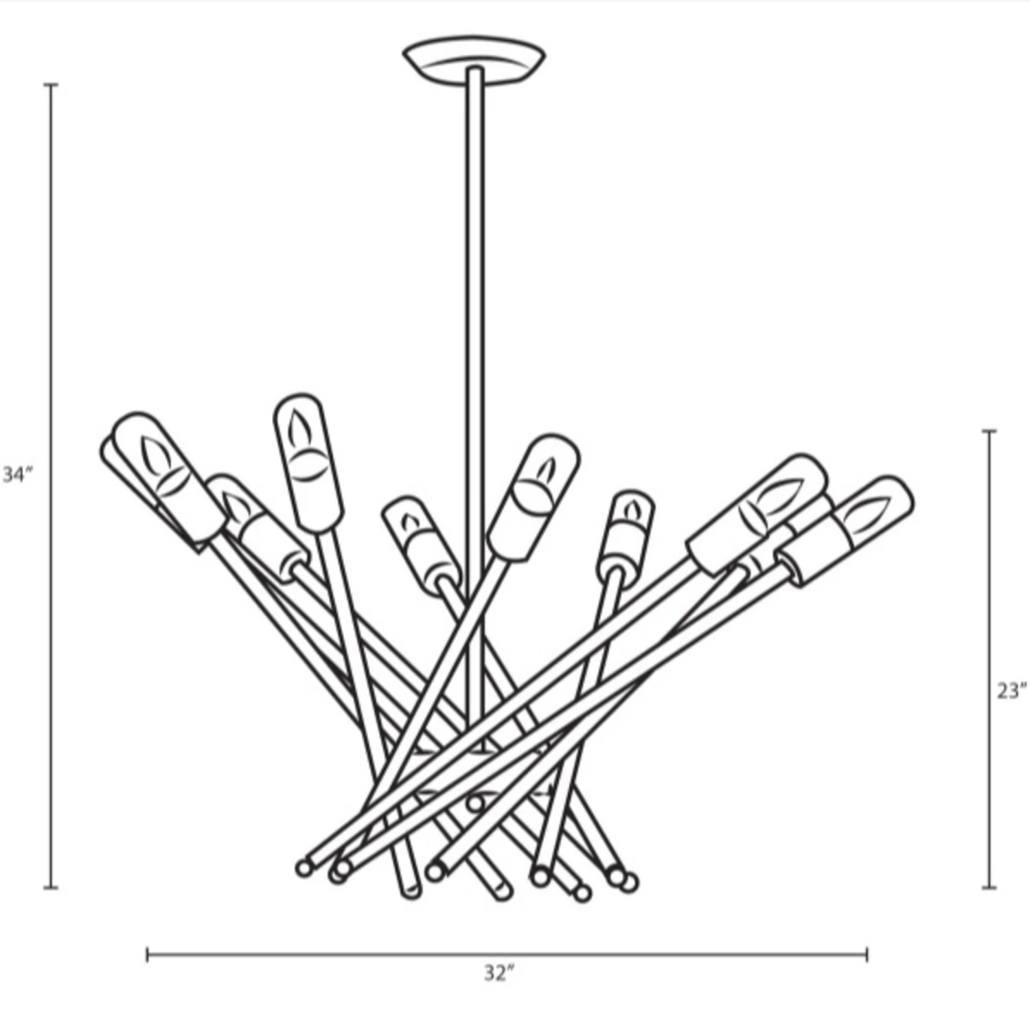 • This unique pendant light features an array of ten height adjustable brass metal rods that overlap to create a stunning array.