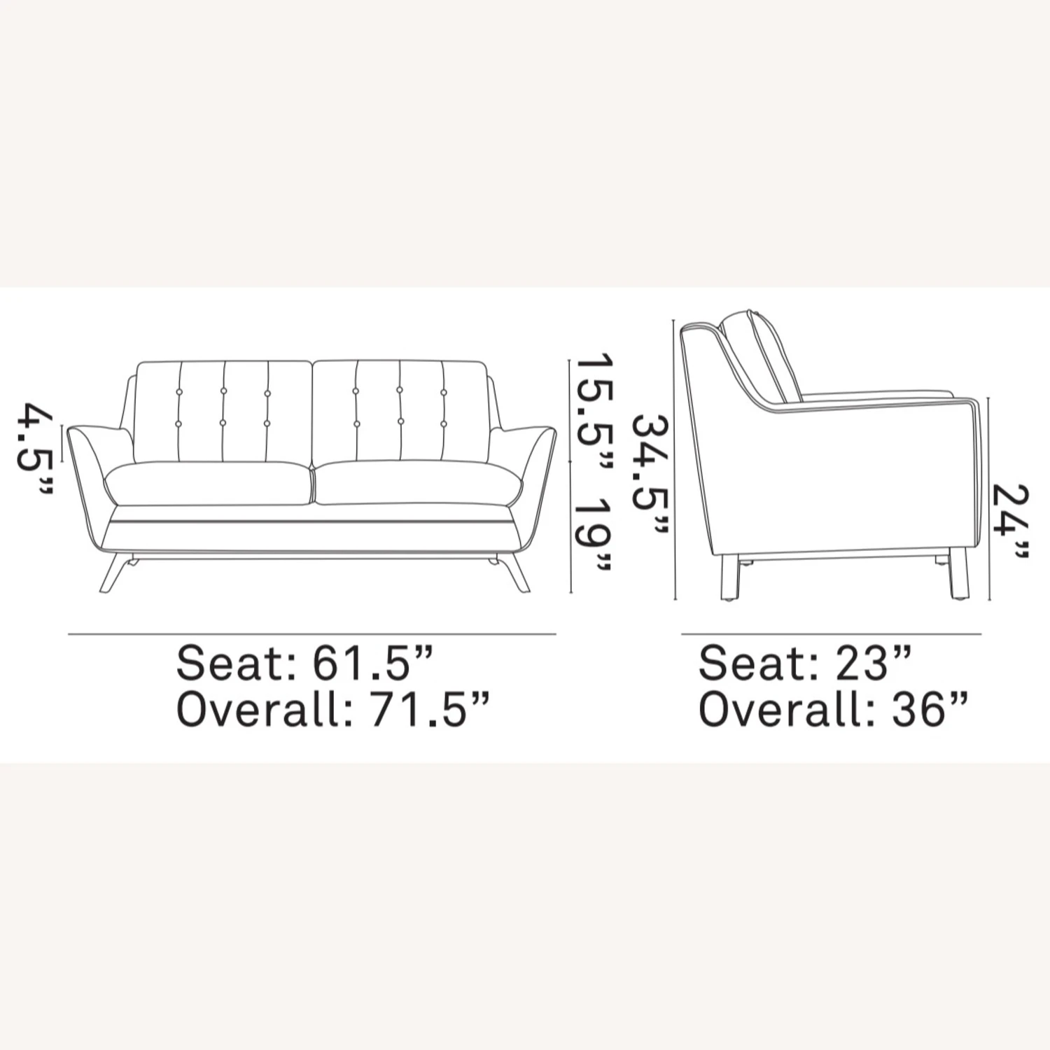 โข Exquisitely crafted with gently sloping arms, comfortable plush seat cushions, and adeptly tufted back cushion buttons, this is a delightful collection that reinvents mid-century style.