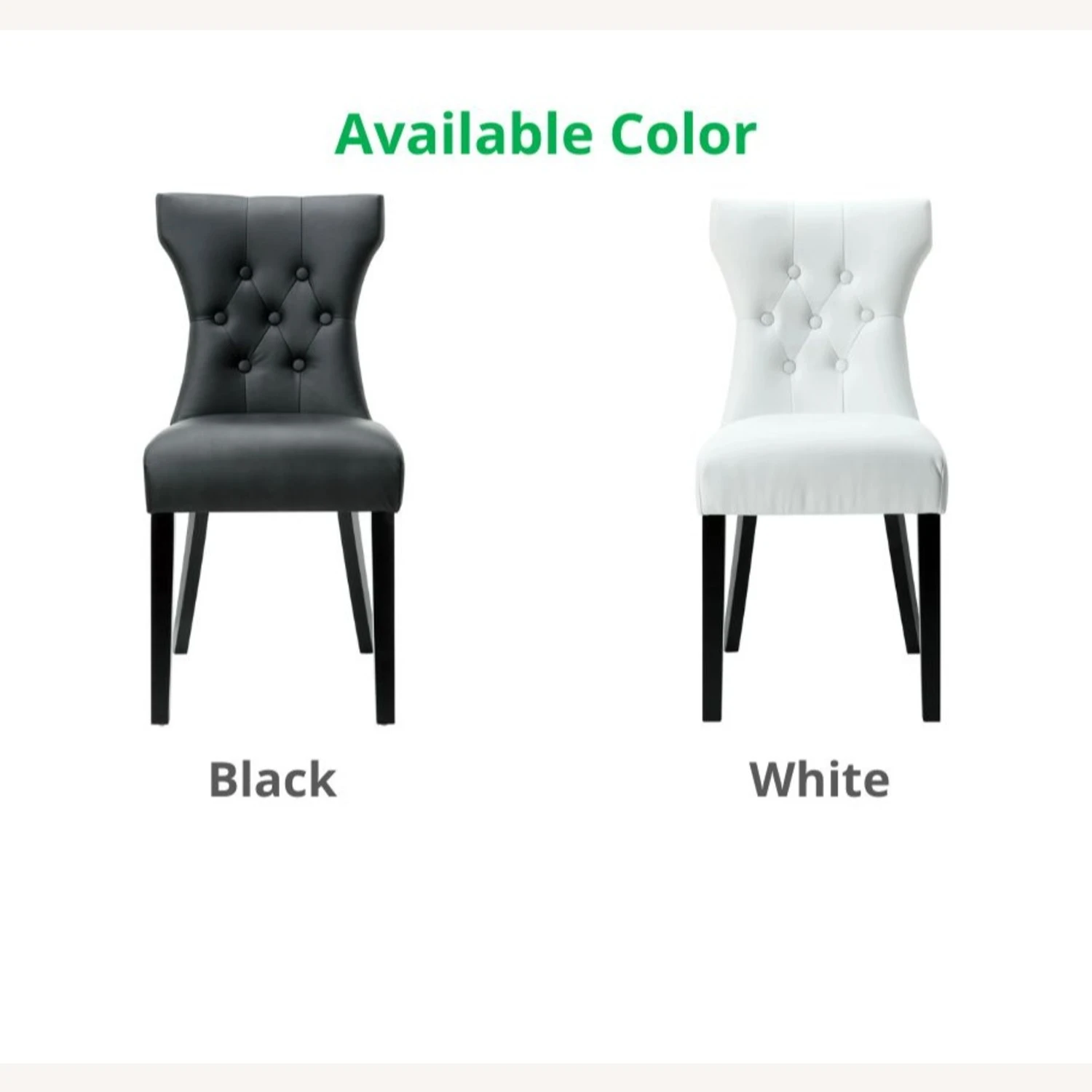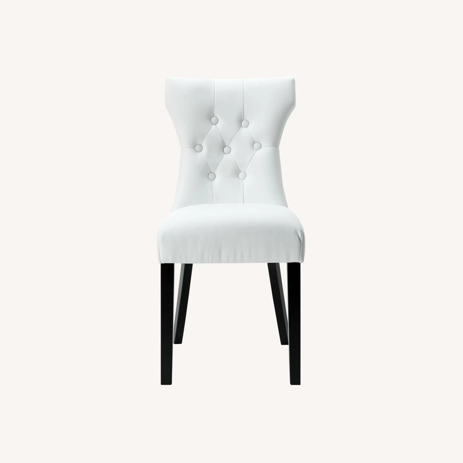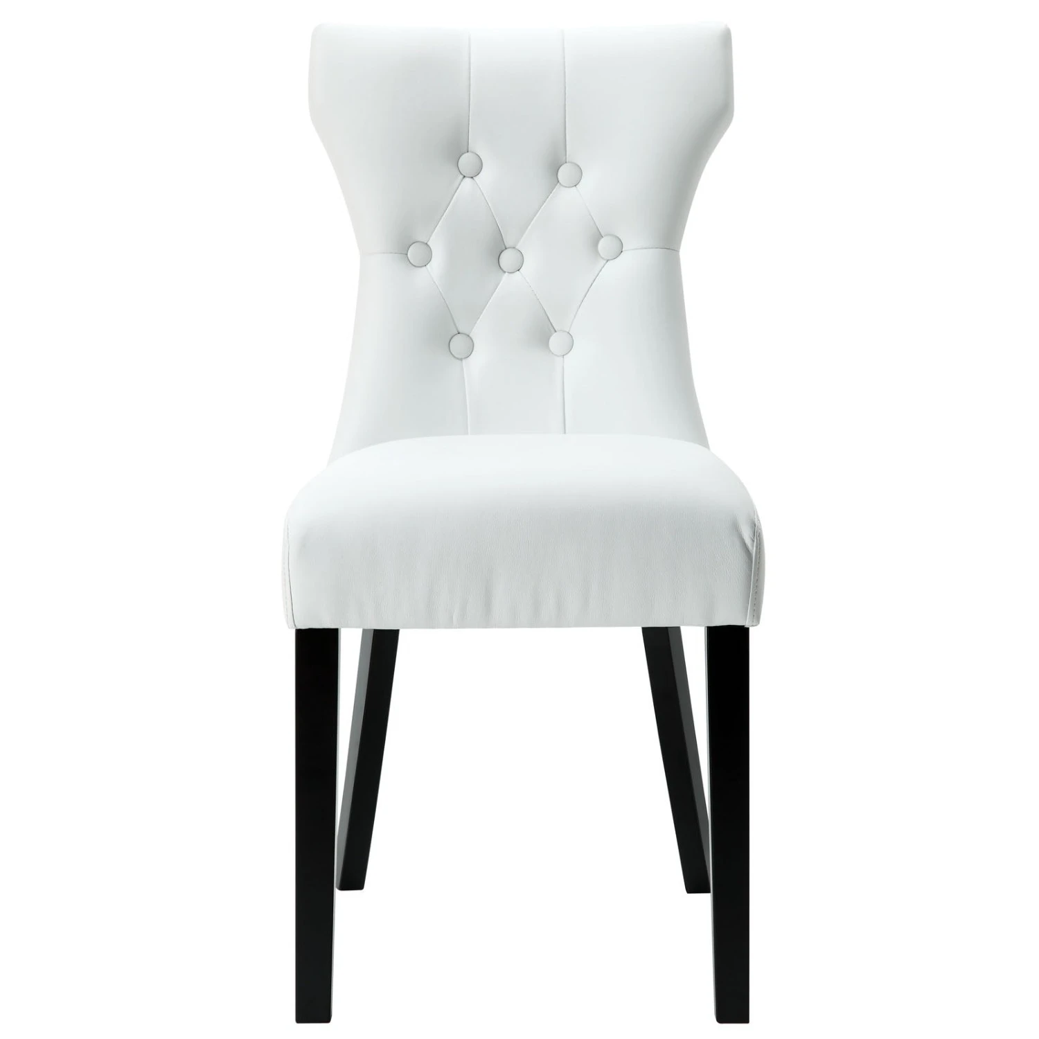 โข A softly tapered back and rounded hardwood legs lend distinguished support to this hourglass-shaped chair.