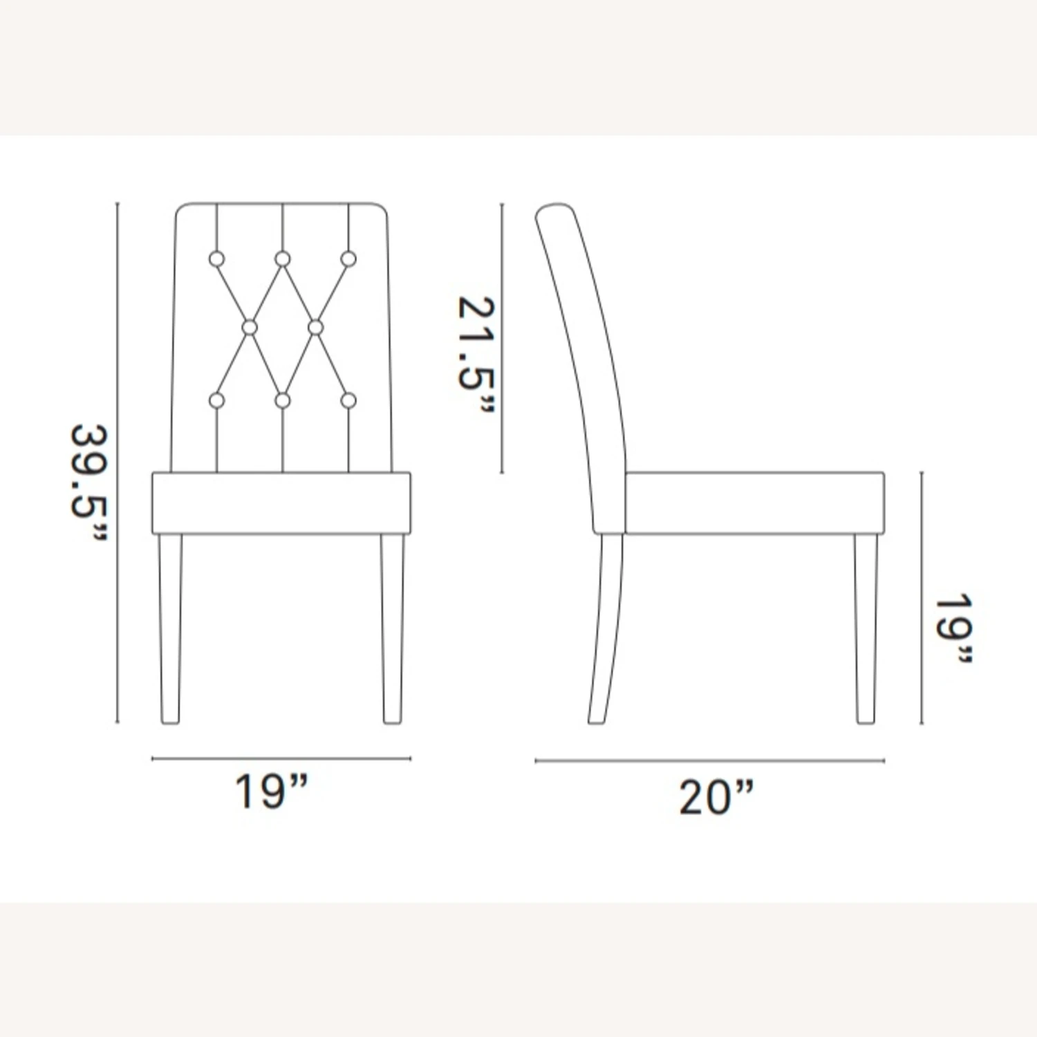 โข Fashioned with eight tufted buttons and supported by stained hardwood legs, this chair is a richly designed piece that blankets your dining experience in a layer of magnificence.