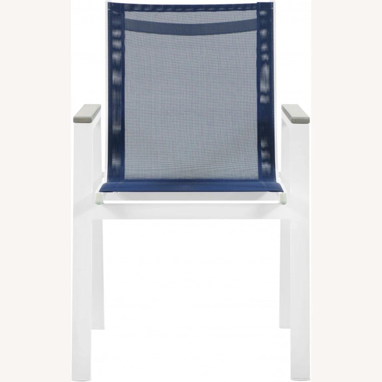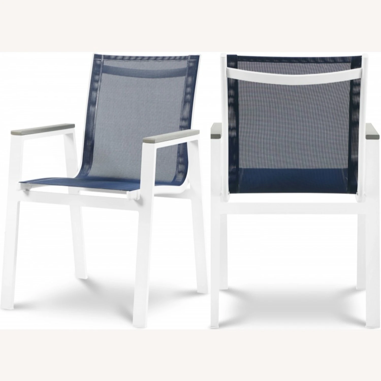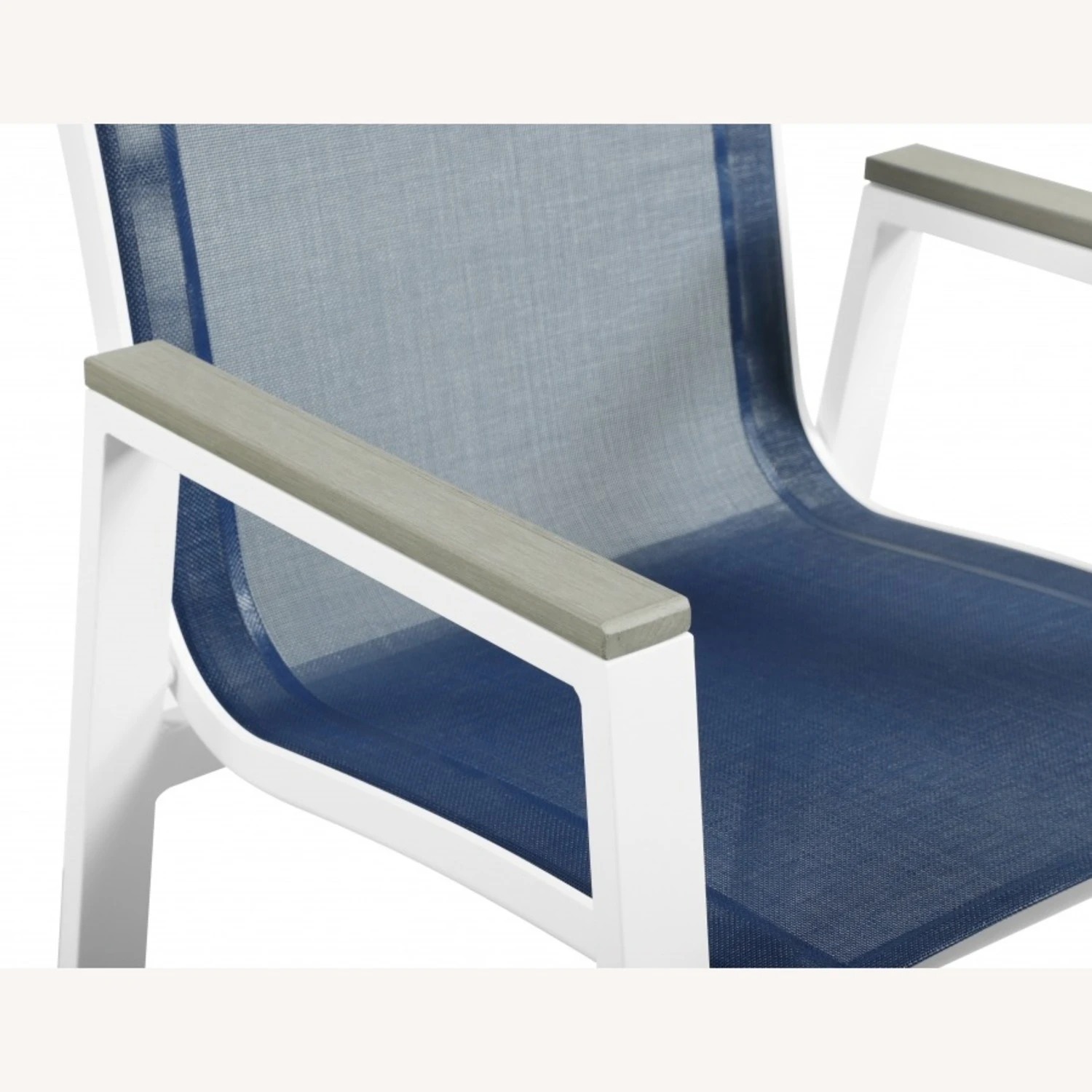 โข This handsome chair features resilient navy mesh fabric that’s waterproof, making it ideal for outdoor use, even in inclement weather.