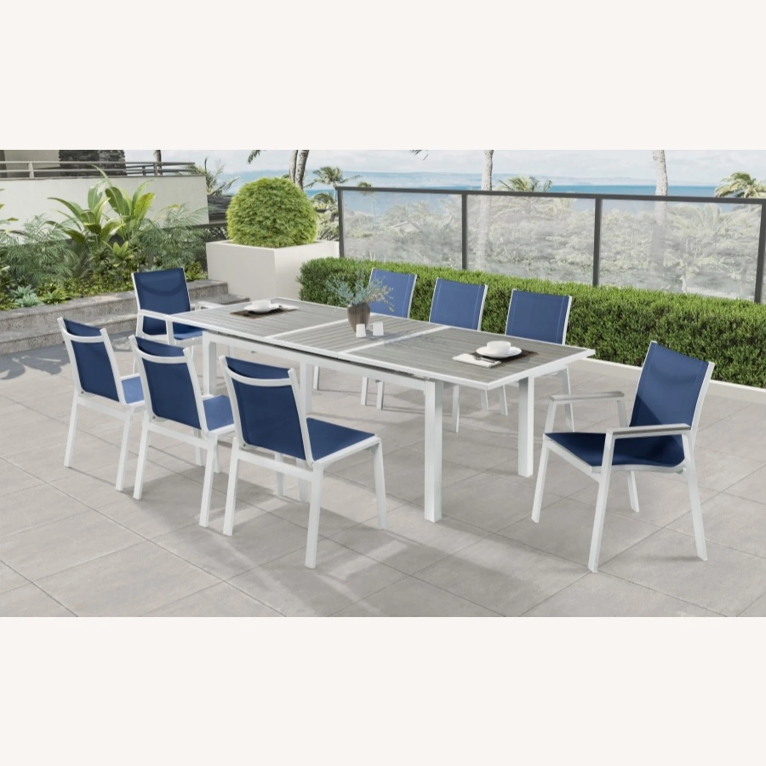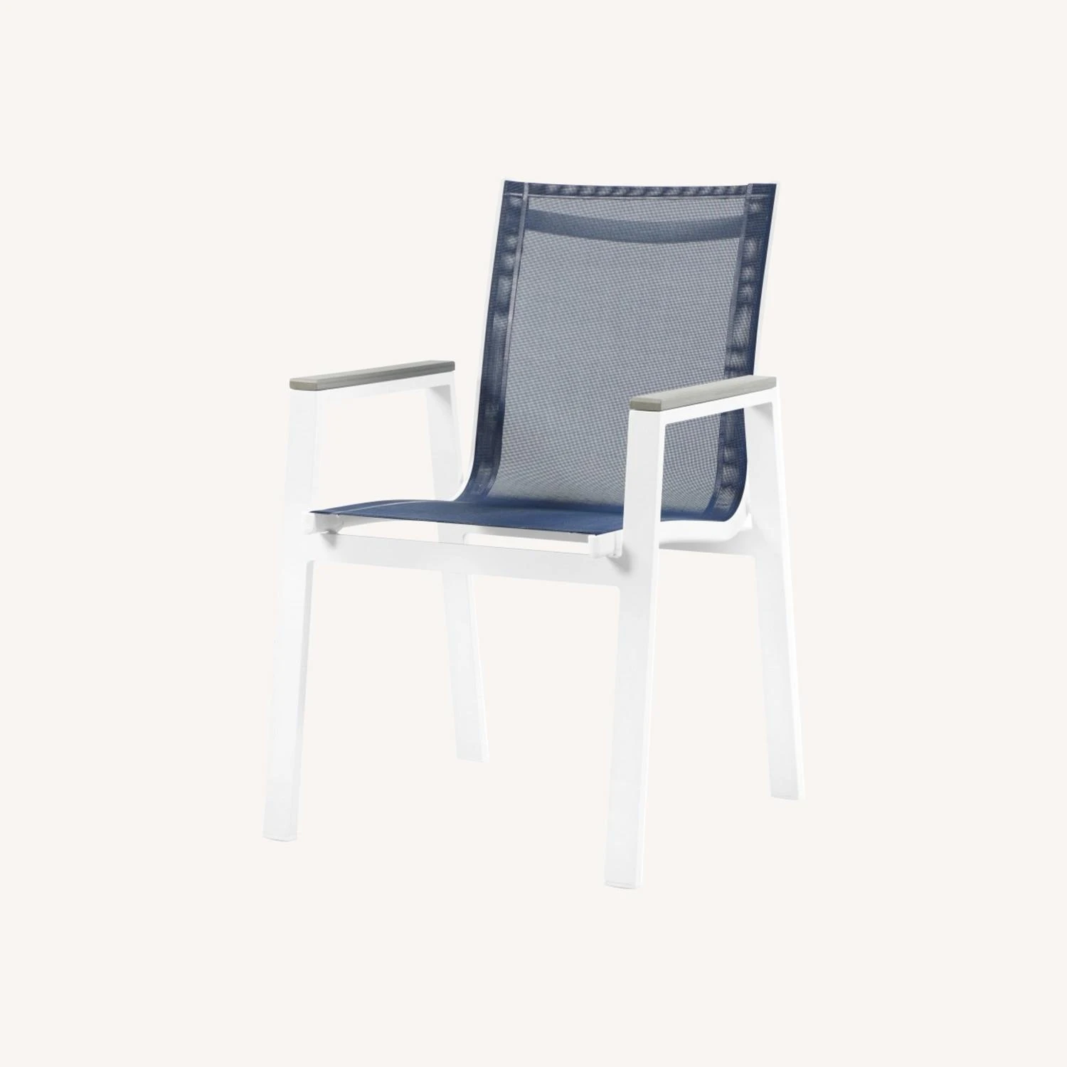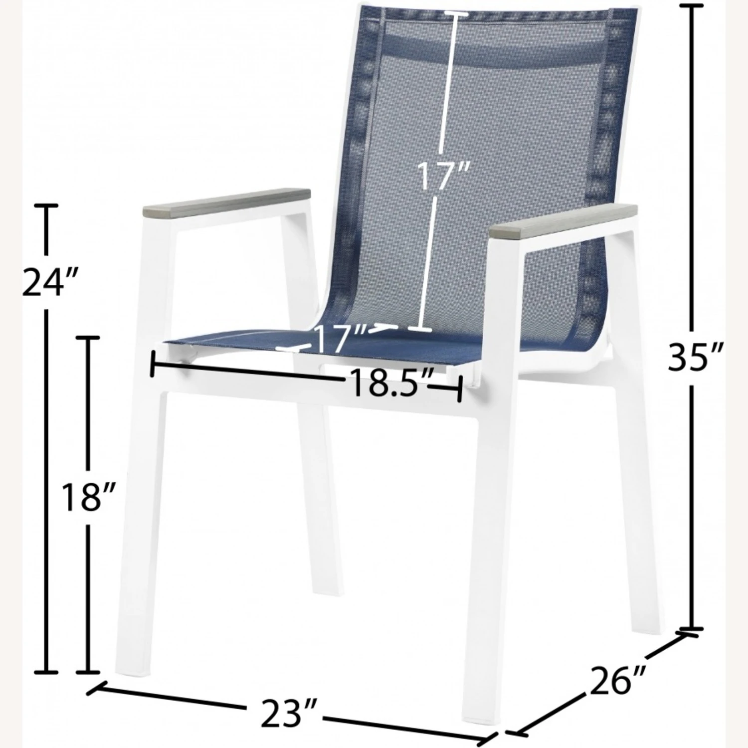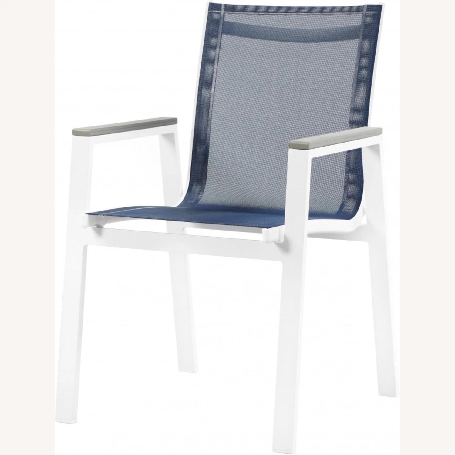 โข This handsome chair features resilient navy mesh fabric that’s waterproof, making it ideal for outdoor use, even in inclement weather.
