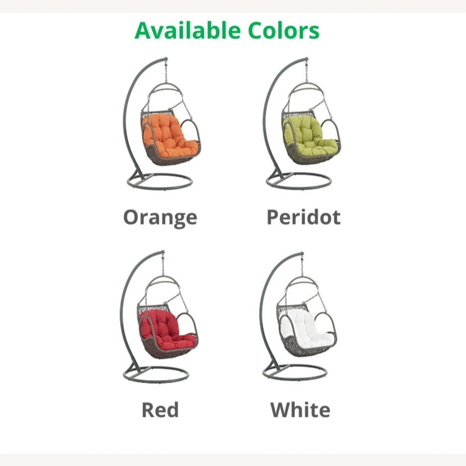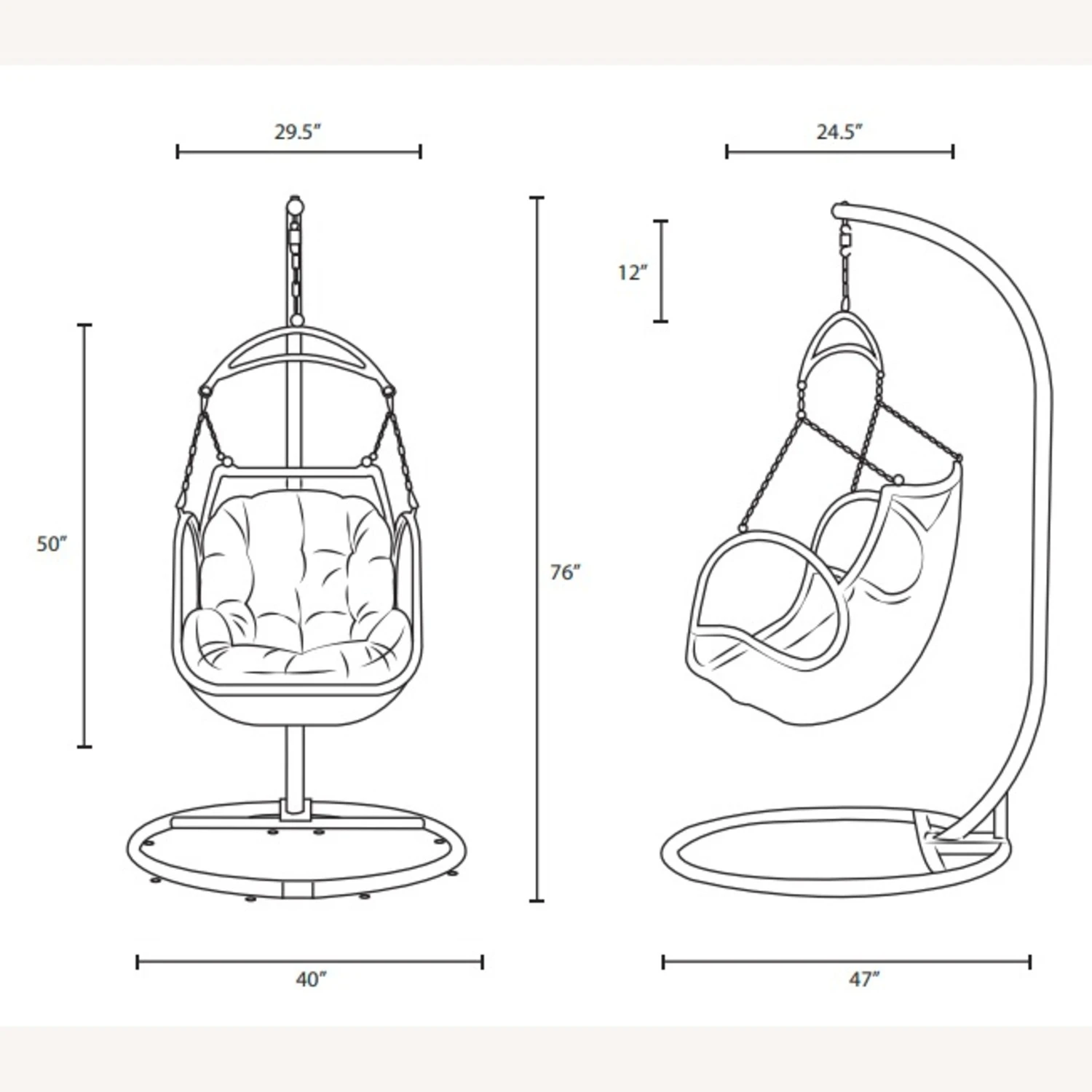 โข Made with an exotic outdoor recreation-themed design, this Hanging Swing Chair comes outfitted with an all-weather synthetic rattan seat, water-resistant plush fabric cushion, and sturdy powder-coated steel frame with hanging chain apparatus.