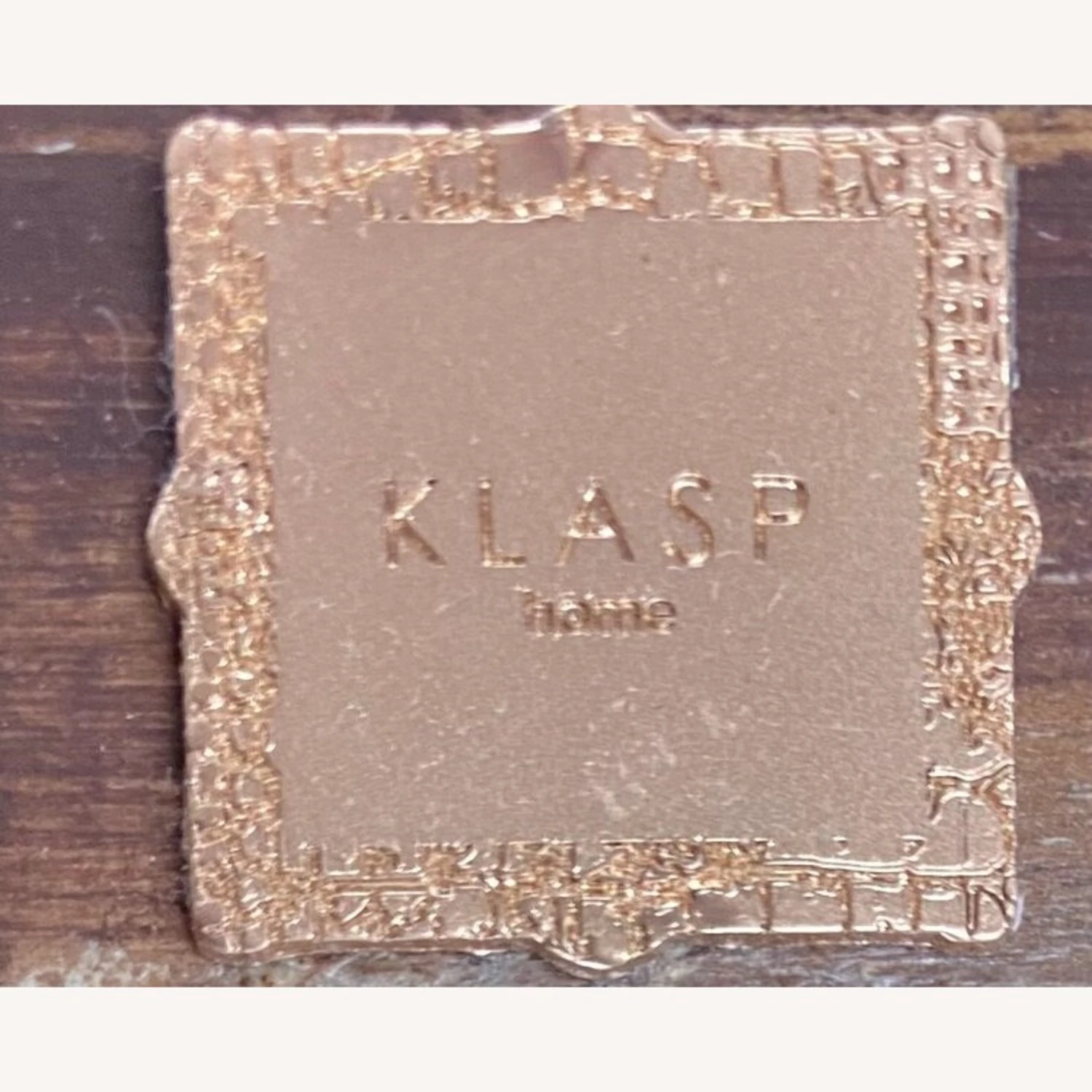 Seller’s Notes: Pair of Modern KLASP Home Nubuck Leather Upholstered Ottomans with Walnut Base – Brand New