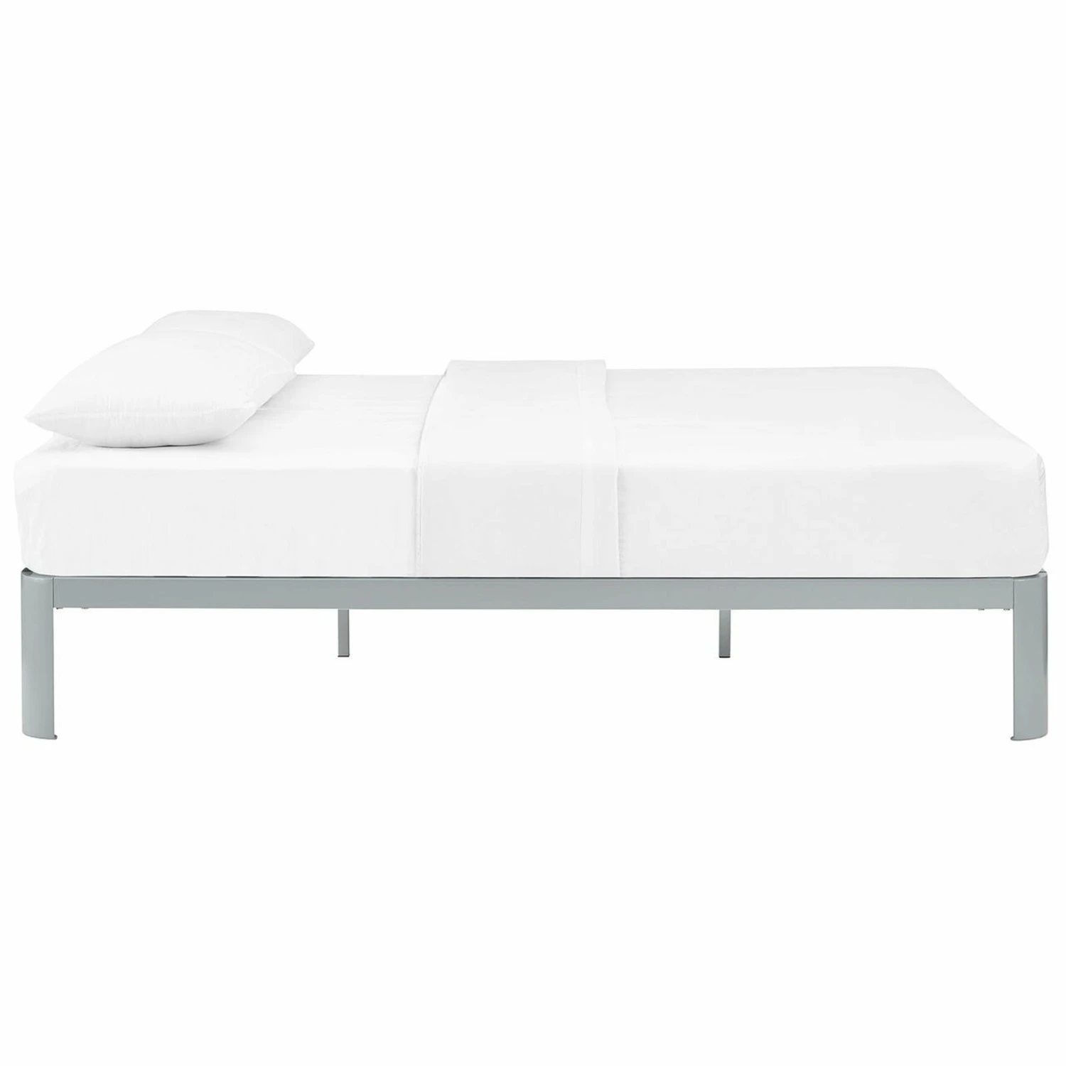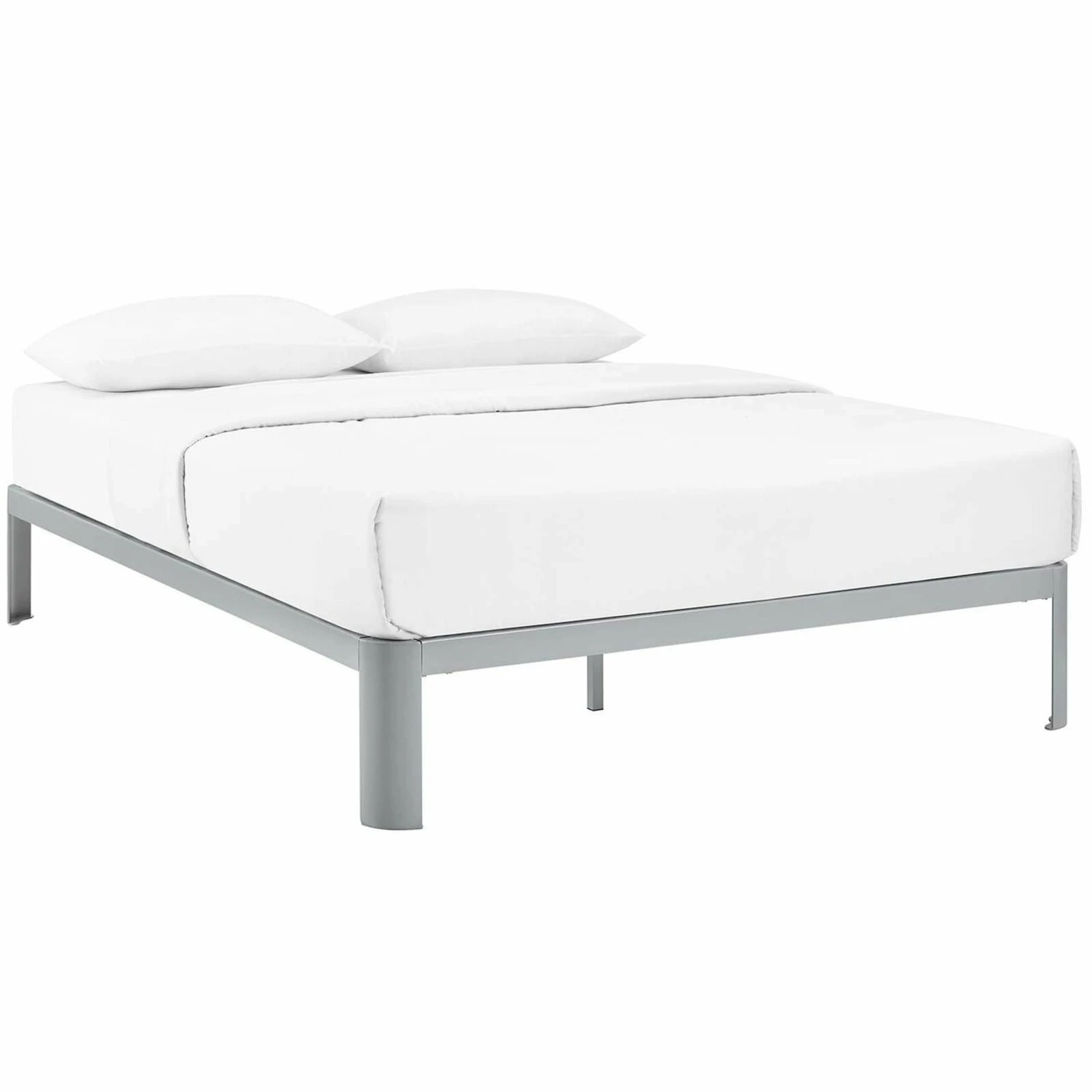 โข With a slatted wood support system and sturdy steel frame, it eliminates the need for a boxspring and firmly supports the various mattress types on the market such as memory foam, spring, latex, and hybrid.