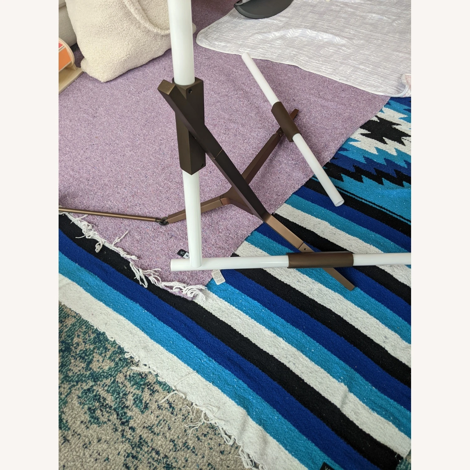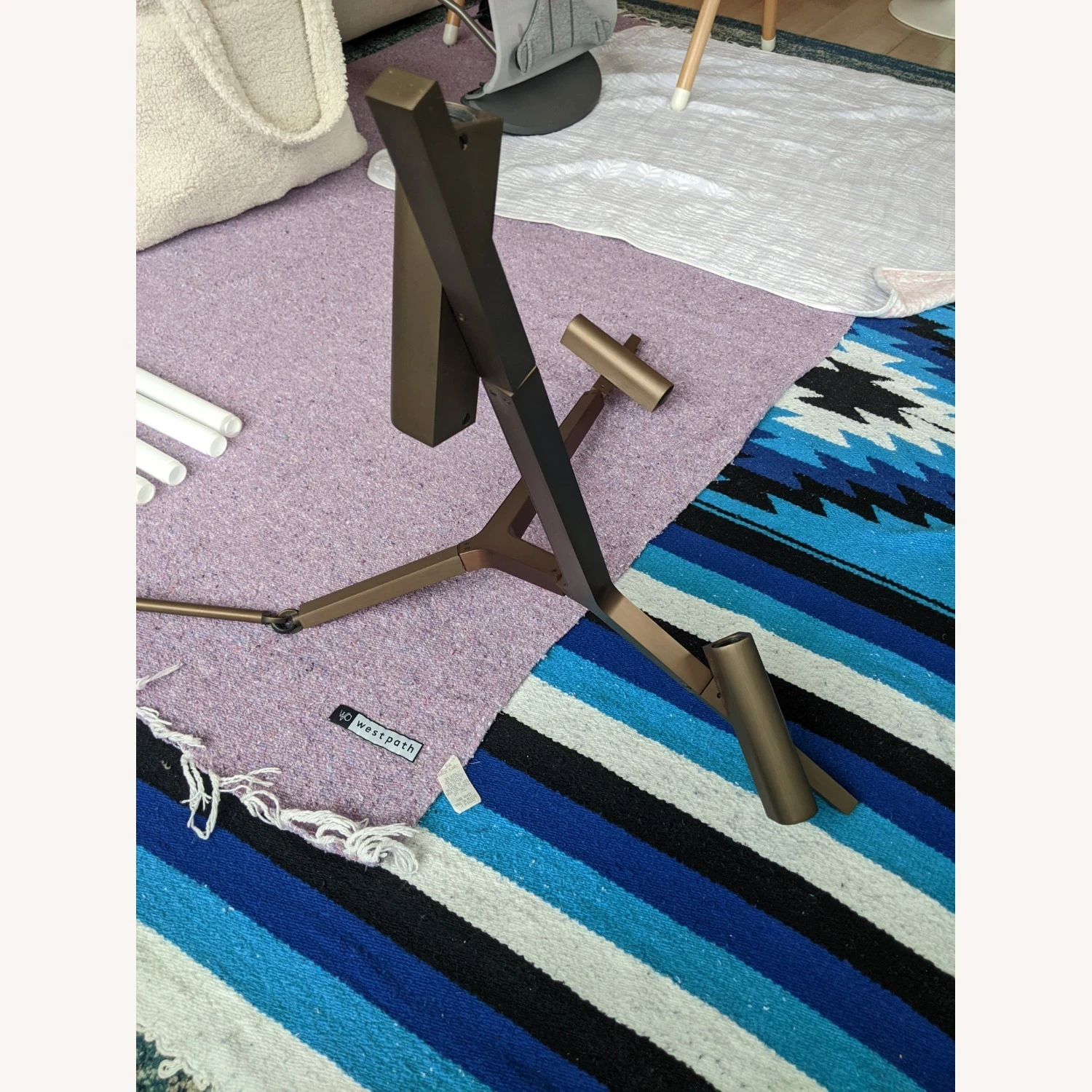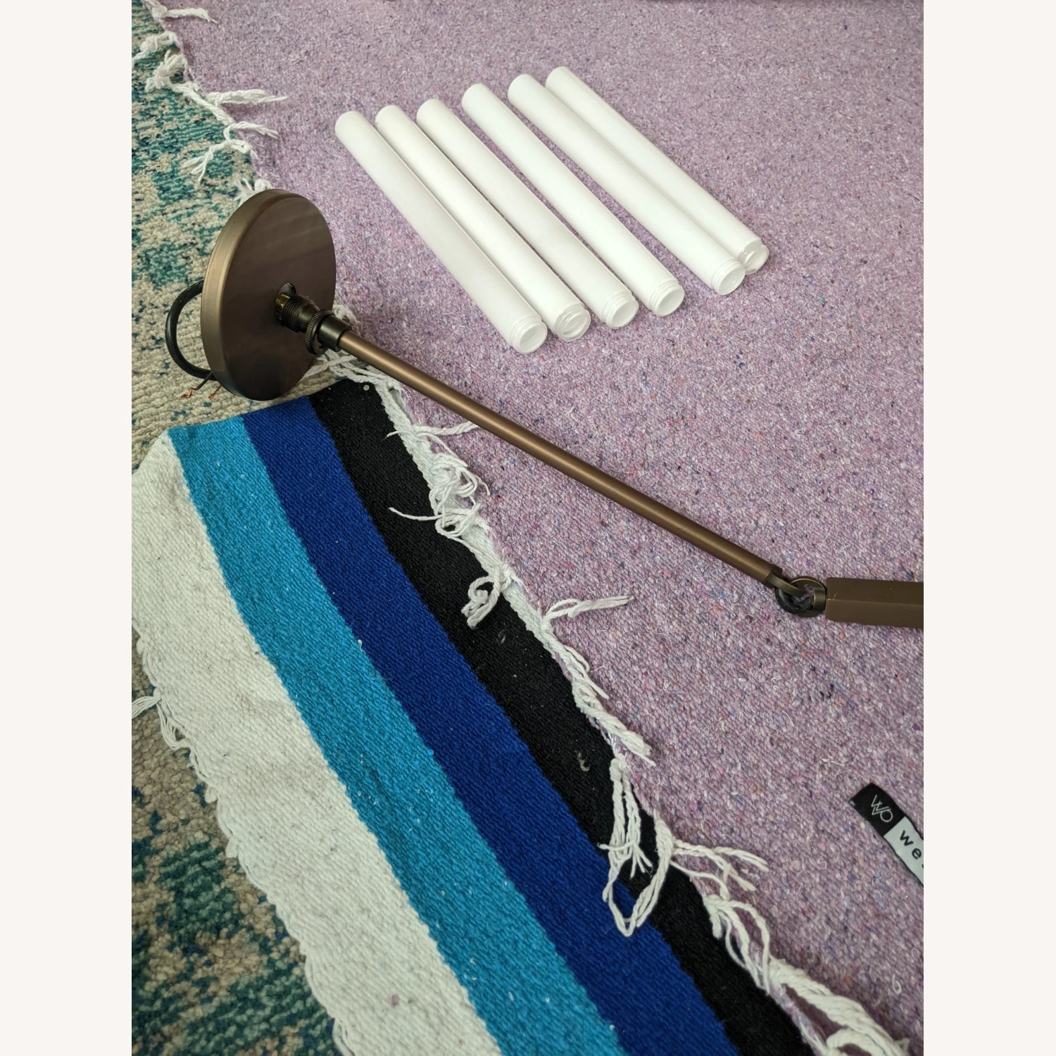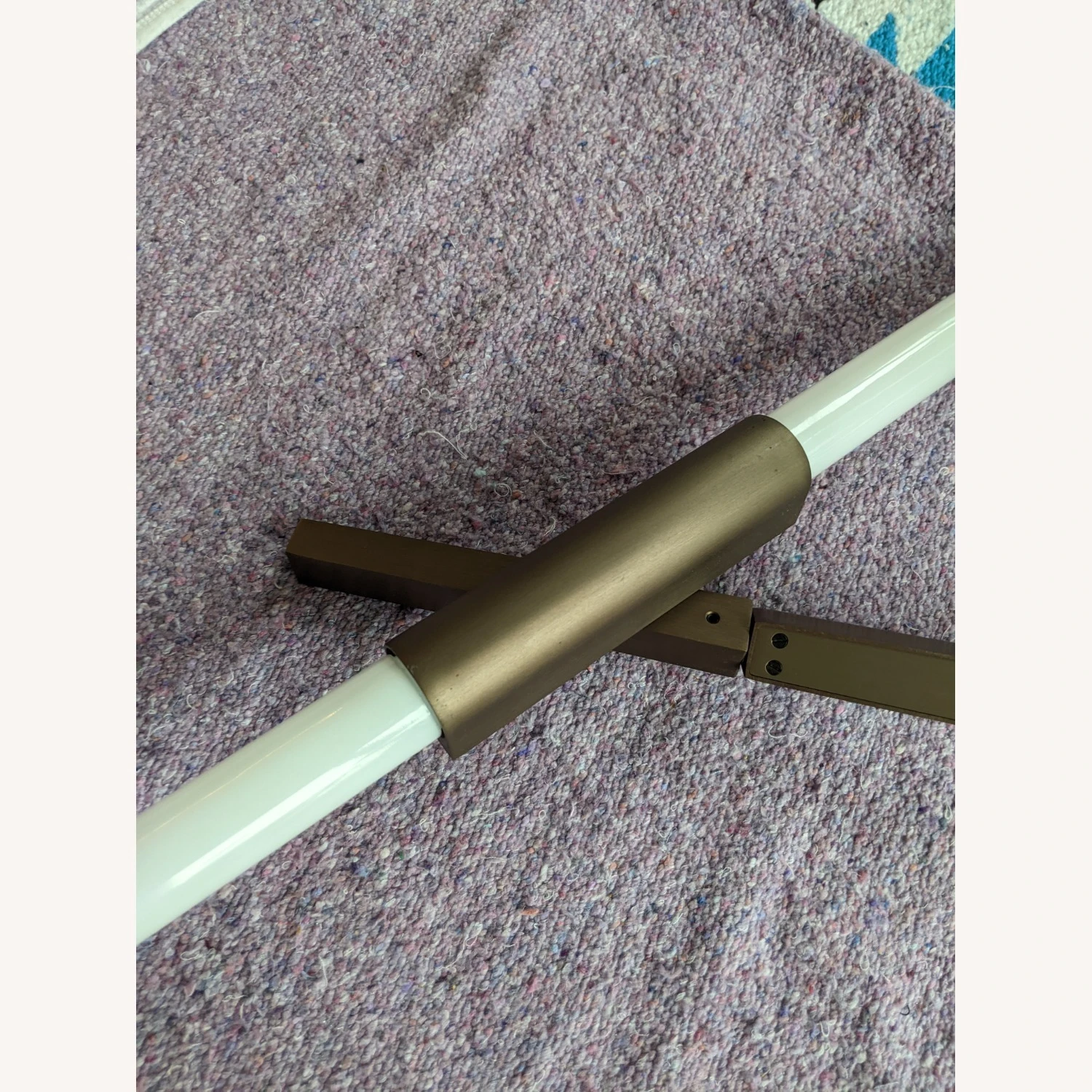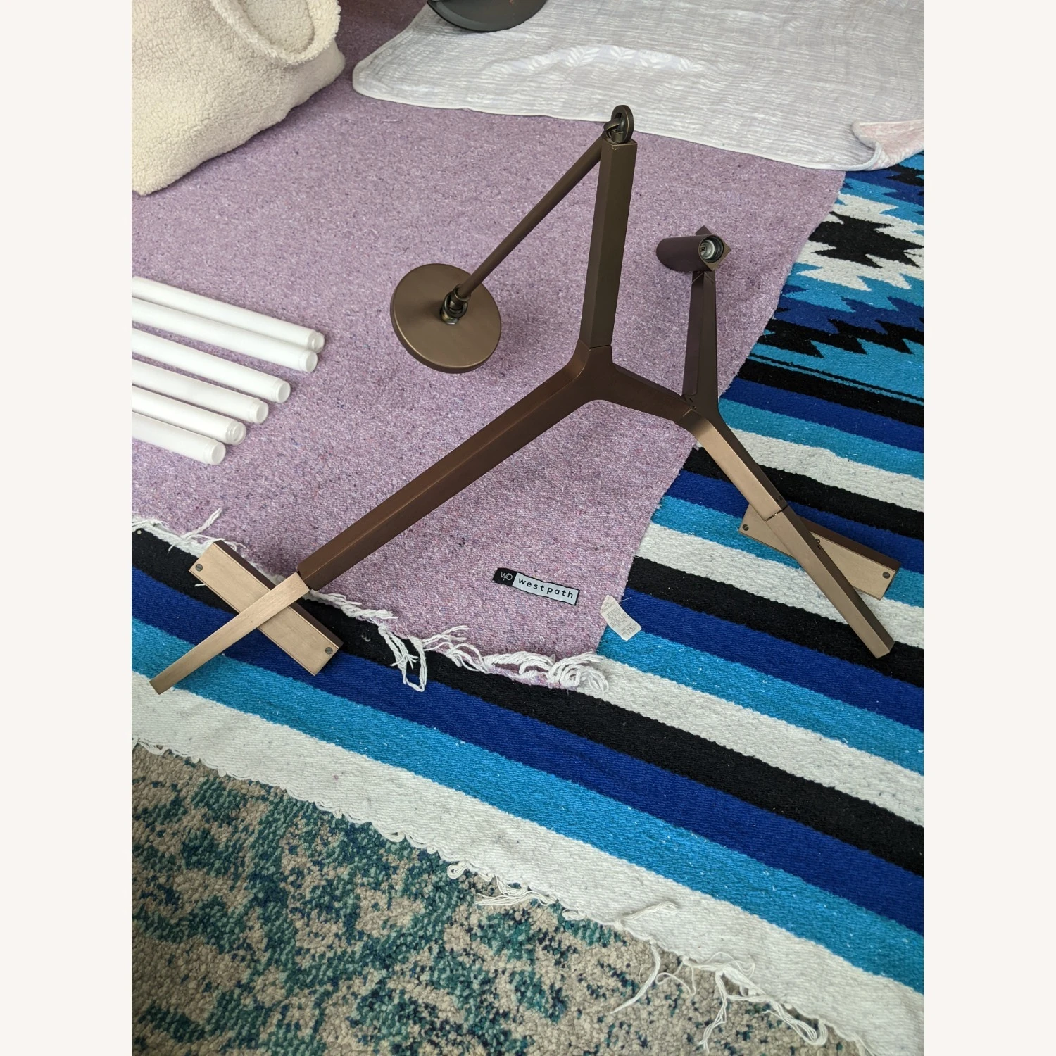 Originally conceived as a candelabra, Agnes takes its inspiration from the fictional heroine of the same name, a worker in the world’s oldest profession during the 1849 California Gold Rush. The modular system would allow Agnes easy setup in her makeshift “workspace.” In this version, glowing glass tubes replace the candles. Articulated joints allow the glass to be arranged in a multitude of ways.