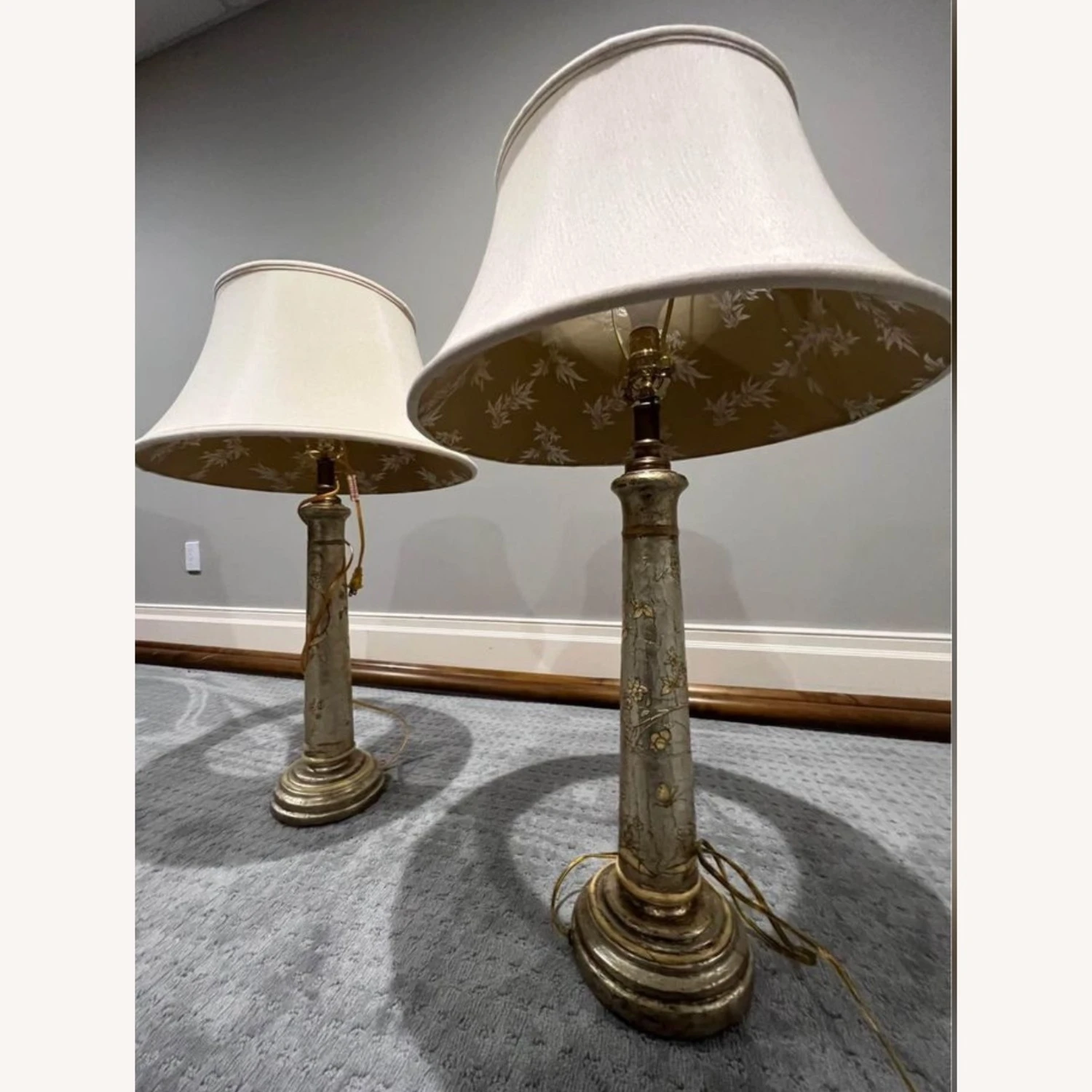 Seller’s Notes: Elegance and traditional pair of gilded gold enameled lamps with floral pattern