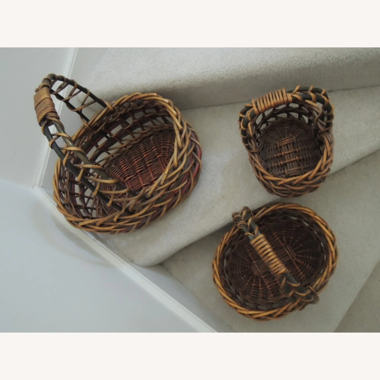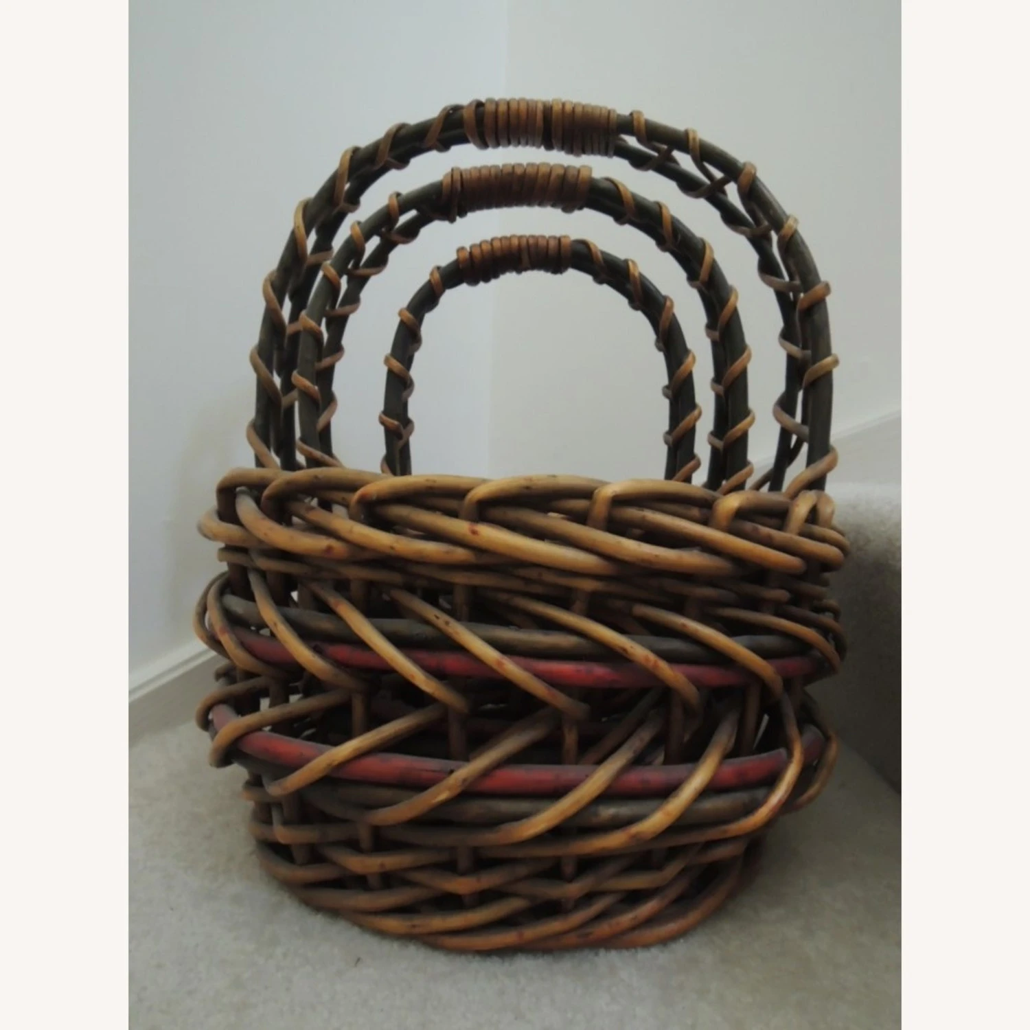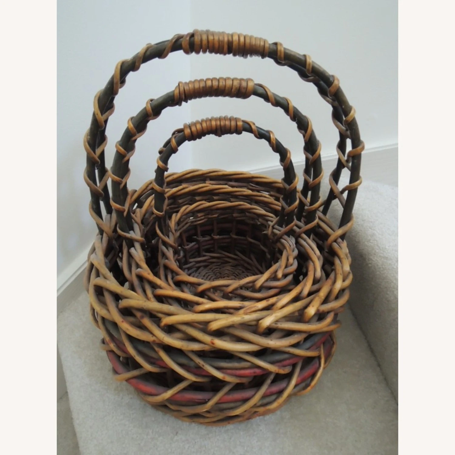 Seller’s Notes: Basket Set 3 Thick Woven Wood Nesting Baskets with Carrying Handles $200 Value.