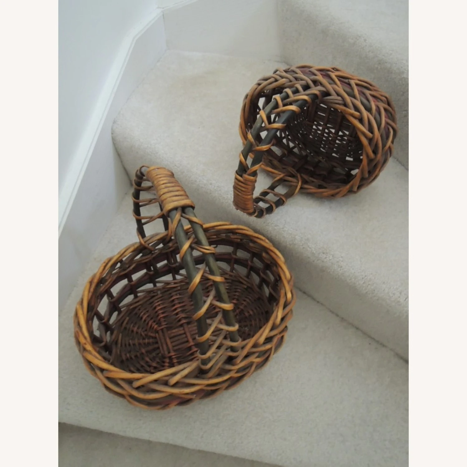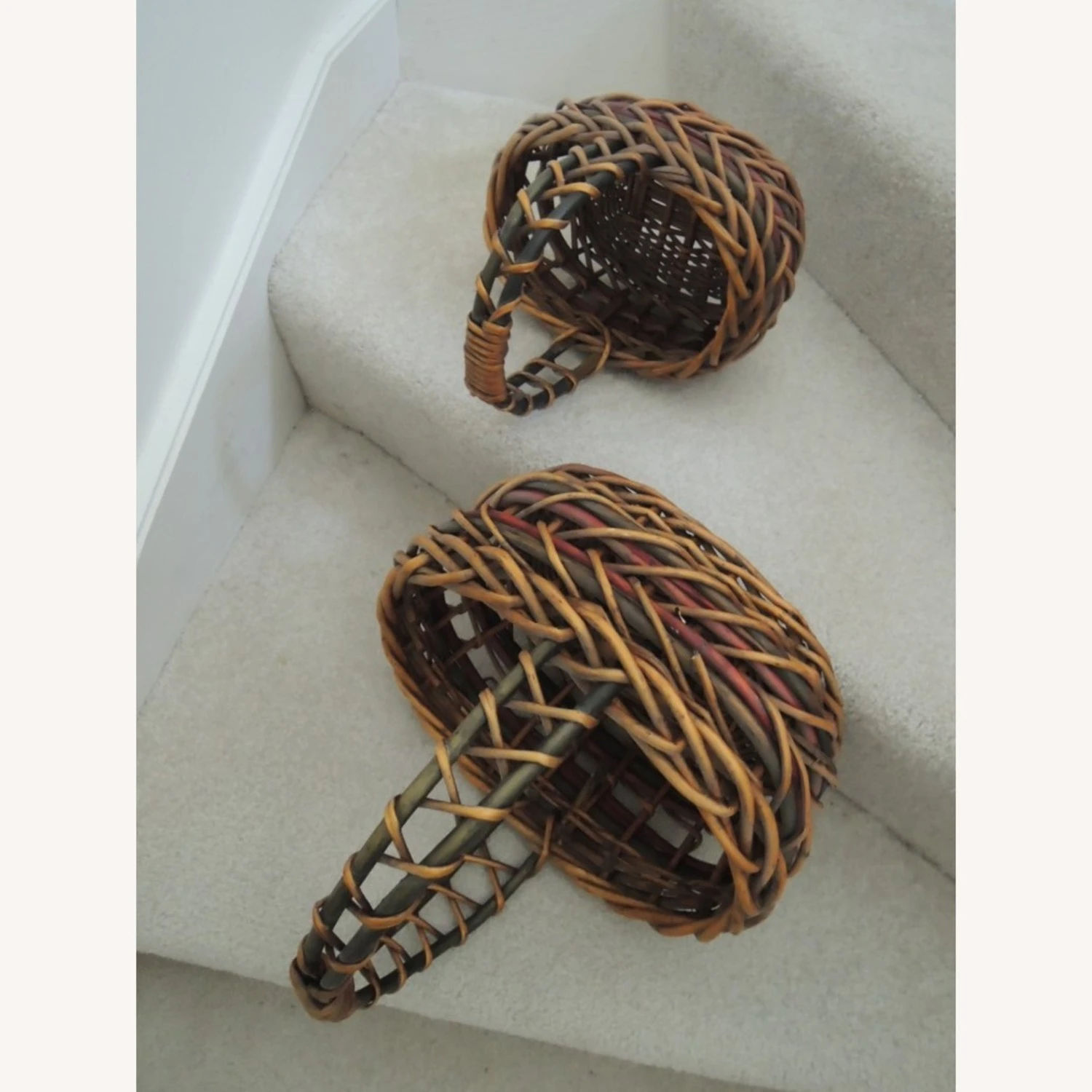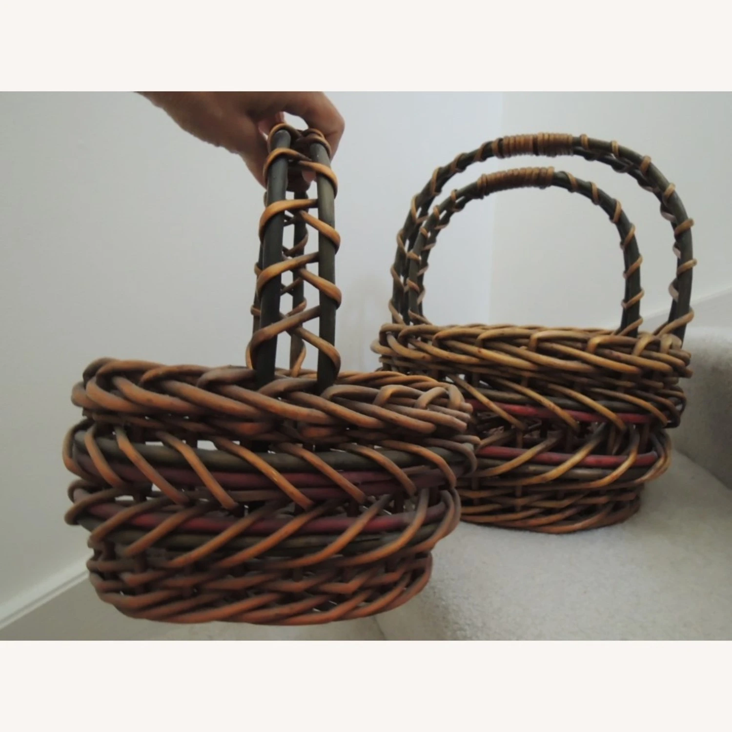 Seller’s Notes: Basket Set 3 Thick Woven Wood Nesting Baskets with Carrying Handles $200 Value.