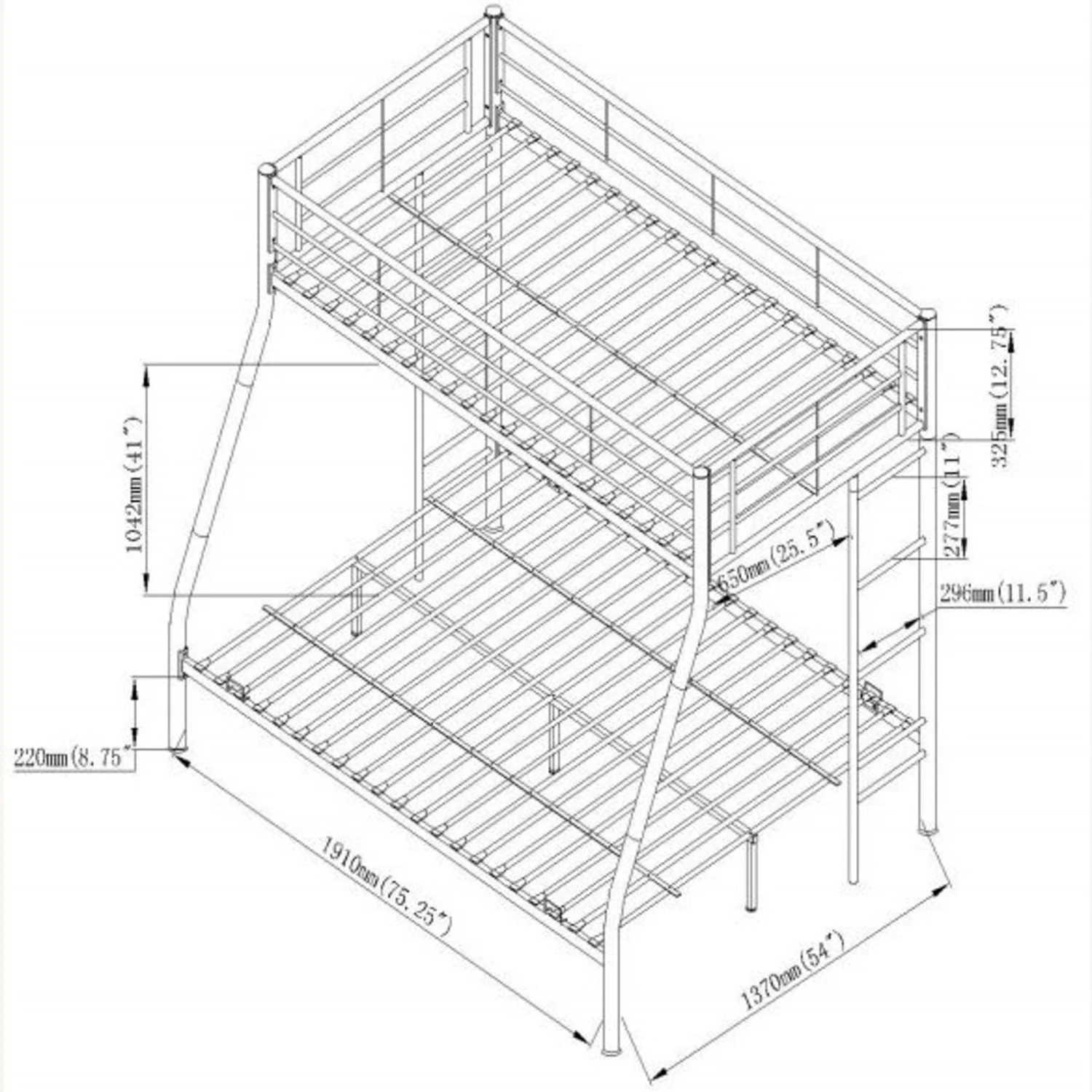 โข Simple bunk bed with light, airy frame with minimalist style