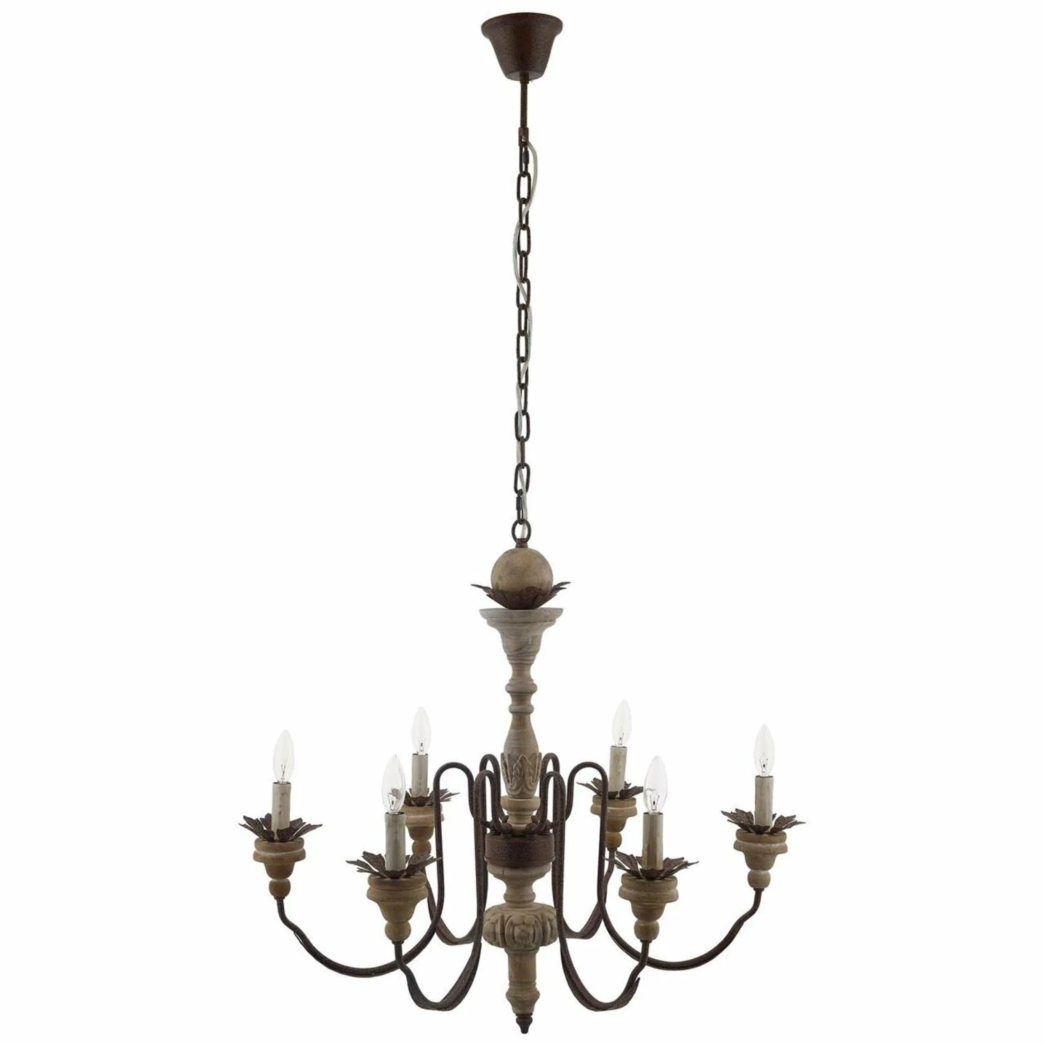 โข This rustic pendant light fixture requires six E12 25-watt light bulbs (not included).