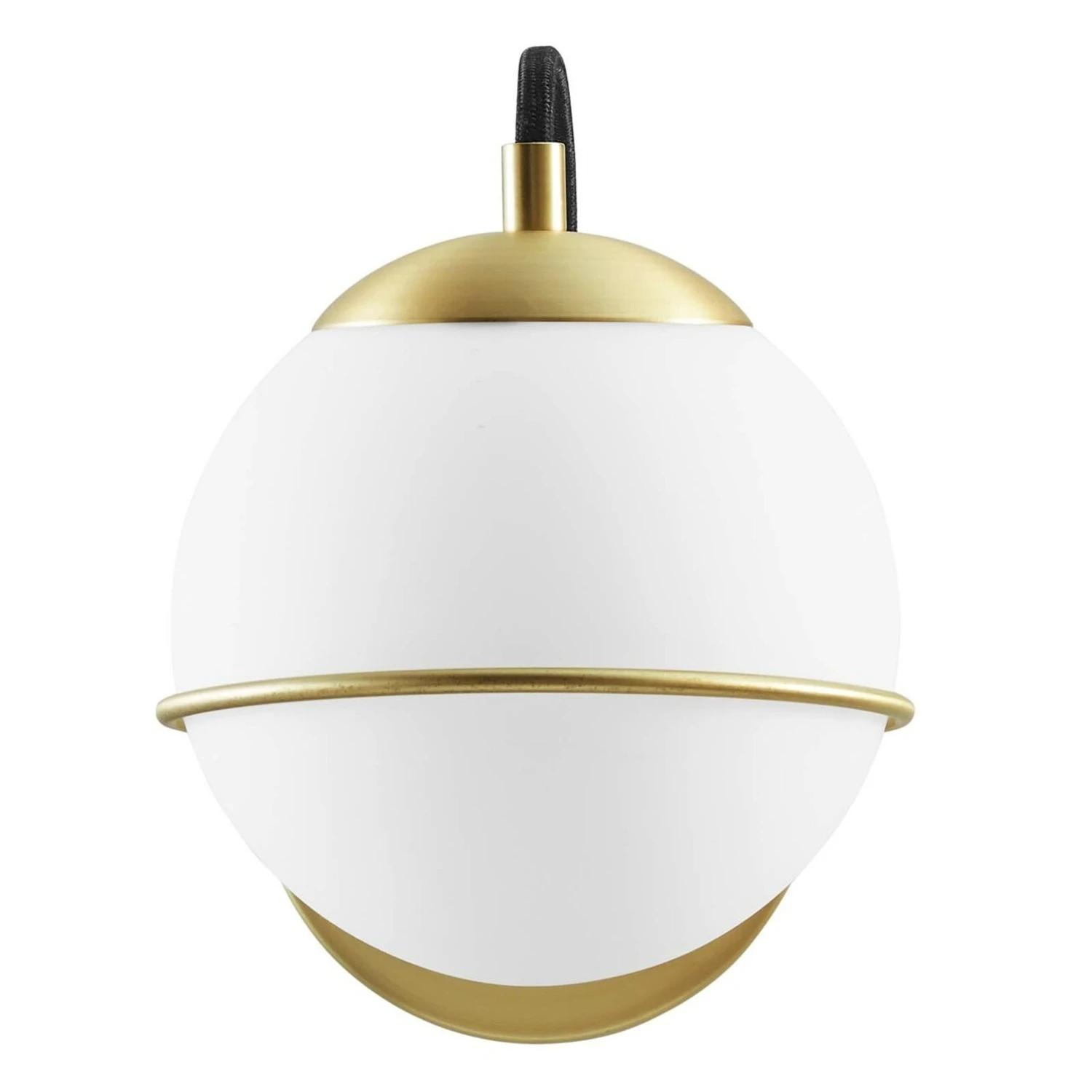 โข A single glass globe suspended in a satin brass ring conveys movement and light in this enchanting wall light fixture.