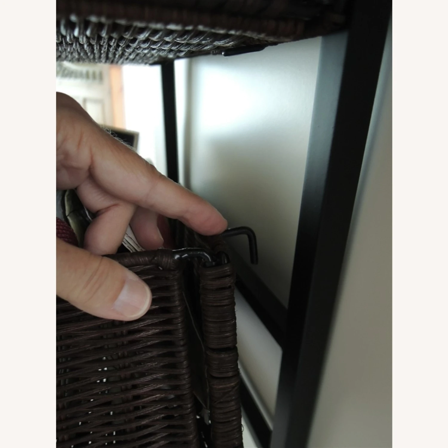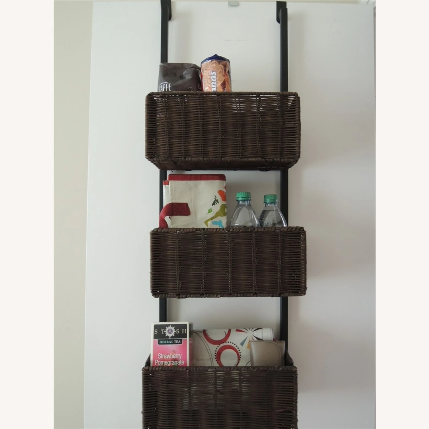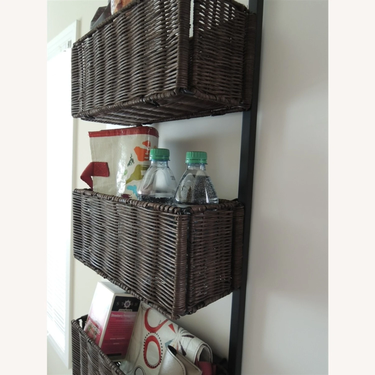 Seller’s Notes: Wicker Shelf Unit Over Door Wrought Iron Rack + Rattan Baskets $225 Value NWOT.