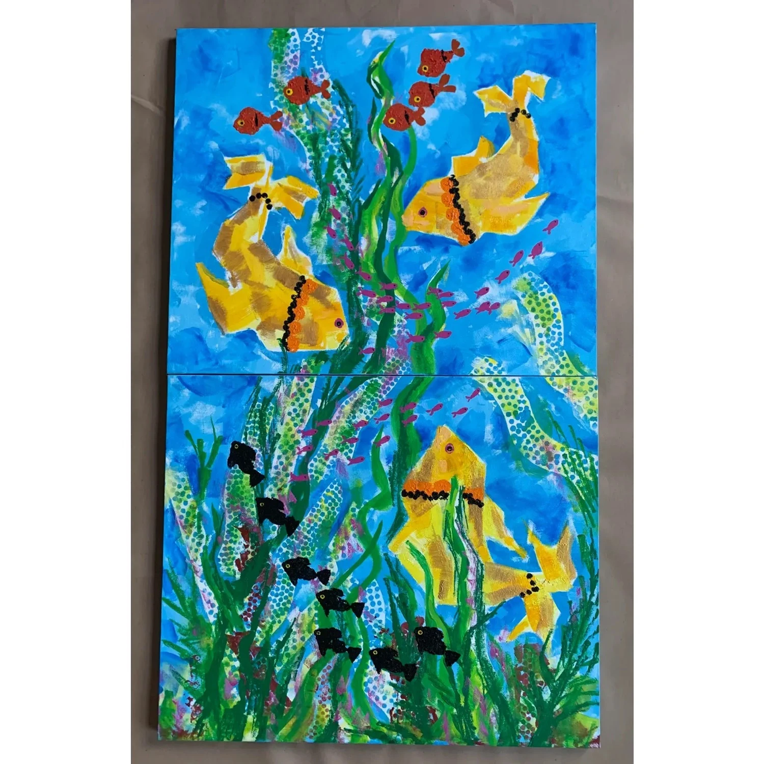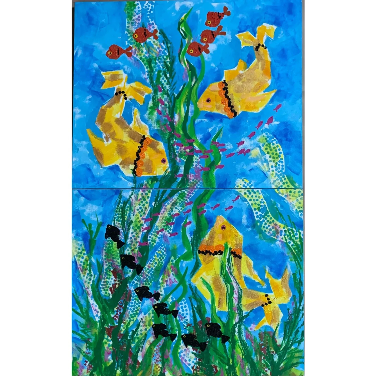 Seller’s Notes: A two panel painting Inspired by the imaginary goings on in the world of the ocean by artist