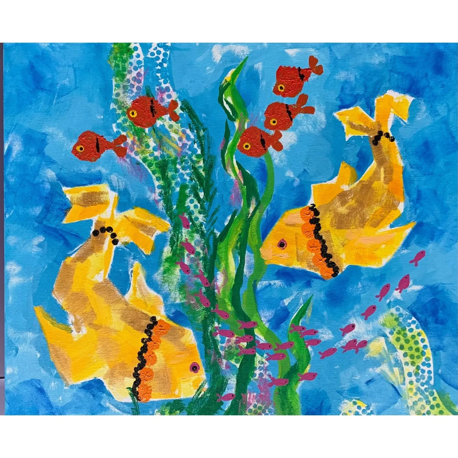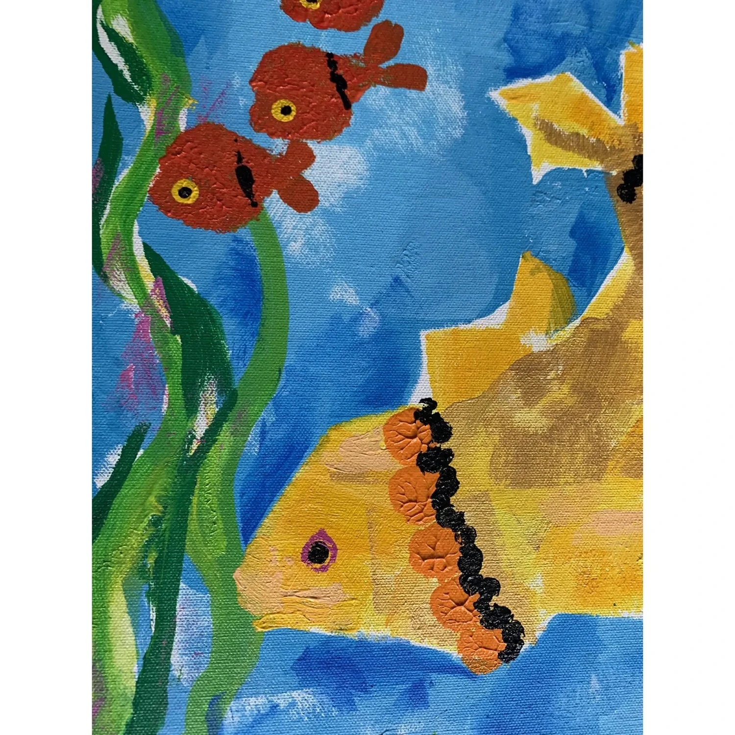 goldfish also appear in this work. The goldfish immediately attract our attention due to
