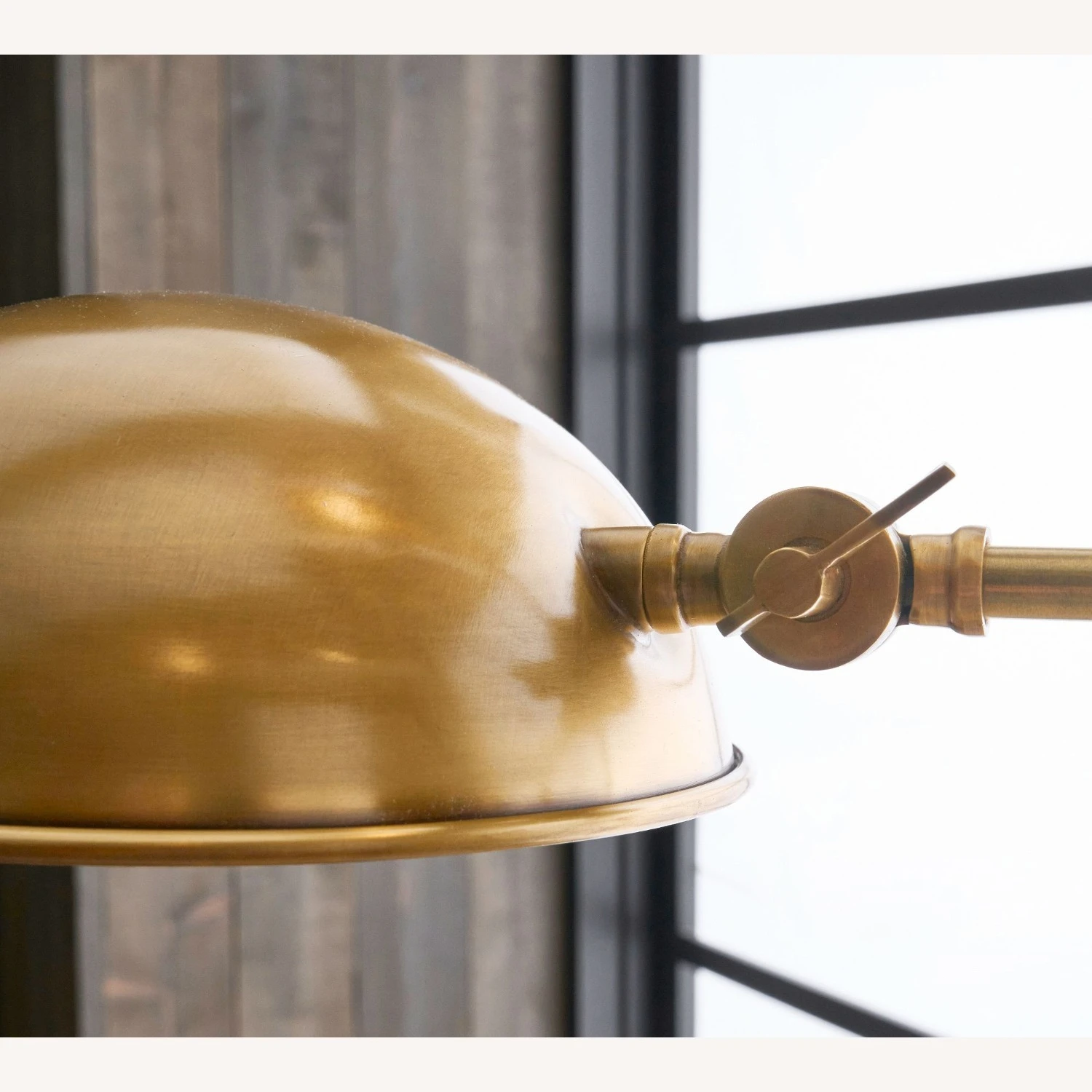 Metal shade interior is finished in Tumbled Brass.