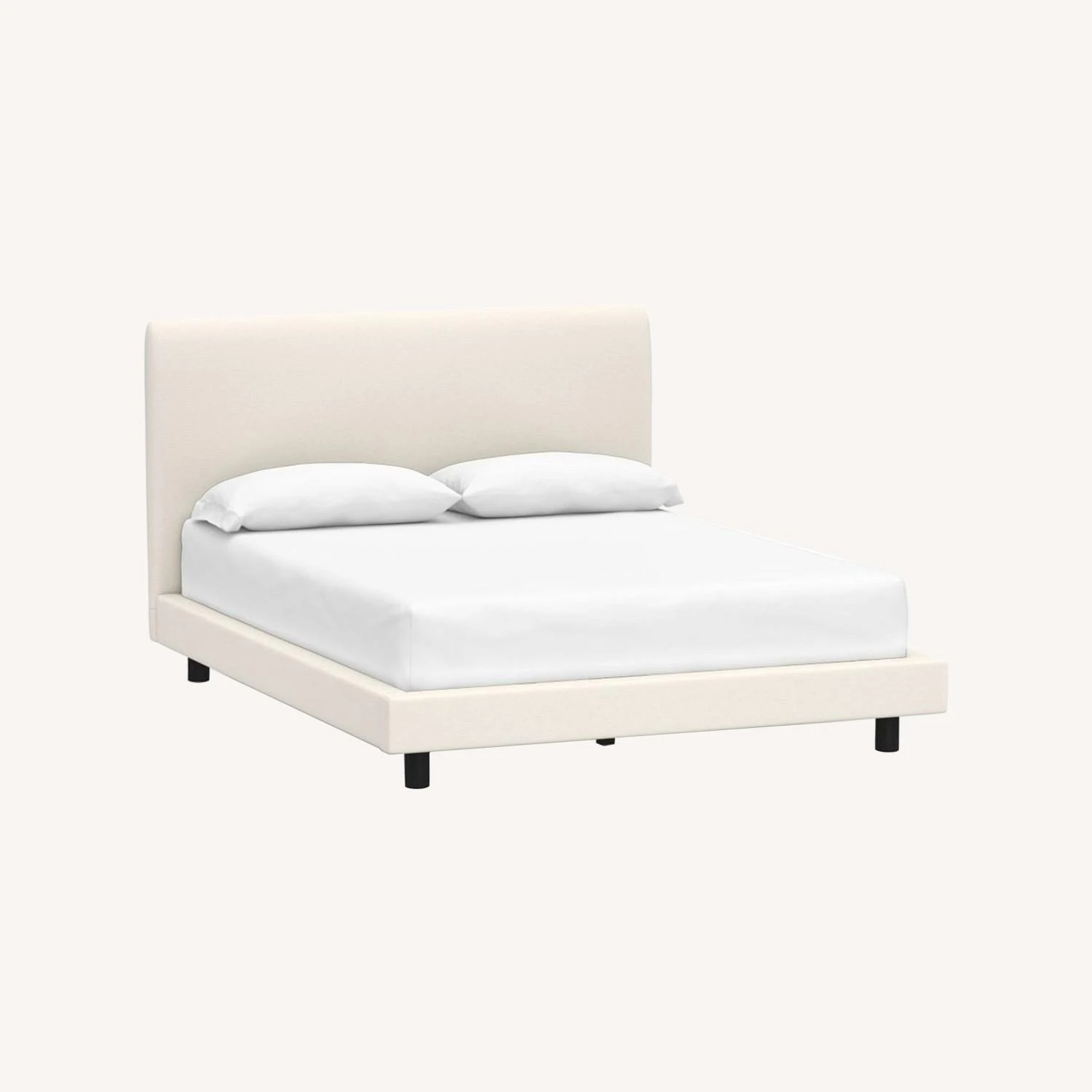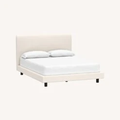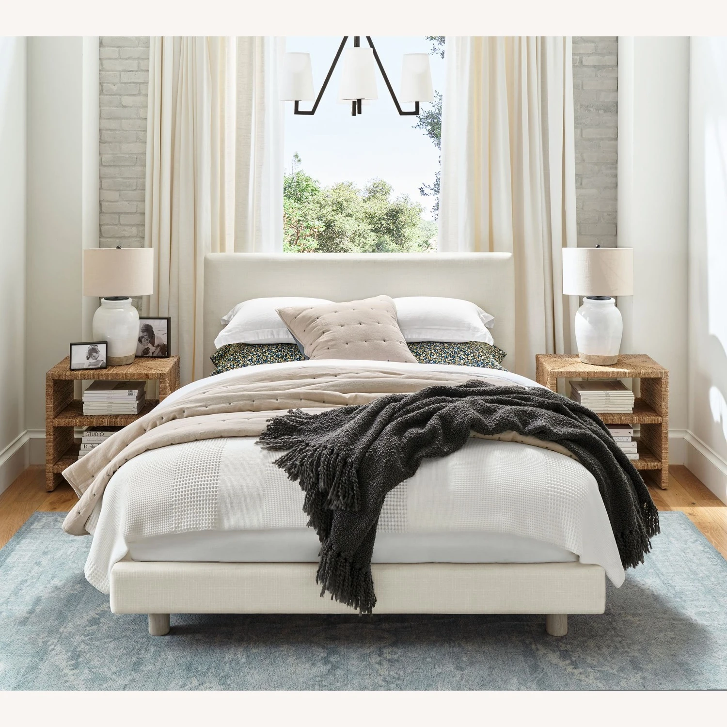 Bed is tightly upholstered and finished with solid rubber wood legs and base.