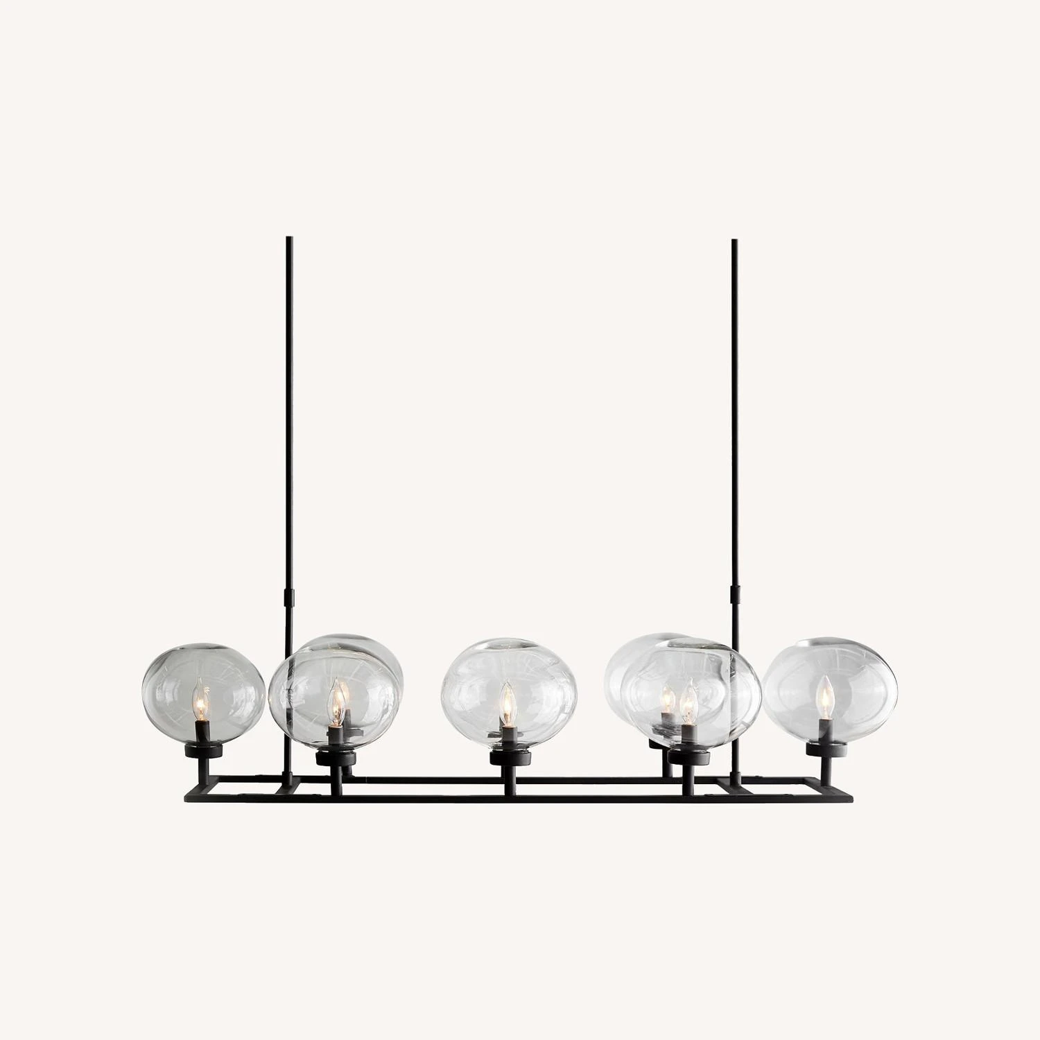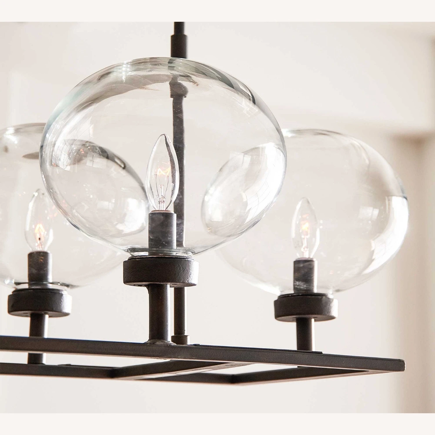 Seller’s Notes: Made of blown glass on a steel and brass frame with a hand-applied Brass or Bronze finish.