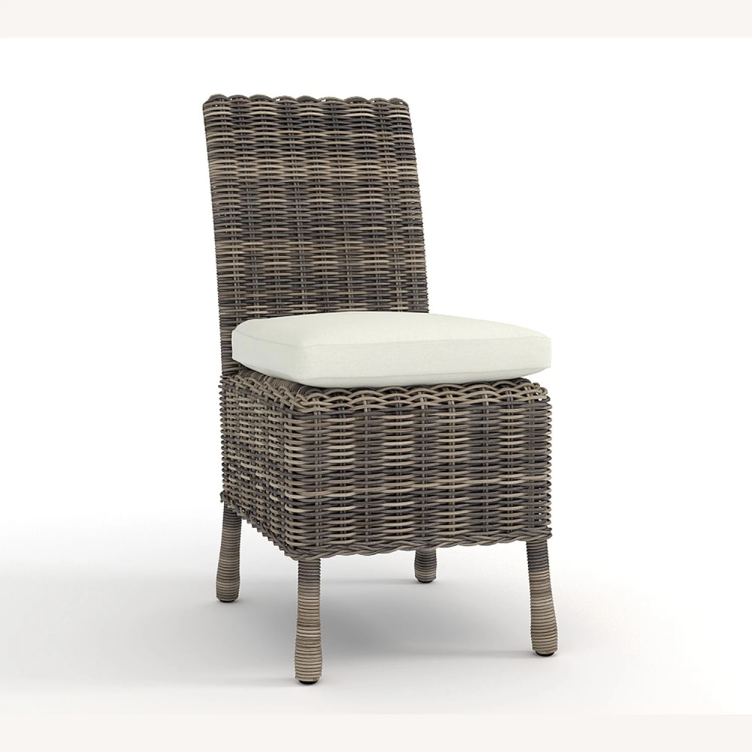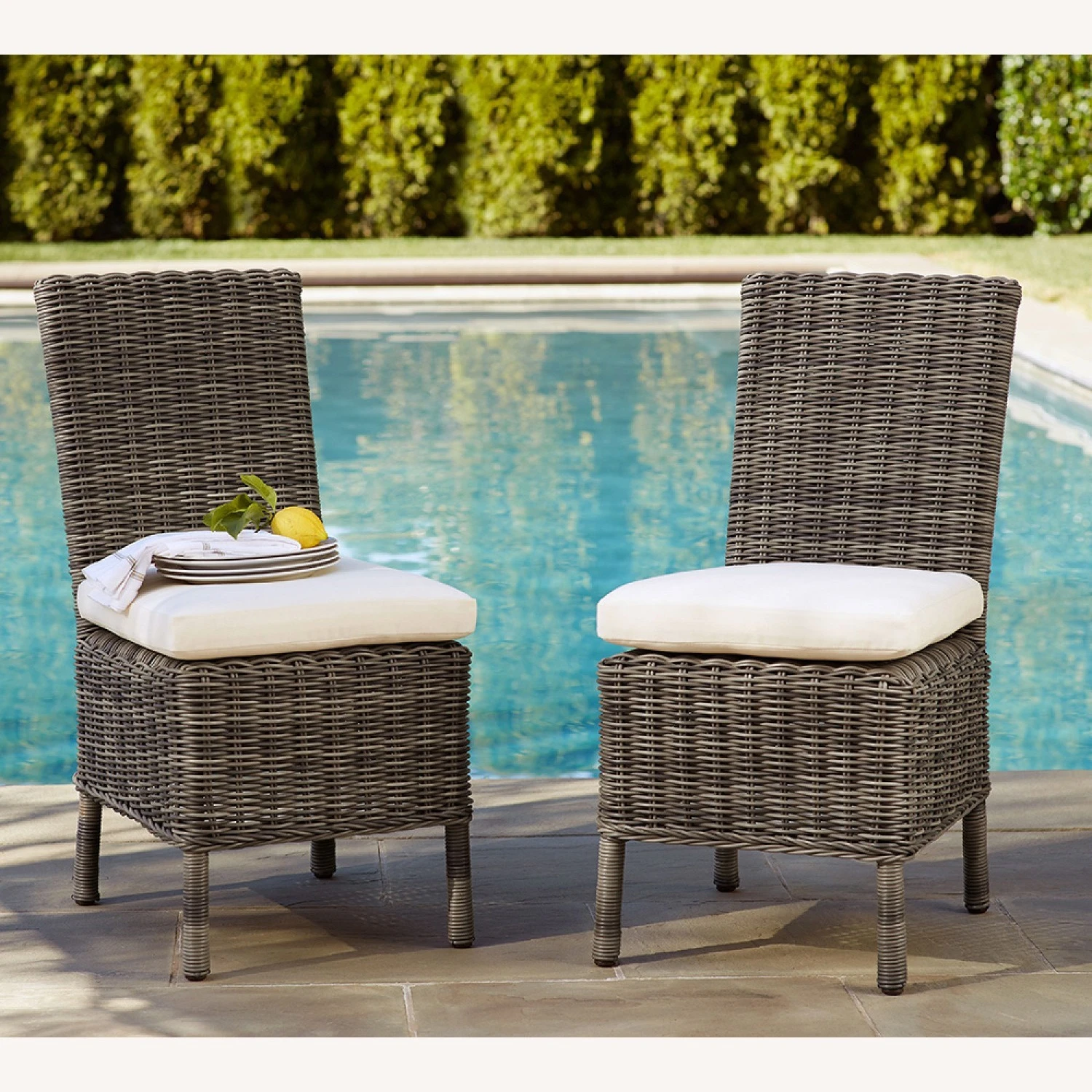 All-weather wicker is sealed with clear lacquer for moisture resistance.