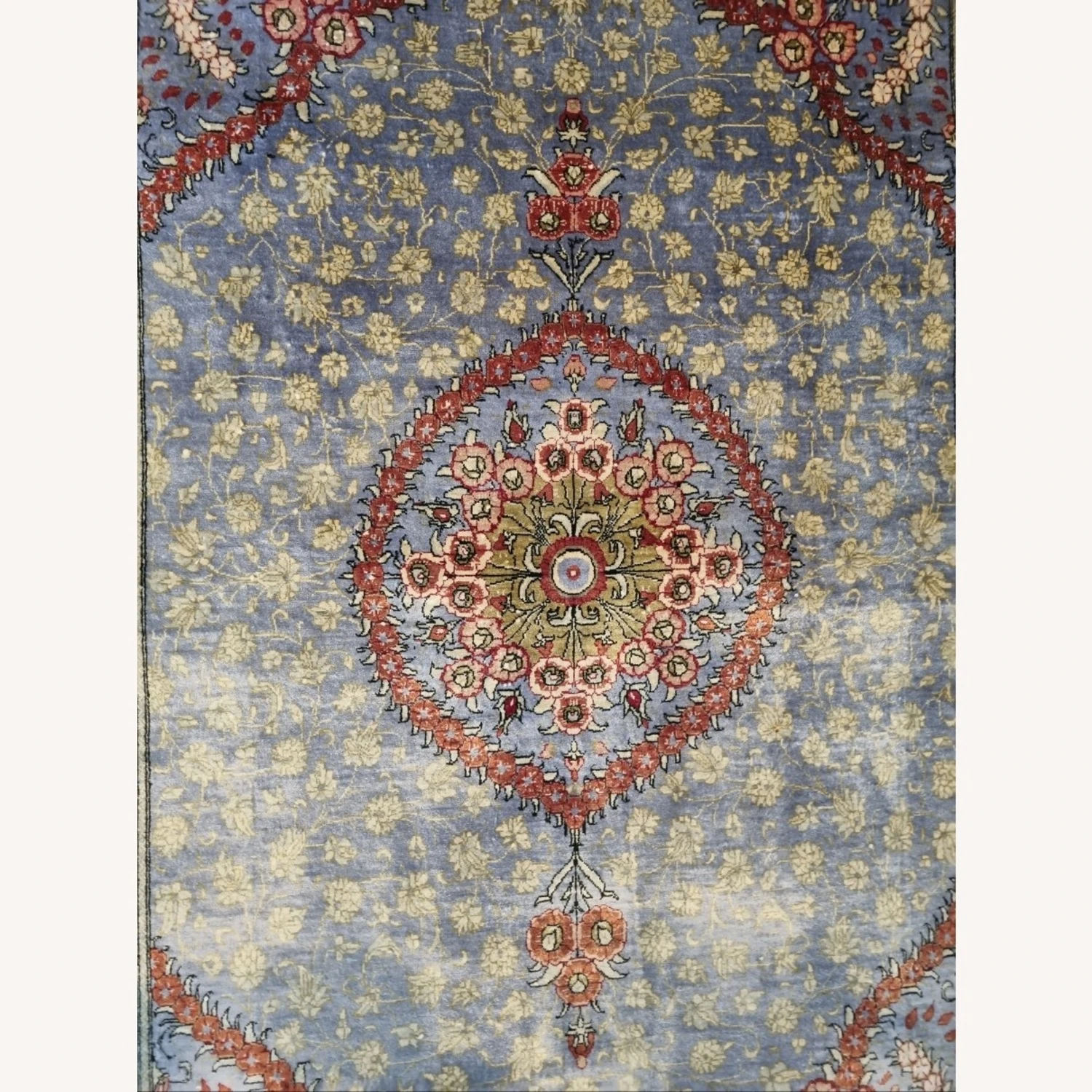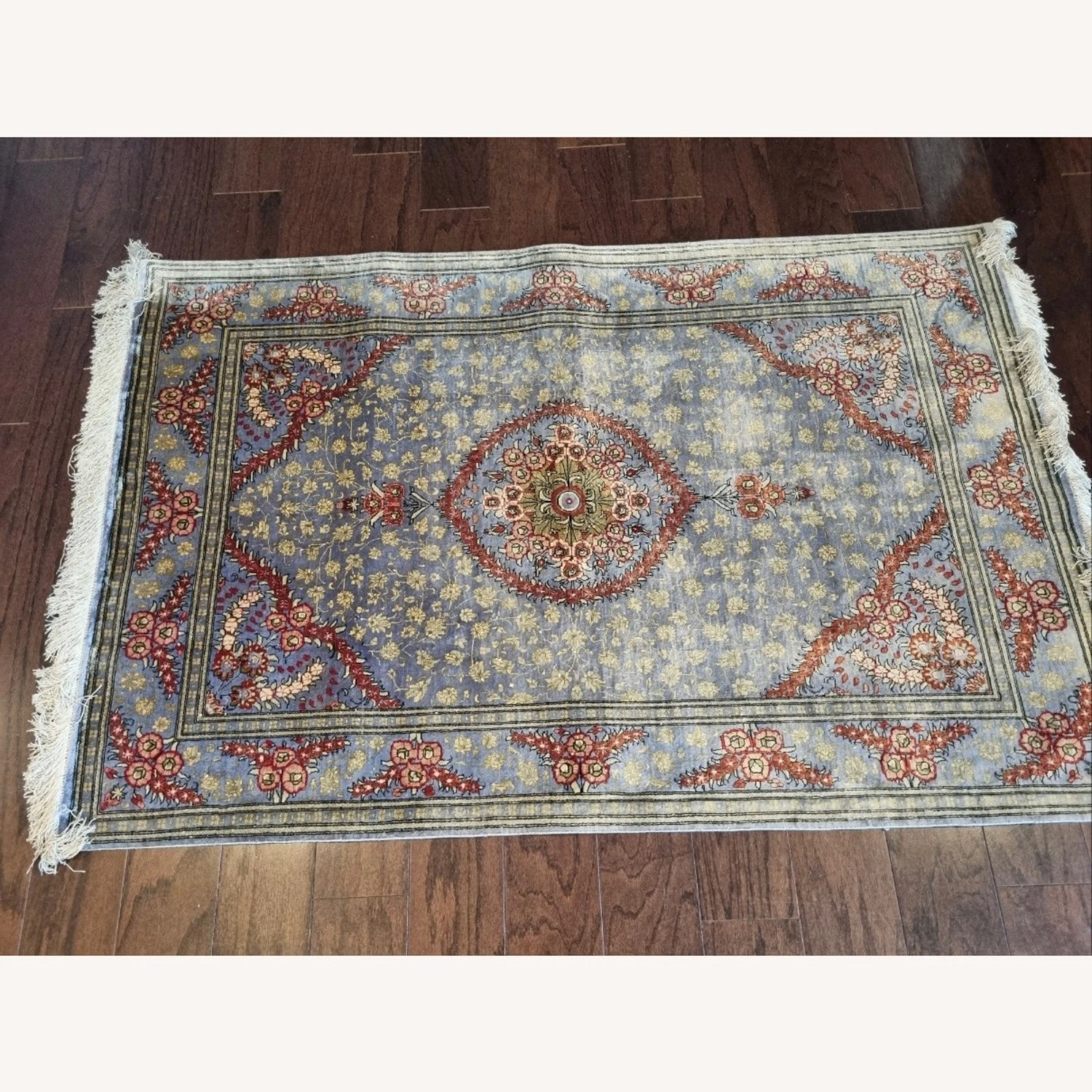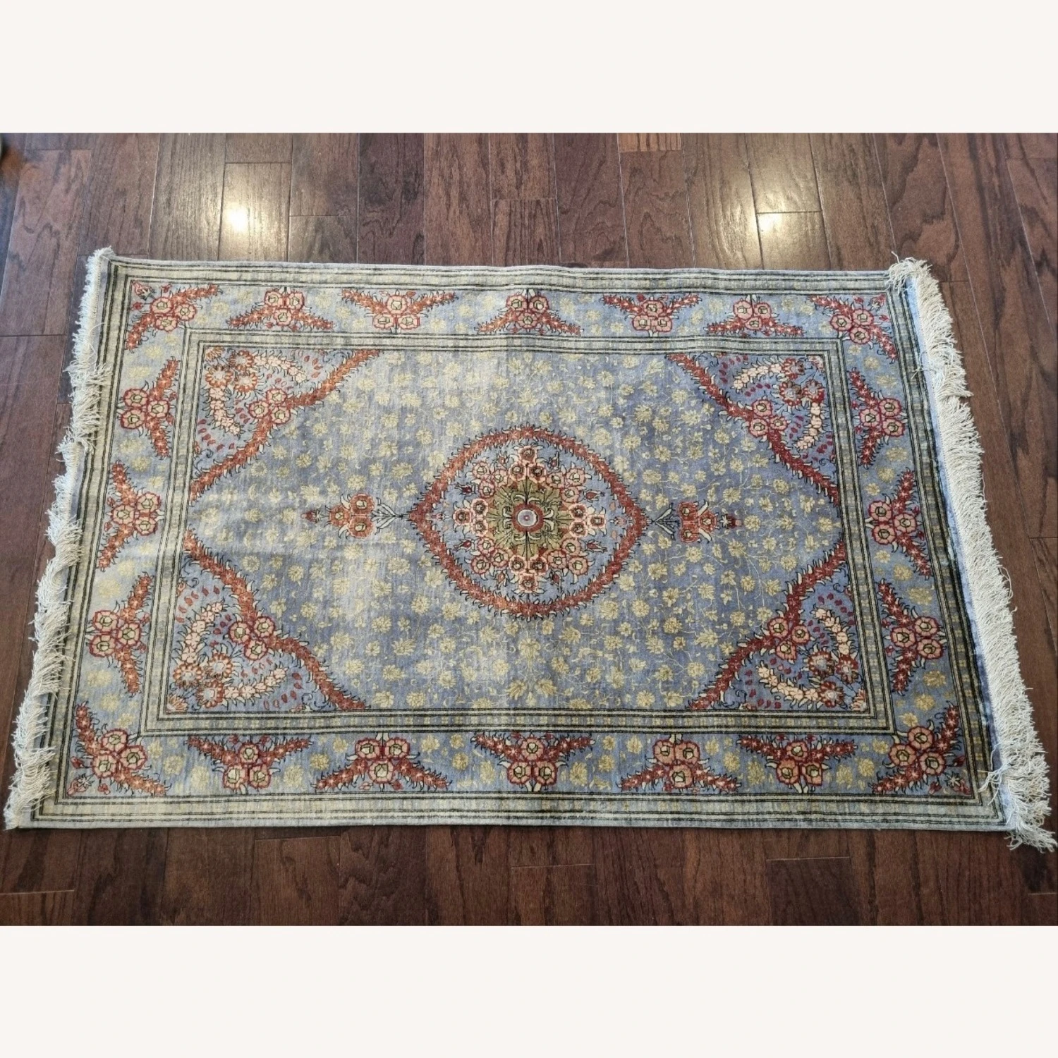 Seller’s Notes: Beautiful silk rug from Iran. My parents purchased it from Iran back in 1993. Well kept.