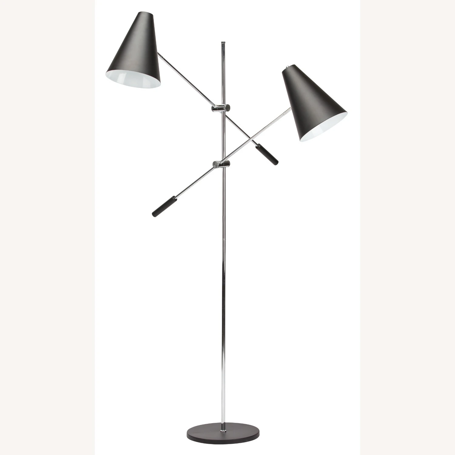 Seller’s Notes: This floor light’s two articulated shades ensure highly customizable illumination in a stylishly elegant package.
