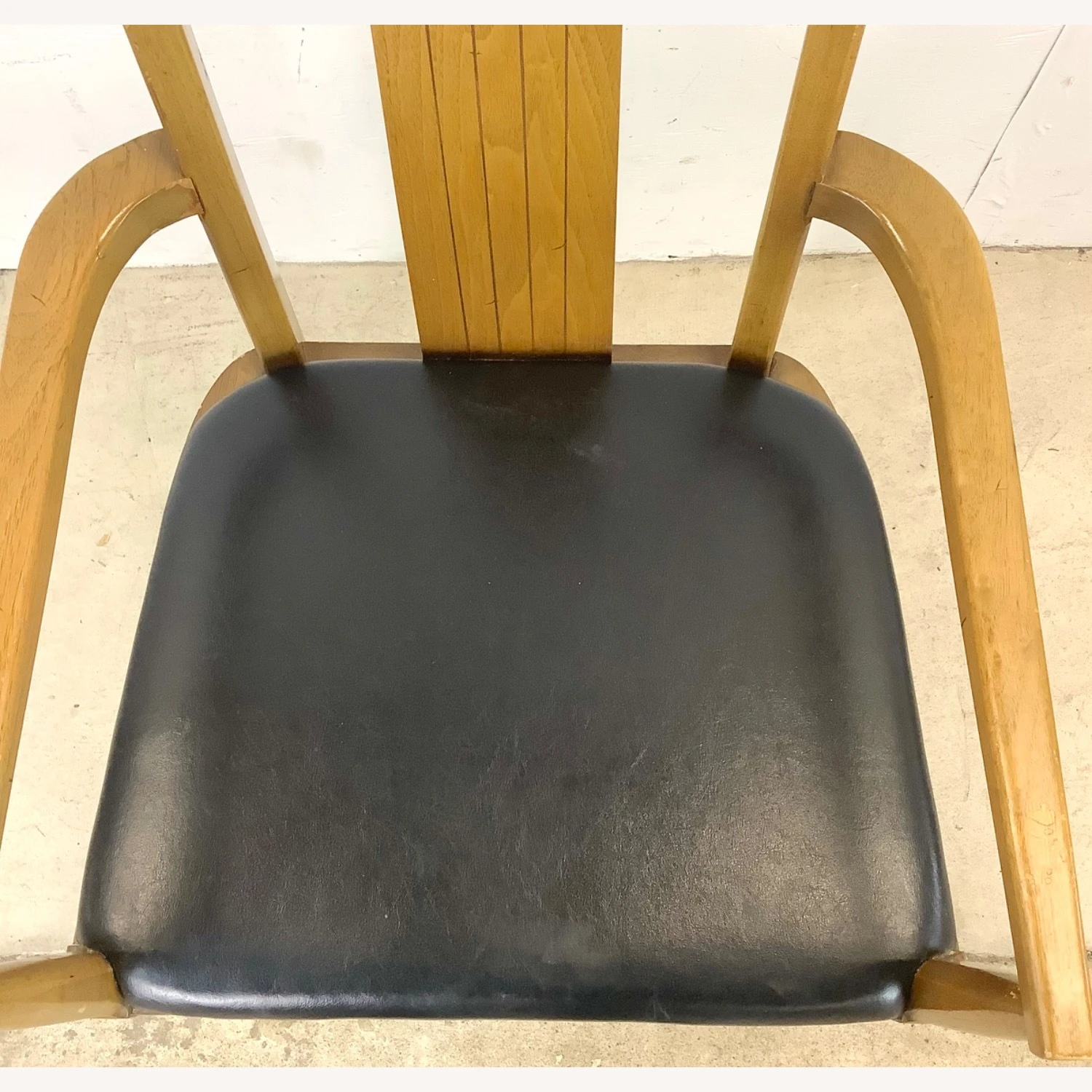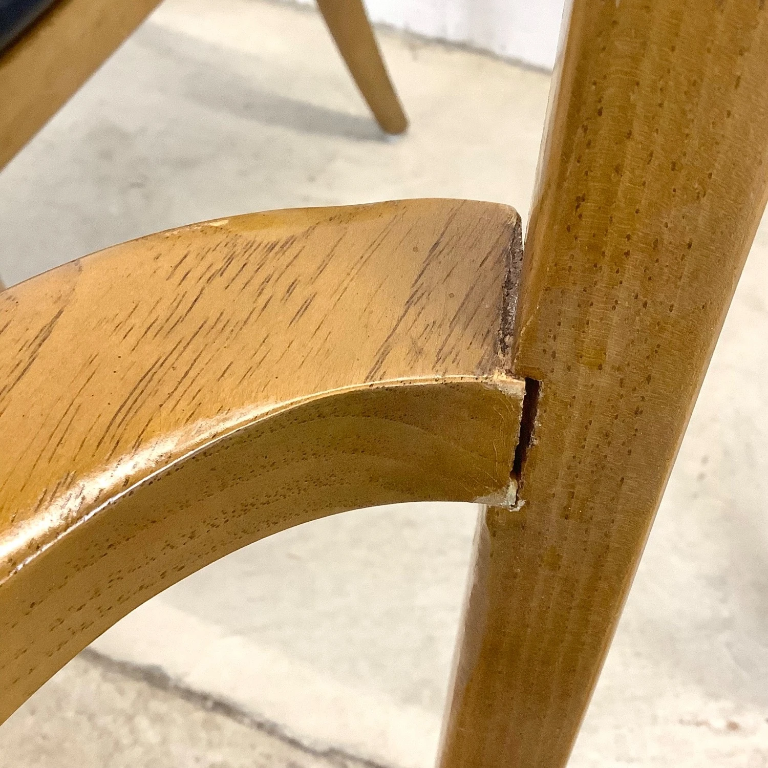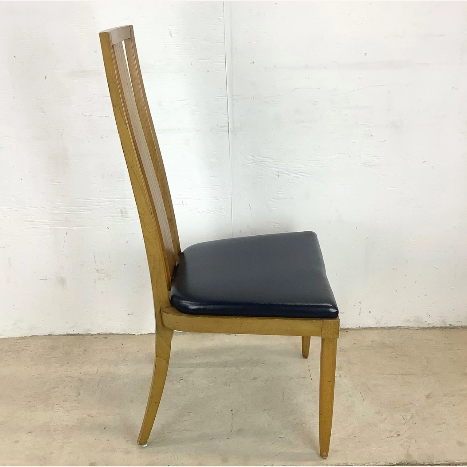 Seller’s Notes: This matching set of six dining chairs from the Tomlinson “Sophisticate” line features solid wood chair frames with upholstered seats and tall seat backs. This substantial set of vintage dining chairs makes a striking addition to any dining room or kitchen seating area.