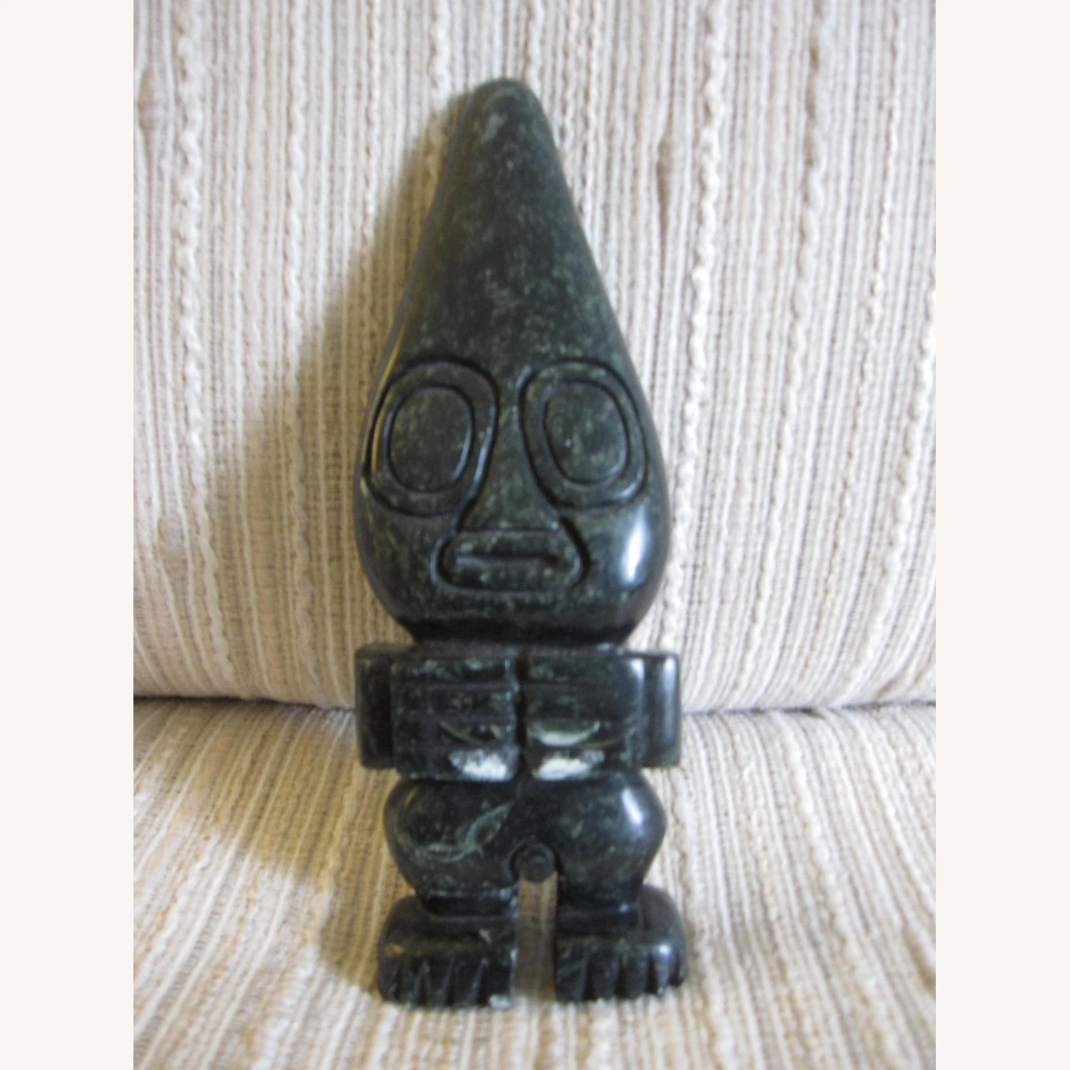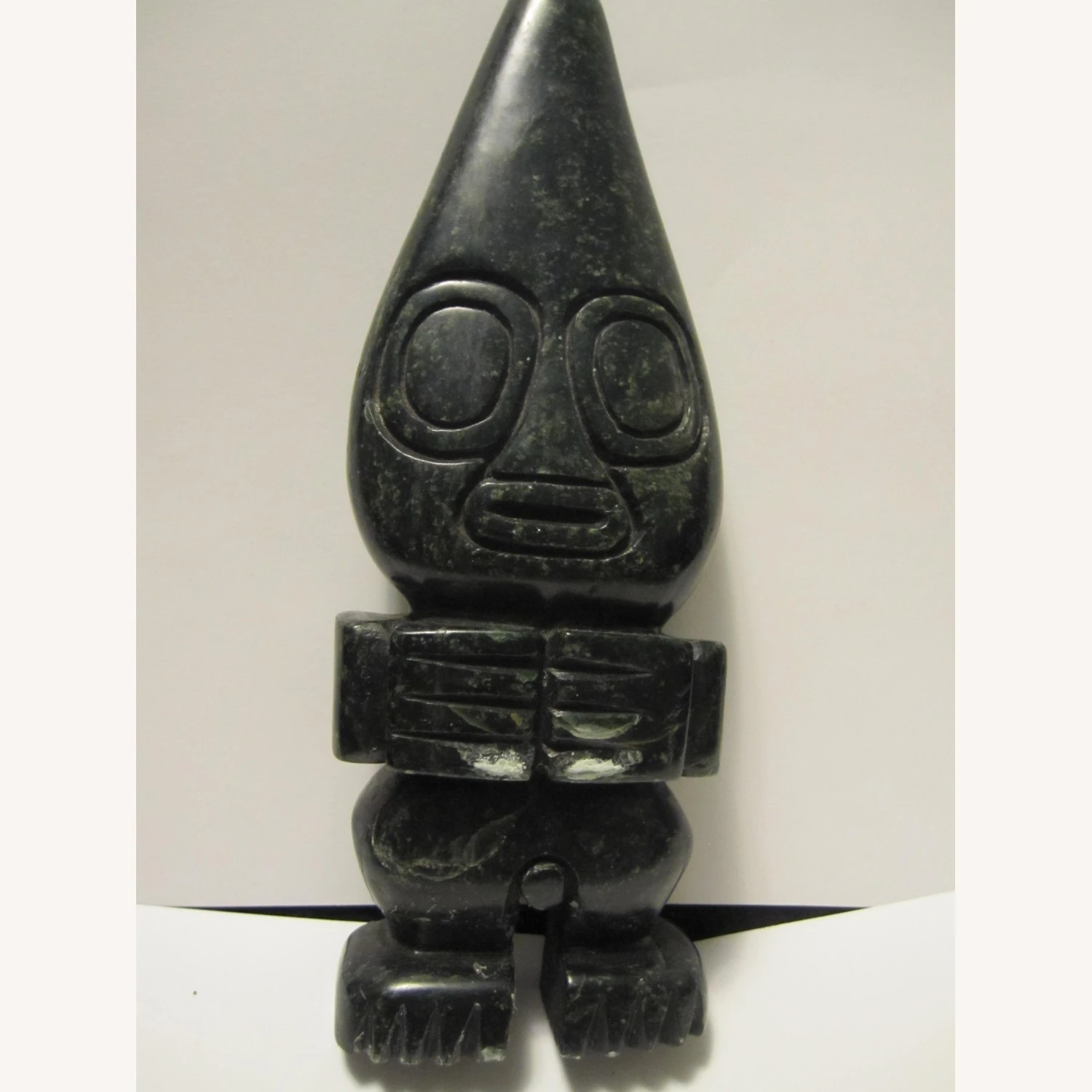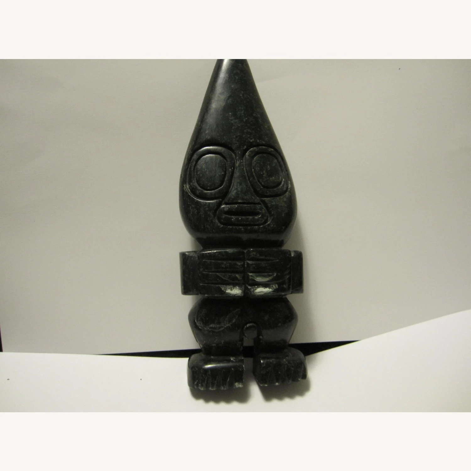 Seller’s Notes: Vintage black stone sculpture, possibly from Central America, 7″ high, 2 1/2″ wide, has some chips