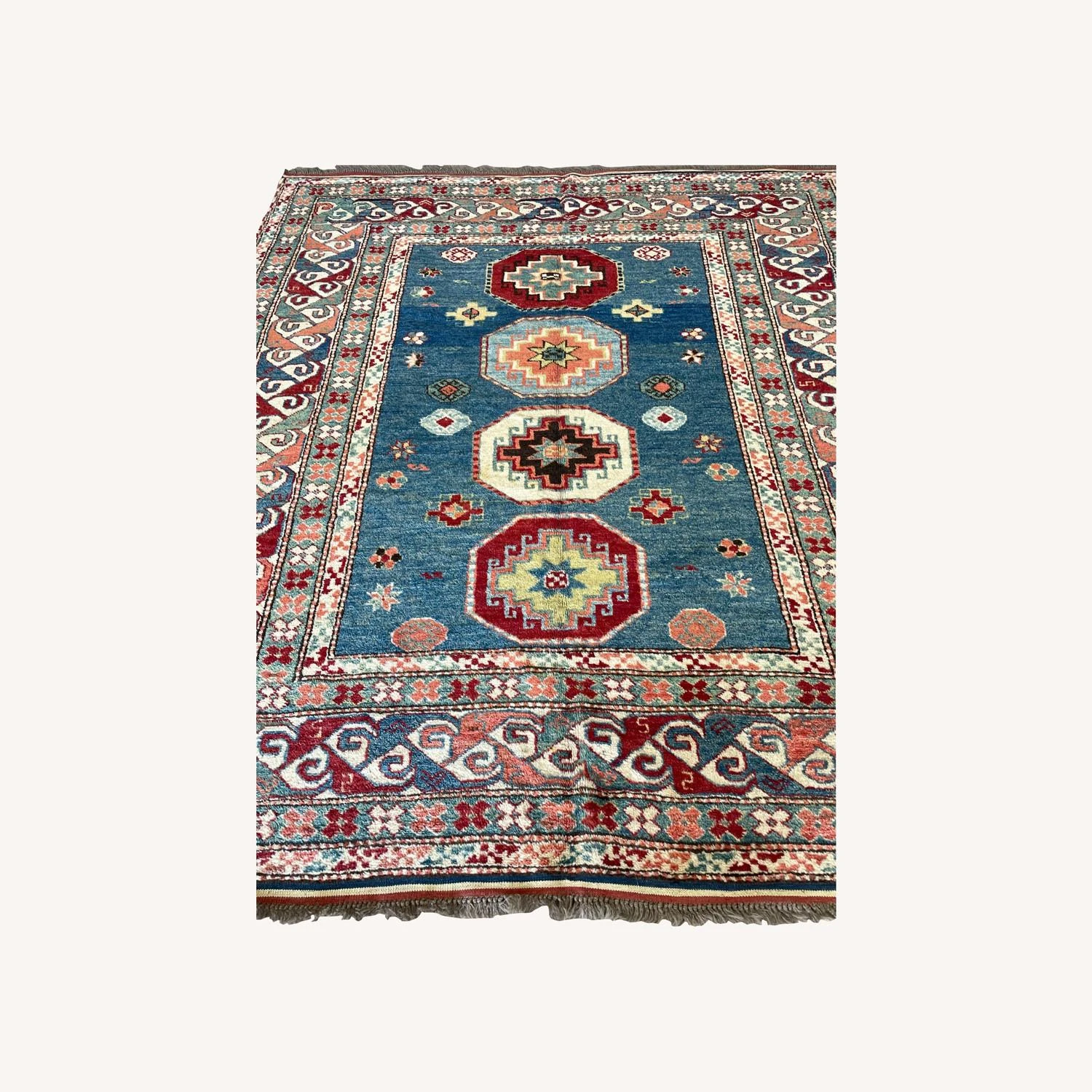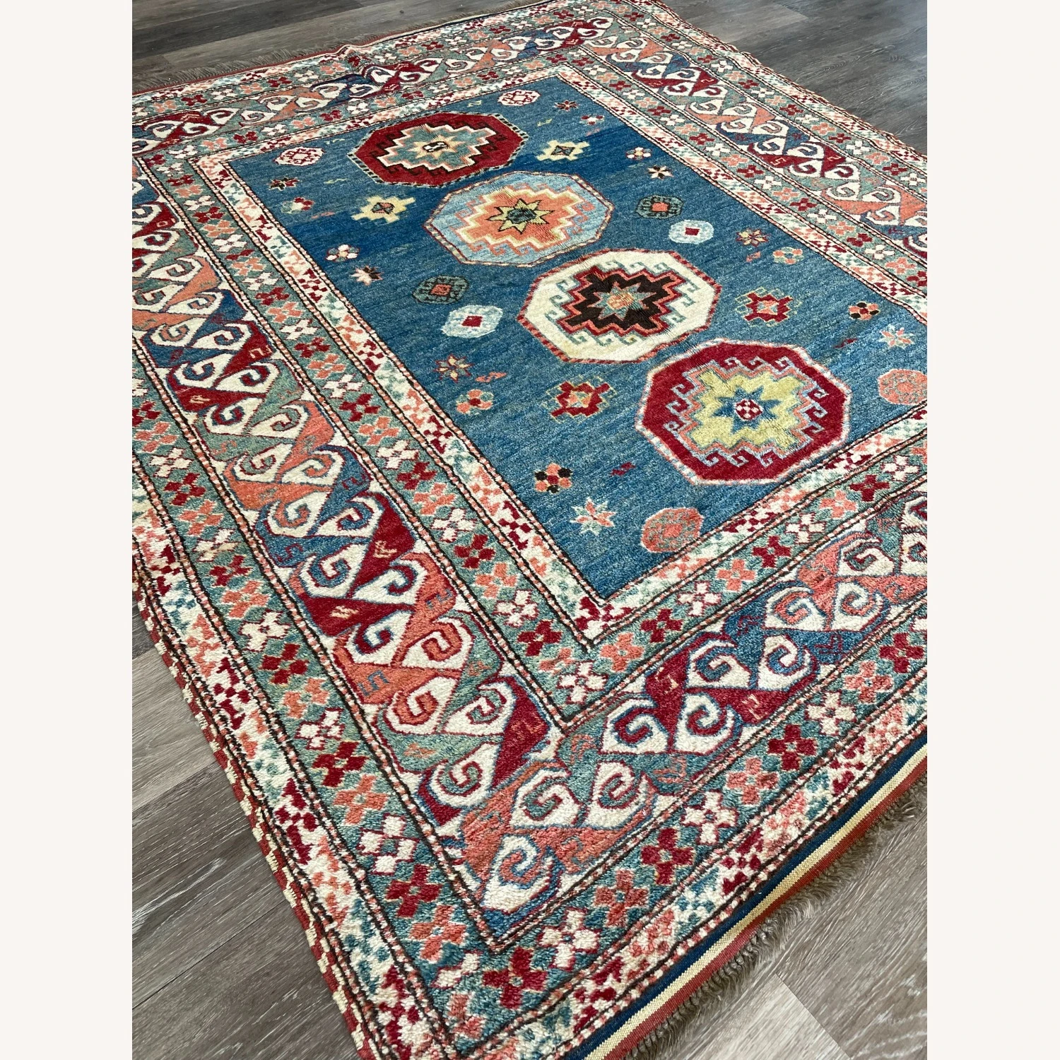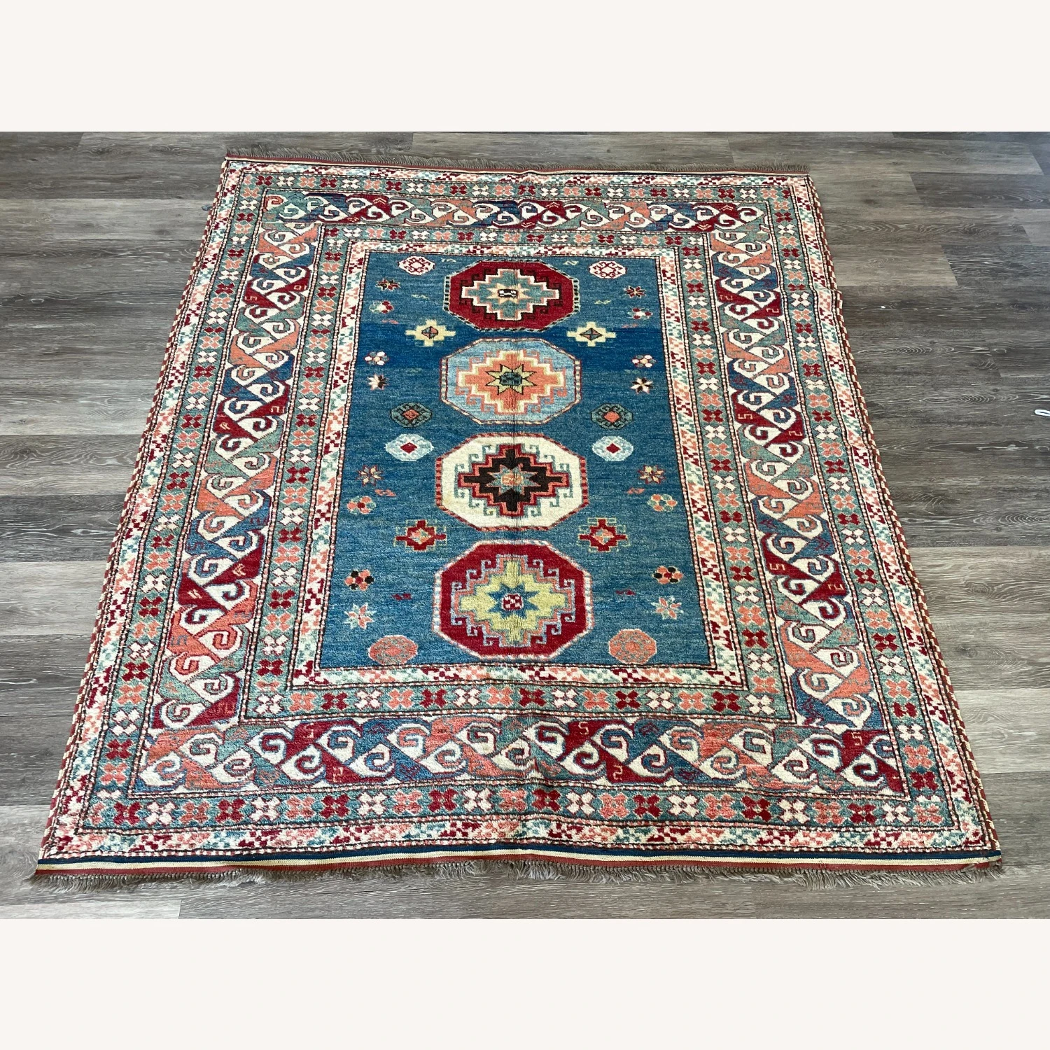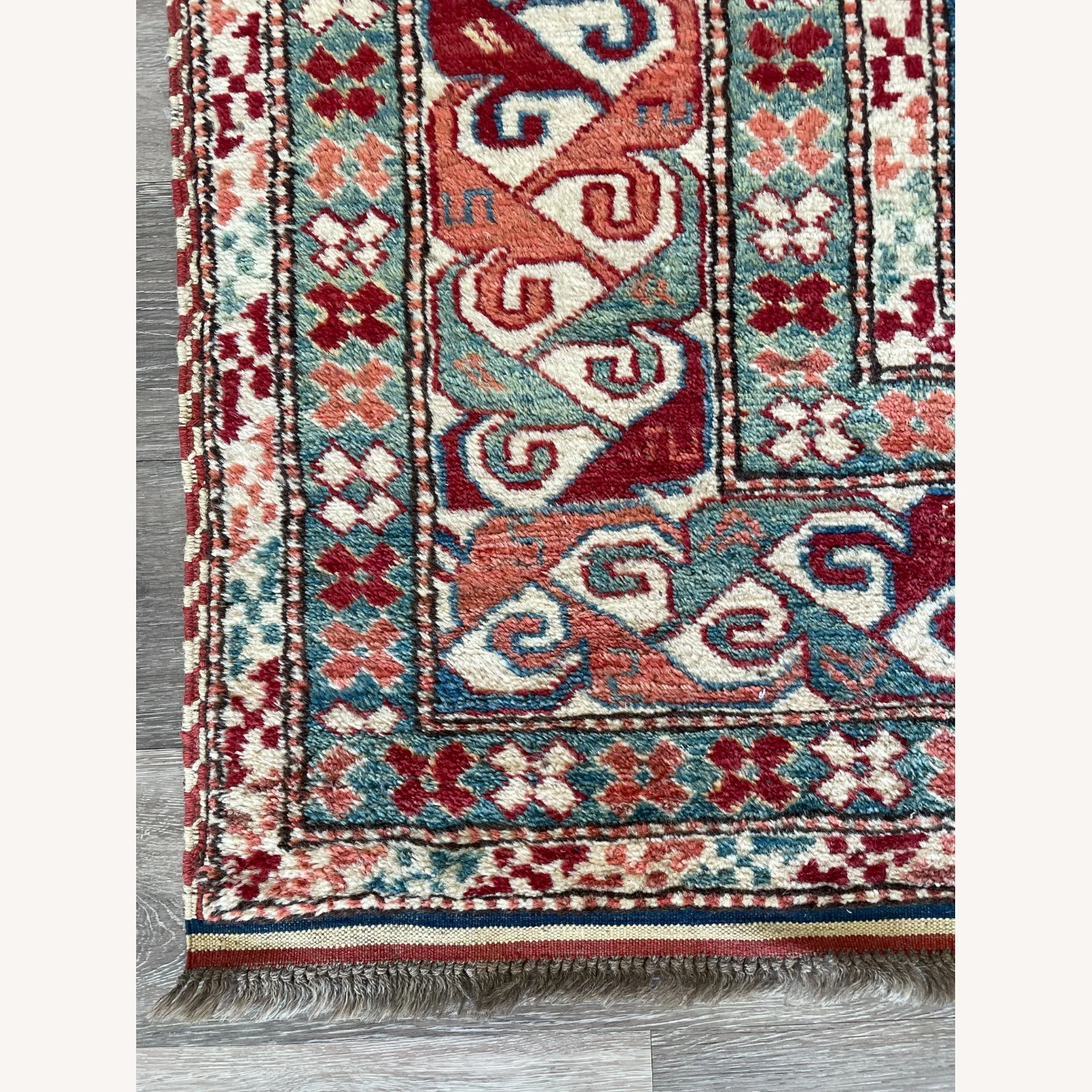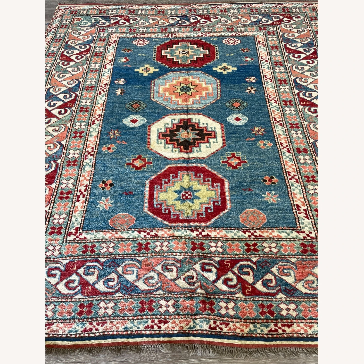 Seller’s Notes: This gorgeous vintage rug was handmade in circa 1980. It is 100% wool on a cotton foundation. Gorgeous vibrant color palette.