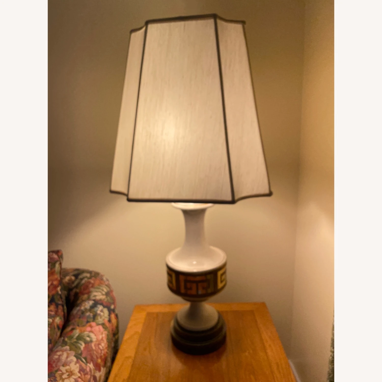 Wear and tear details: One lampshade is new, the other old.