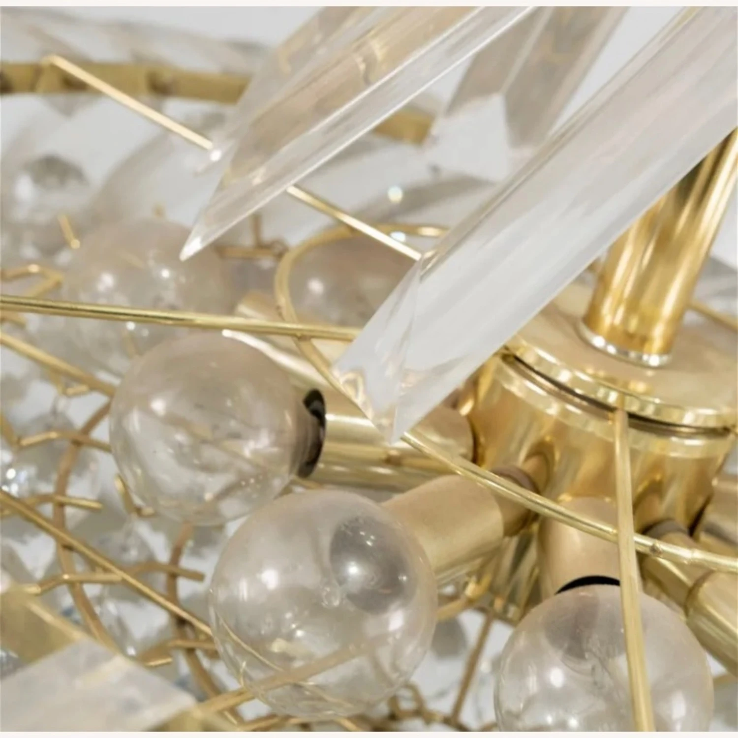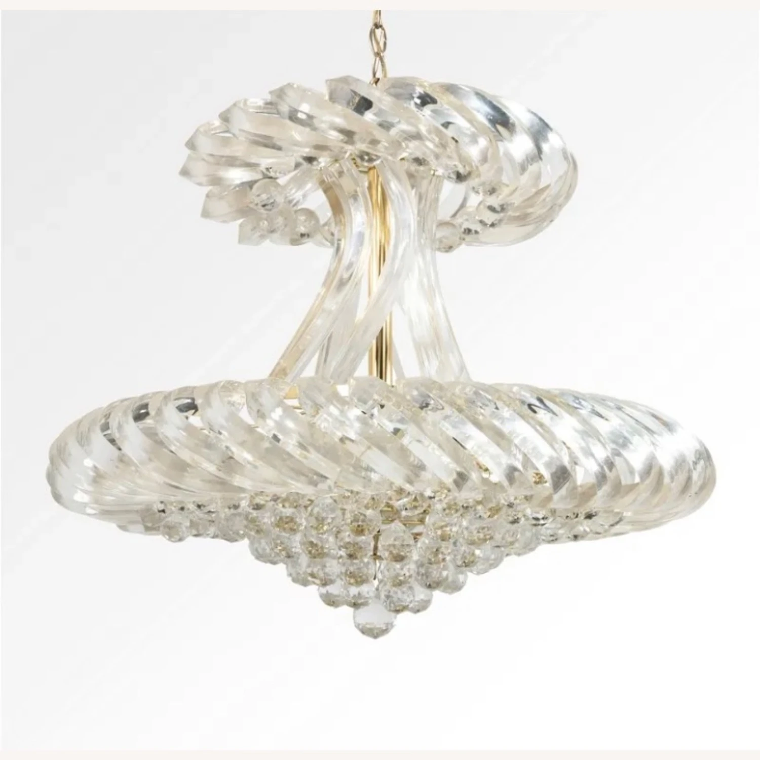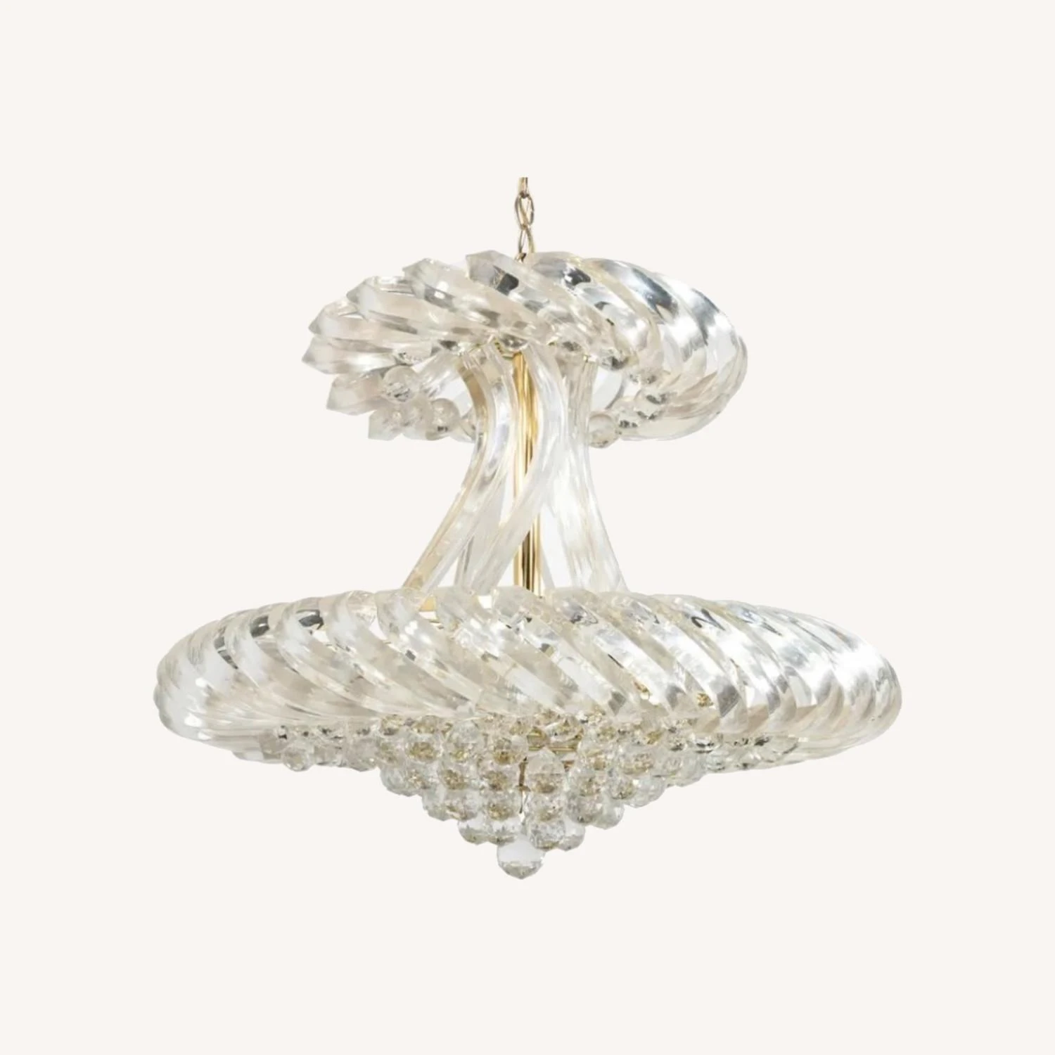 Seller’s Notes: A vintage, bent lucite chandelier with faceted glass balls. 24 x 27 / Drop – 19. Measurements are in inches. (Height x Width x Depth)