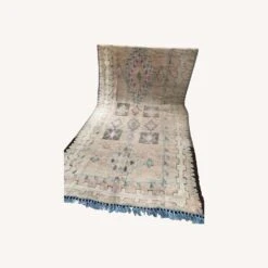 Seller’s Notes: Lovely vintage Moroccan rug from Rehamna, which is made by the Haouz Berber tribe in the plains of Morocco, near Marrakech. Rehamnas typically have the toothy-patterned side trim, seen here, which is made of goat hair. A lovely range of colors with the perfect fade. This rug is faded naturally, not using any chemicals to fade (which is common today given customers want a faded look). It’s low pile, but soft! Sourced myself in Morocco for my company, vintage maroc. 5’6″x11′