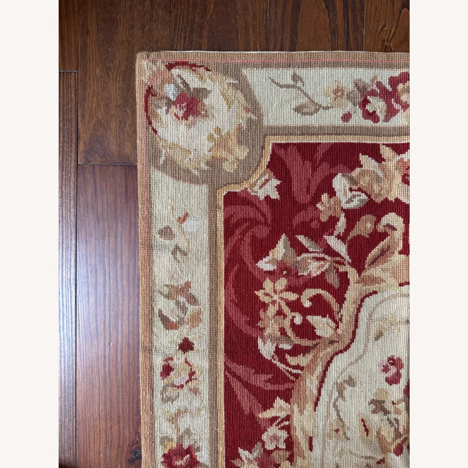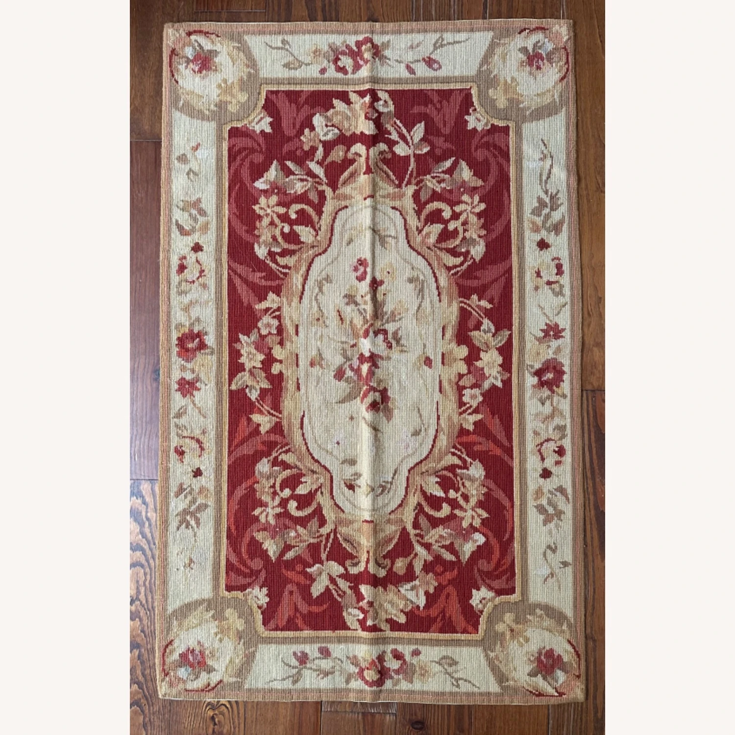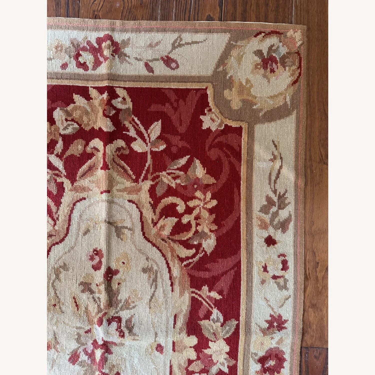 Seller’s Notes: Beautiful one of a kind, handmade vintage petit point 100 percent wool rug.