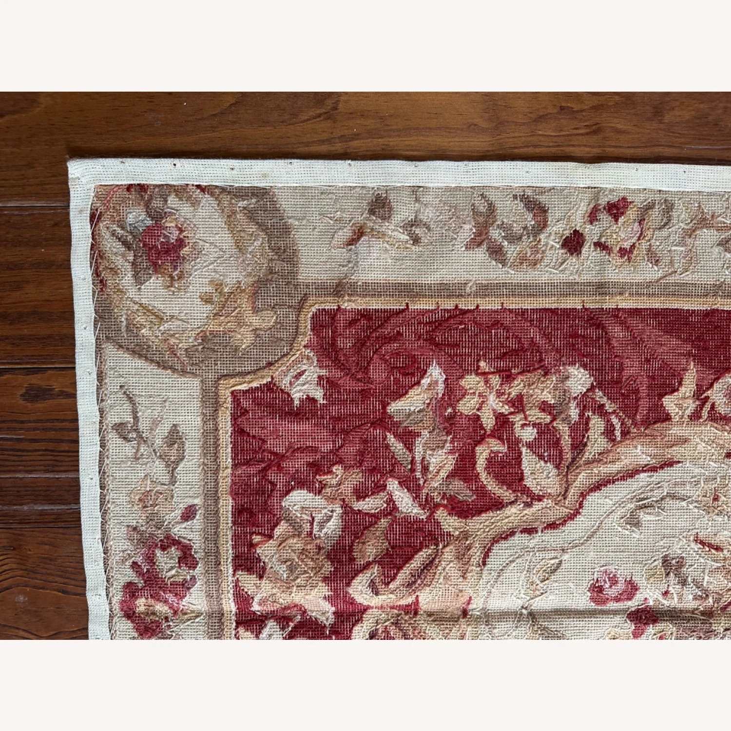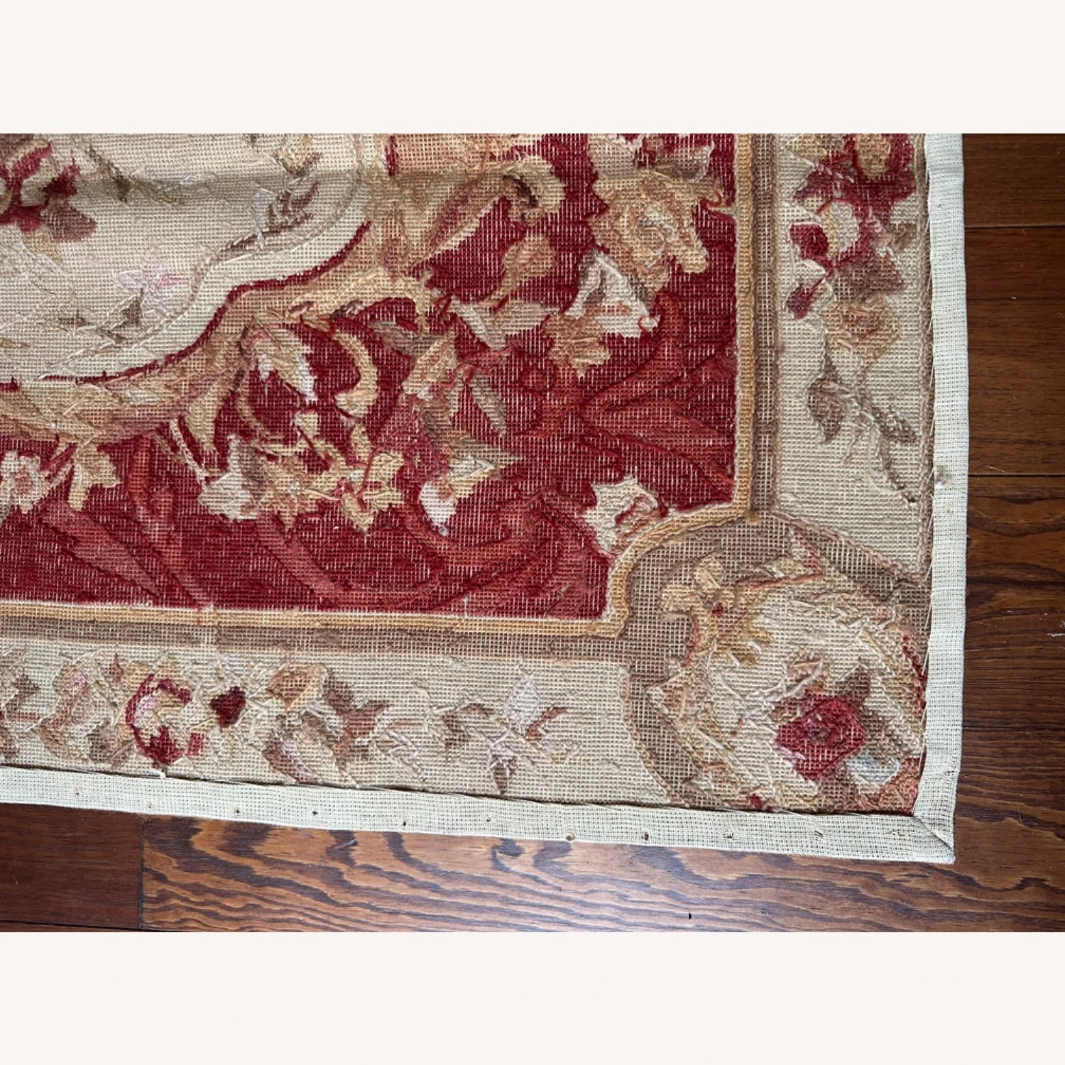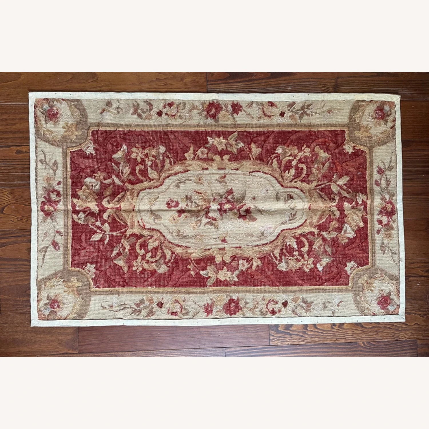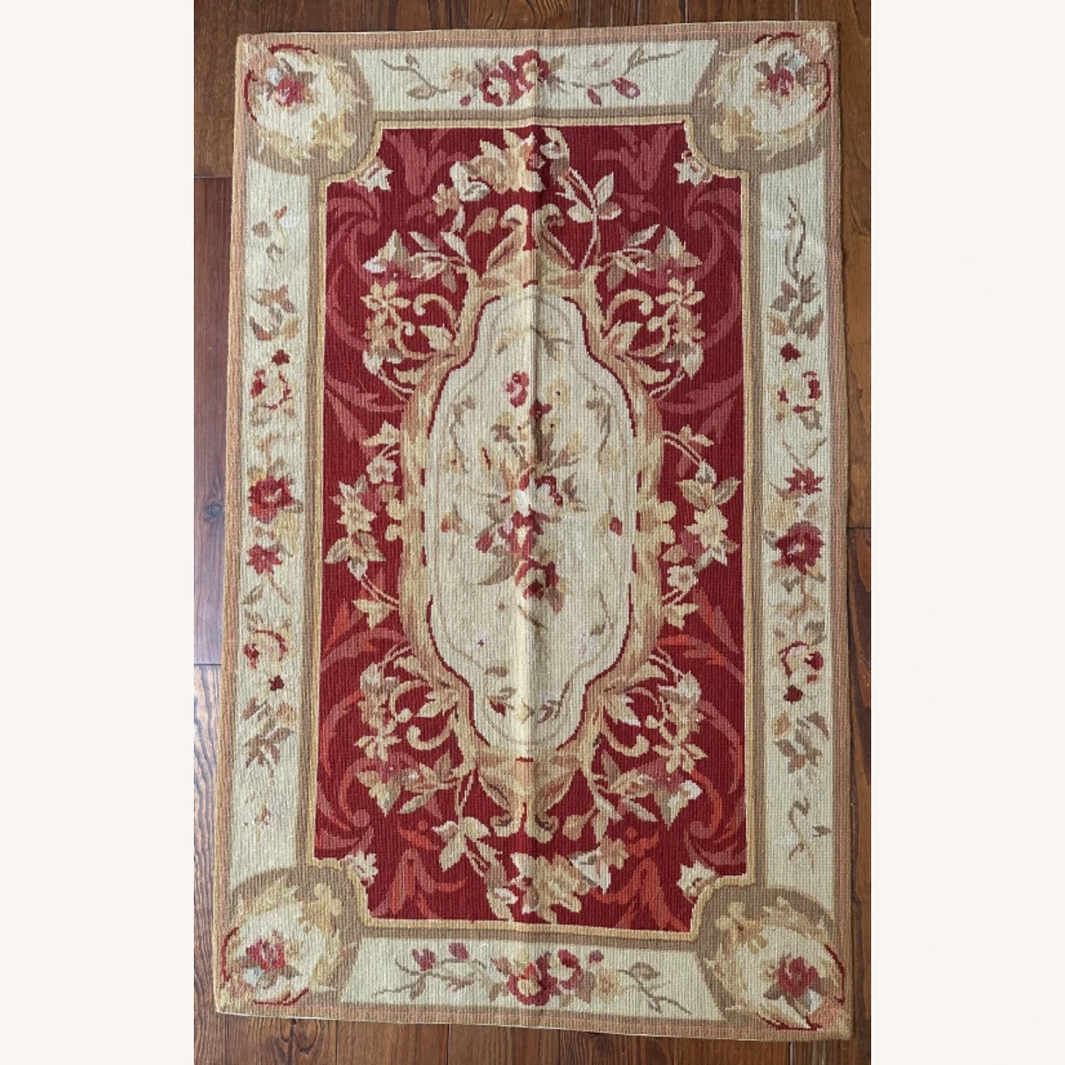 Seller’s Notes: Beautiful one of a kind, handmade vintage petit point 100 percent wool rug.