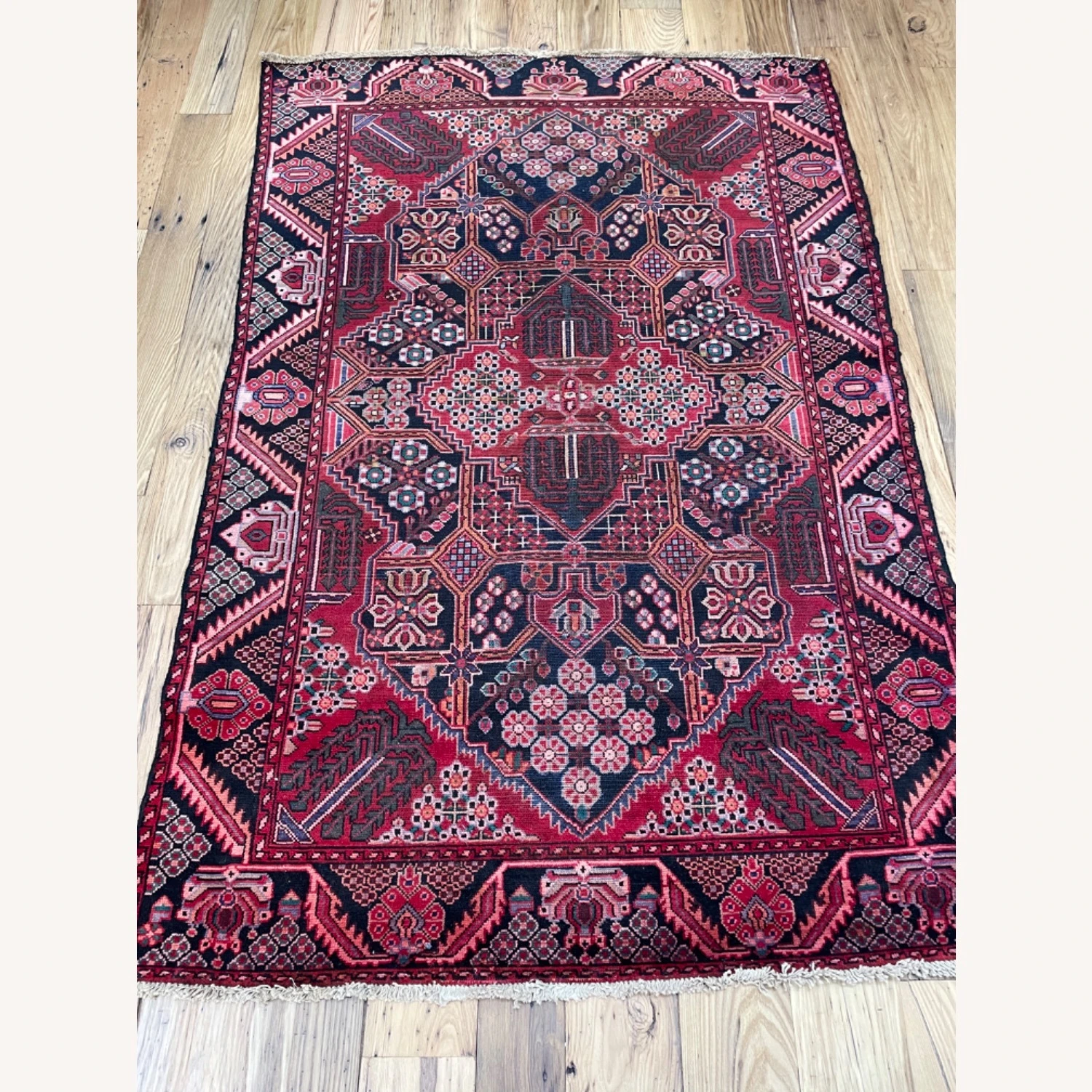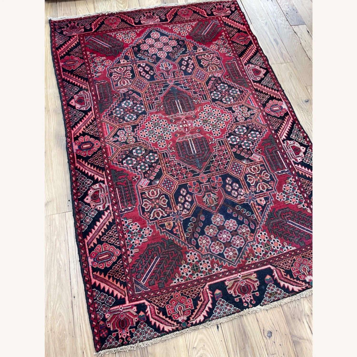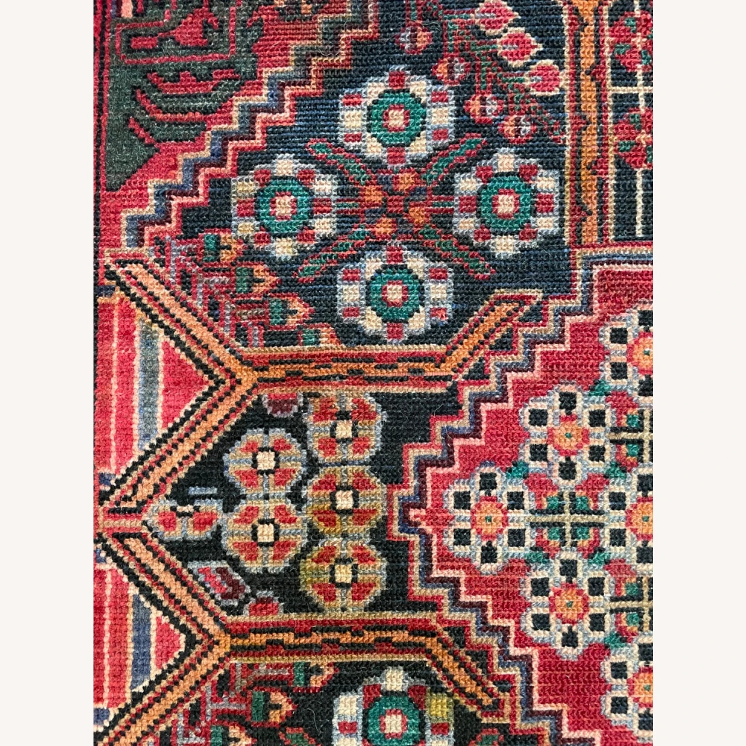 Seller’s Notes: Gorgeous vintage rug with a lovely pattern and range of colors. Incredibly sturdy and well made. Amazing condition.