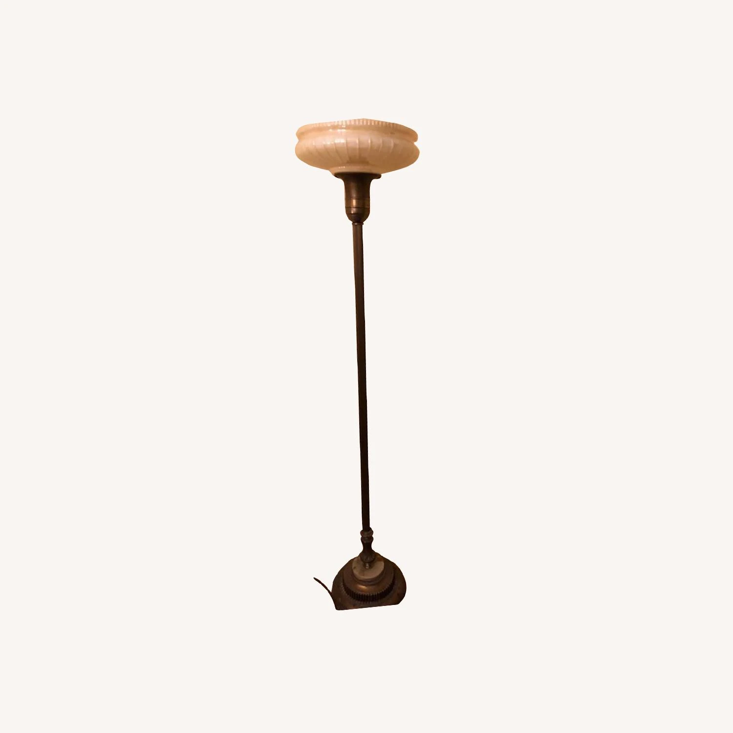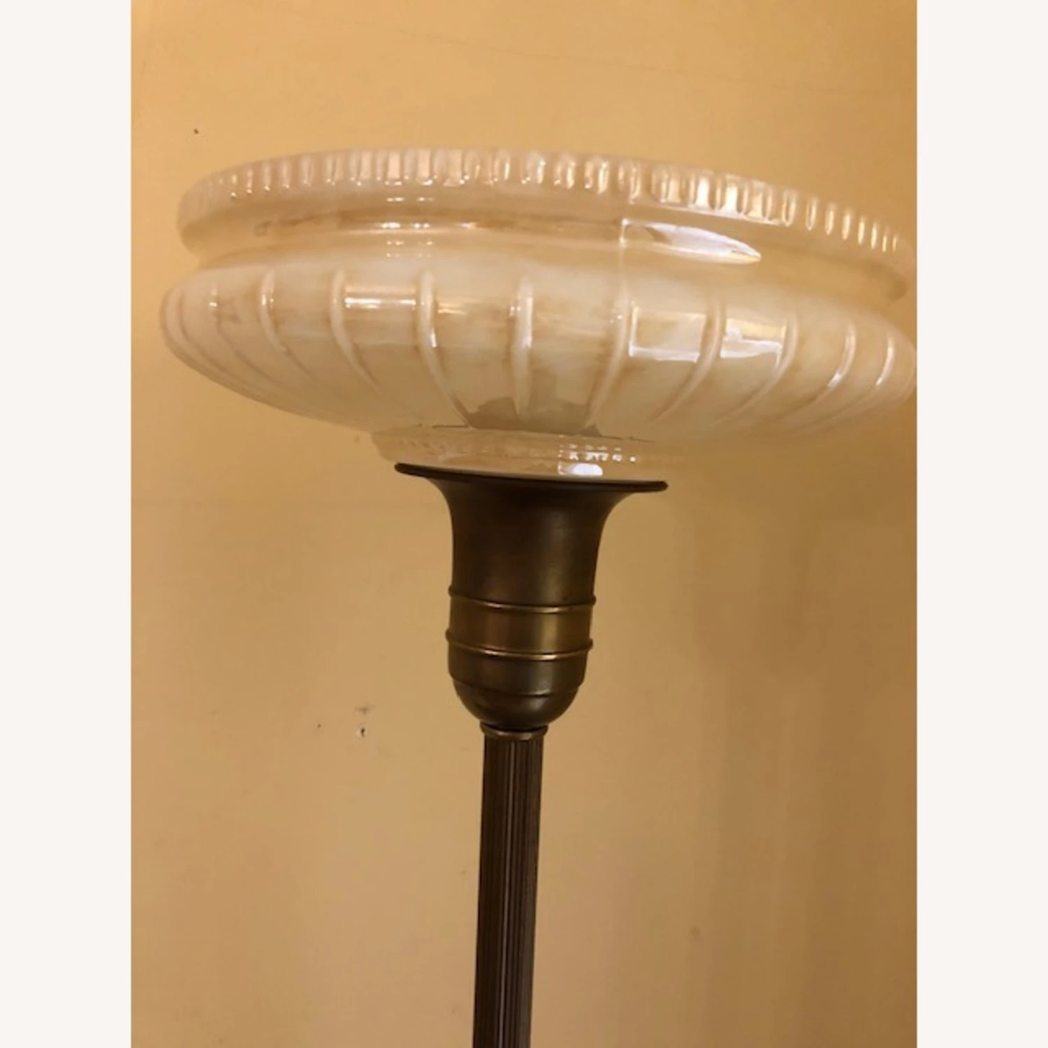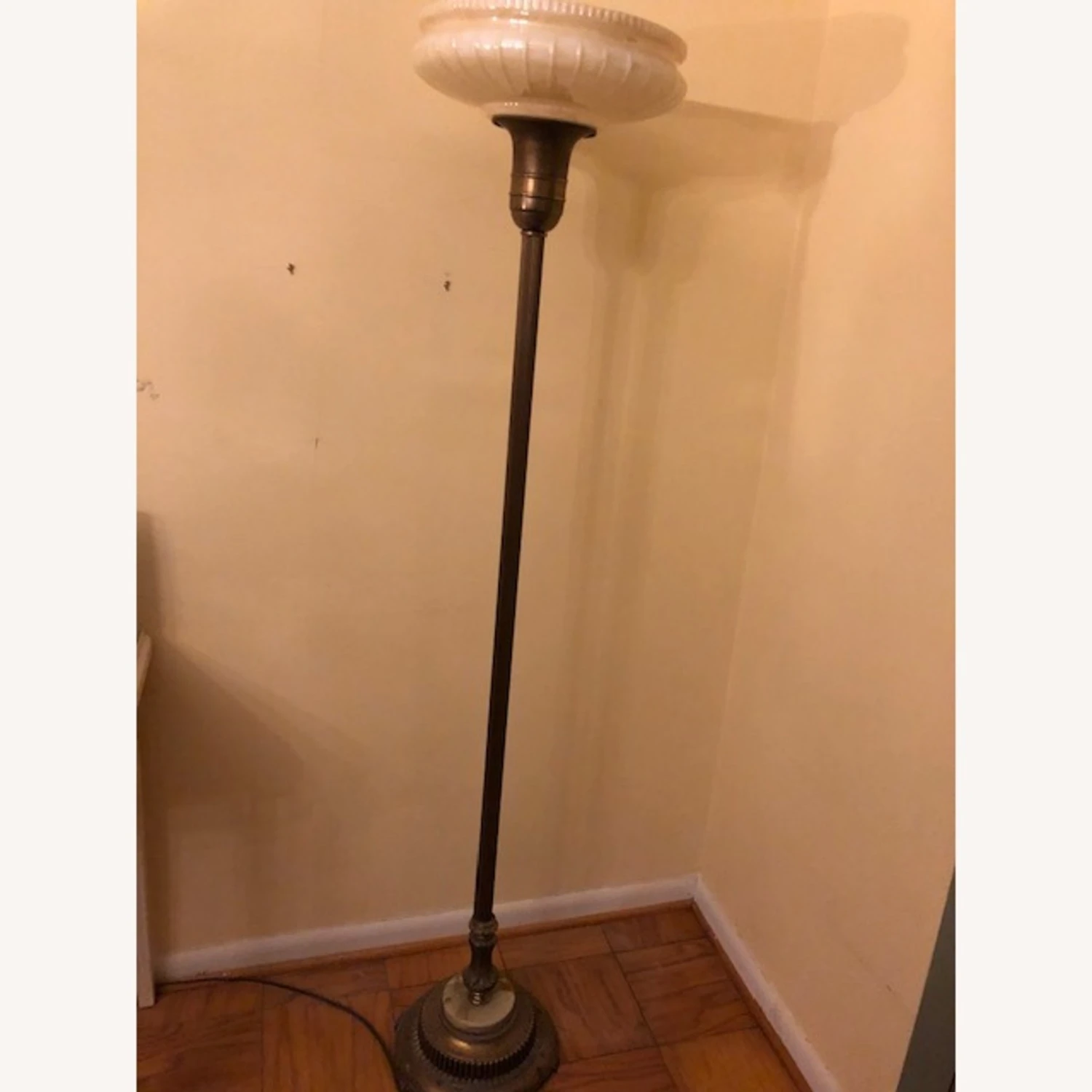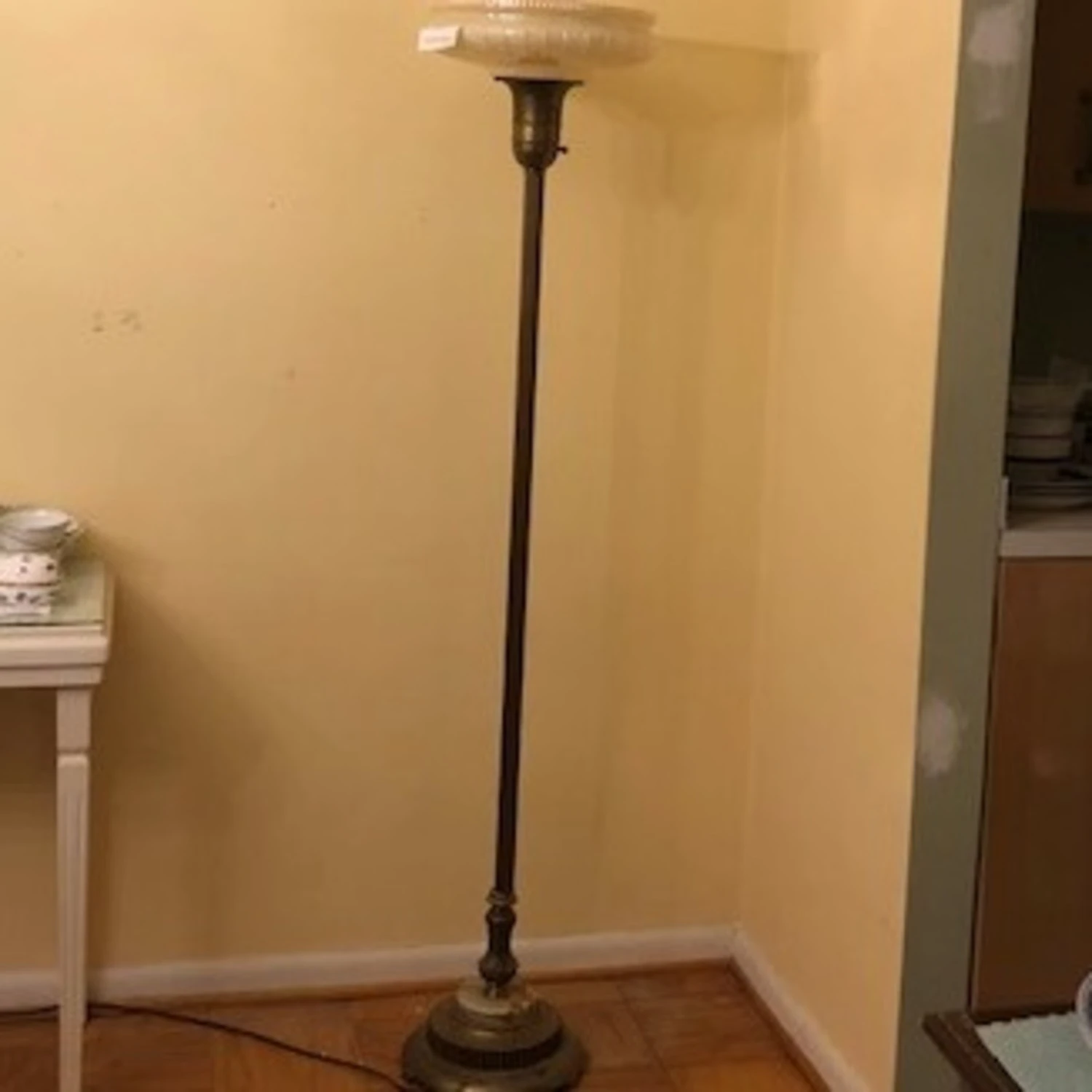 Seller’s Notes: Pretty lamp, shade is 13in,stone base, some spots on base, selling for relatives in mid-late 90s