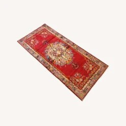 Seller’s Notes: Immerse yourself in the resplendent warmth and rich cultural heritage of Turkey’s Mediterranean region with this remarkable Vintage Tribal Hand-Knotted Turkish Carpet, originating from the vibrant city of Antalya. A jewel among rugs, it proudly showcases a captivating shade of red, reminiscent of the passionate sunsets that grace the Mediterranean horizon.