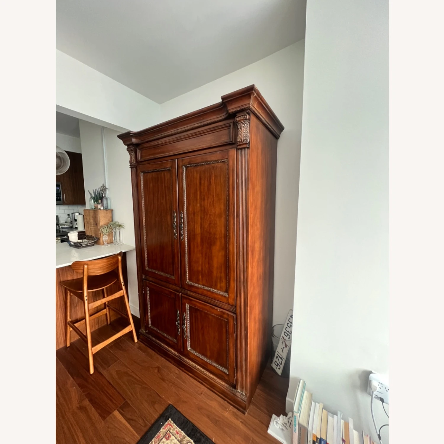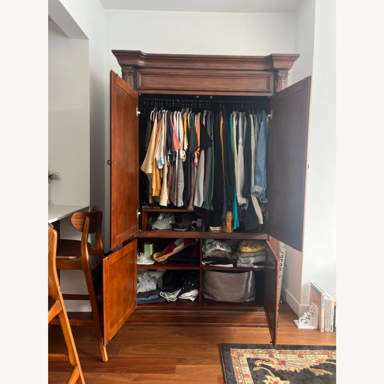 Seller’s Notes: Never run out of space again!! Solid wood, literally they do not make them like this anymore! I bought this to serve as an additional closet for my NYC studio apartment and itโs been the perfect piece. Some wear/scratches, but not super noticeable with the way it is finished. Custom built.