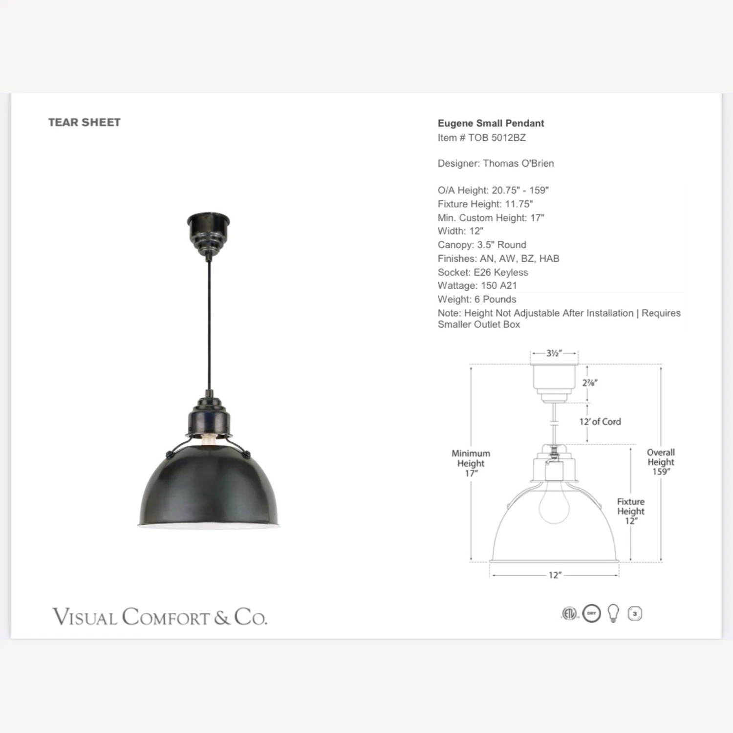 Seller’s Notes: Fell in love with this light with plans to install in our current kitchen when we had to move to a new home with a very different kitchen layout.