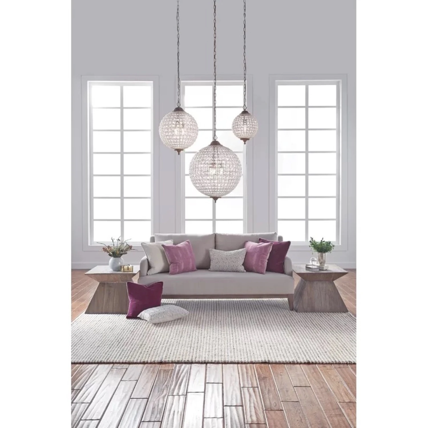 Seller’s Notes: The Haviland 3 – Light Single Globe Pendant Chandelier by Lark Manor is an identical replica of the Arhaus Poppy Round Chandelier. It was too large for my kitchen remodel and has been completely unused. It features an adjustable chain and an ornate header with a matching bottom finial. The globe shade features a cage design, strung with hundreds of faceted crystals, which glitter in the light. This pendant requires one maximum 40W standard bulb.