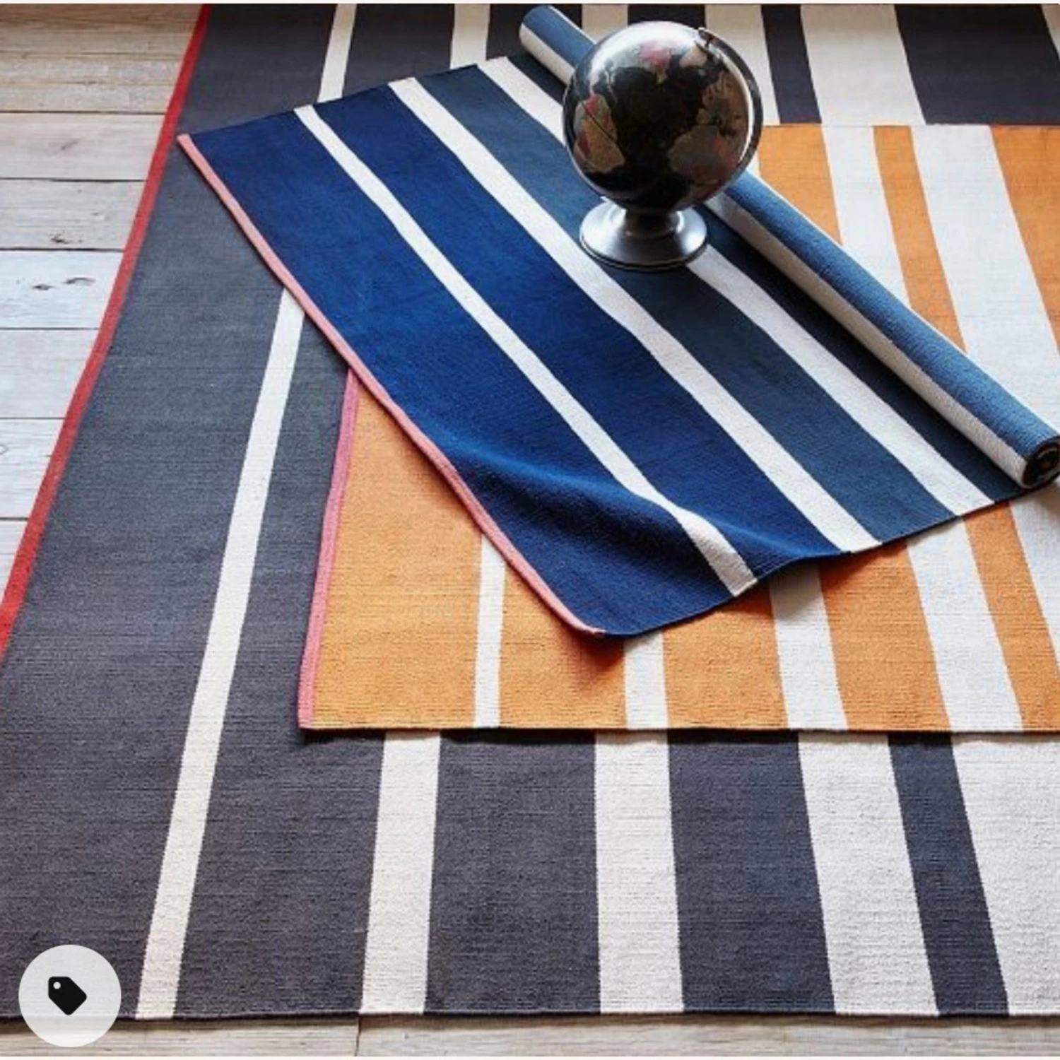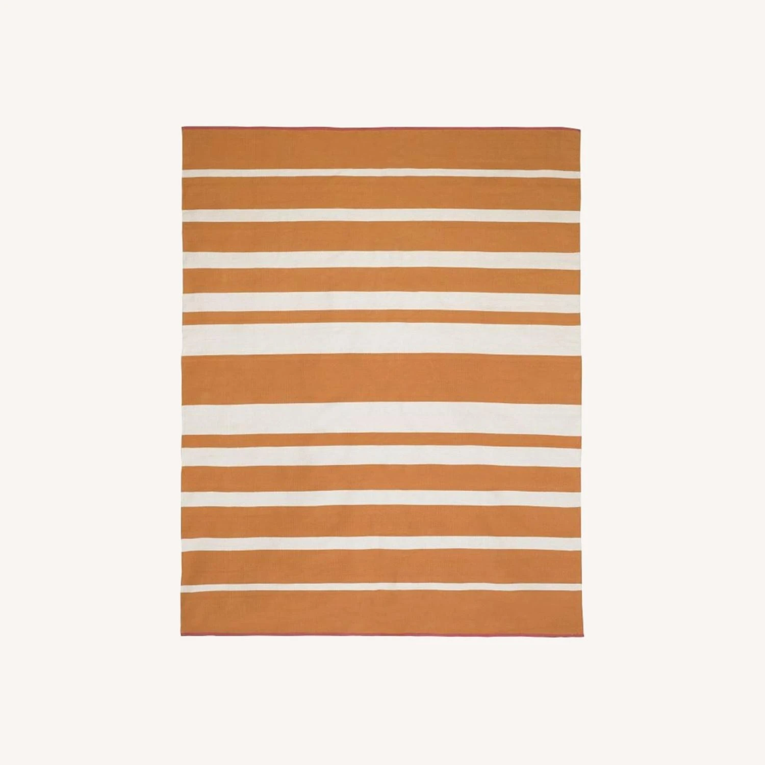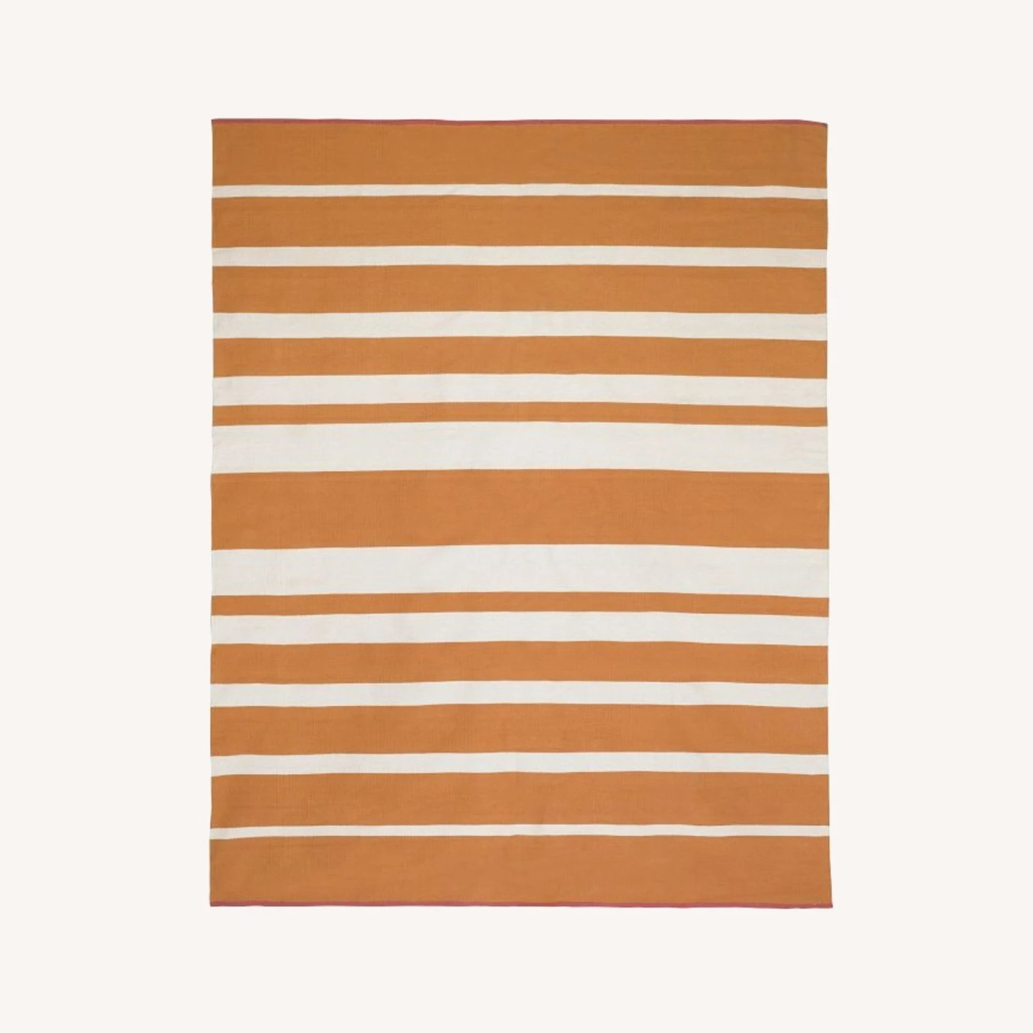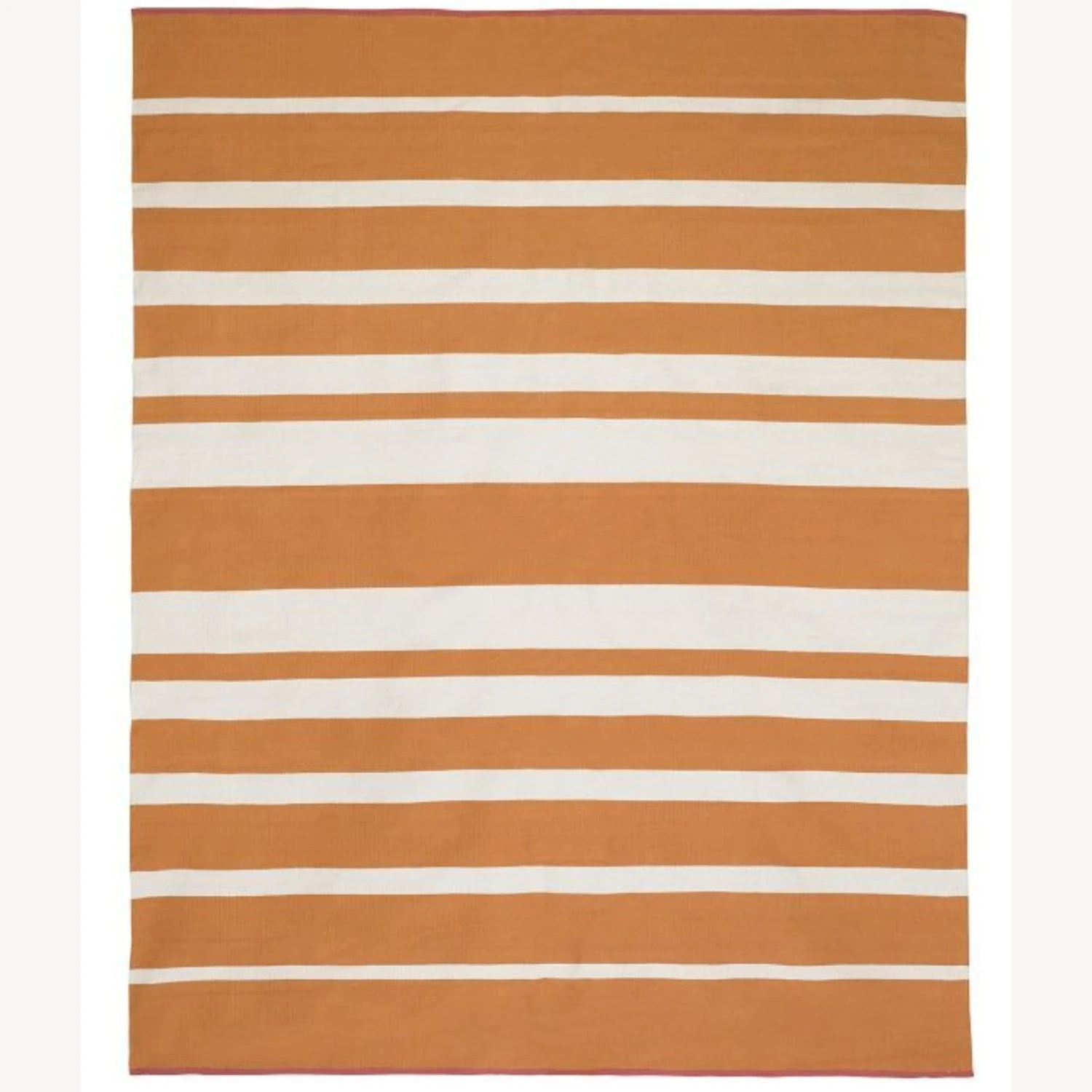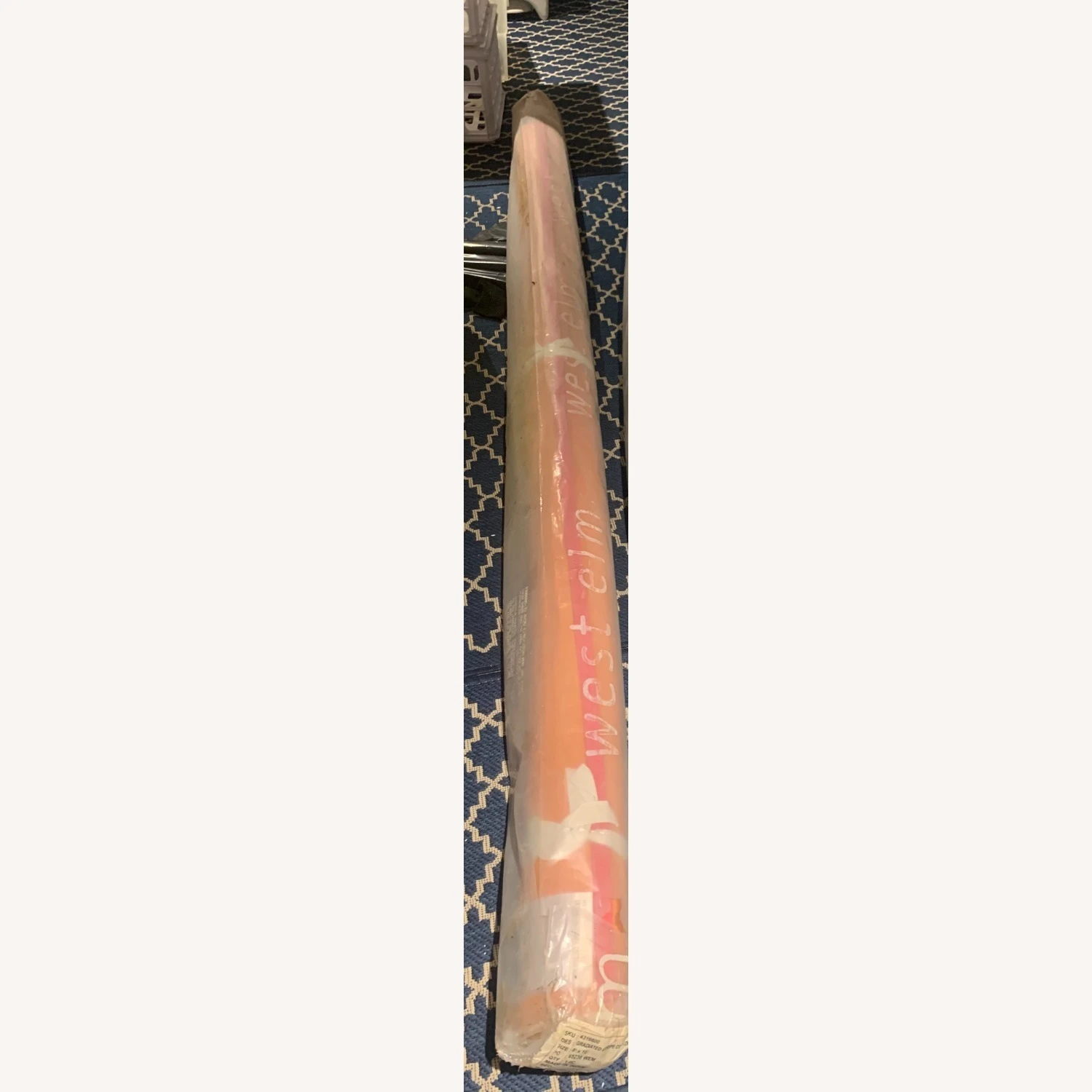 It needs to be cleaned since it’s gotten a bit dusty in the closet/move but in perfect condition. Very pretty and oversized. It really brightens up the room. We had it placed under our bed and it was still large enough to leave a wide perimeter around the space.