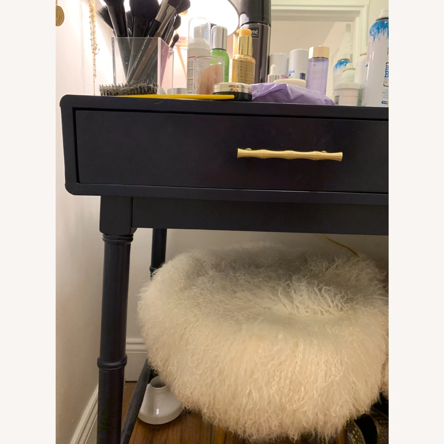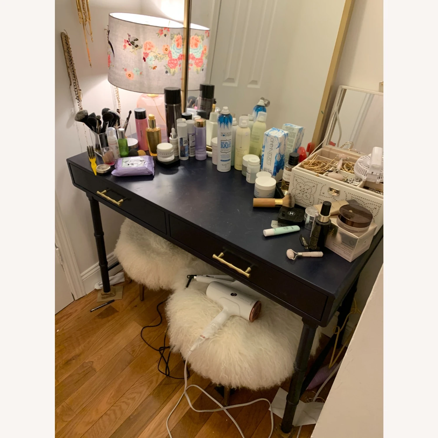 Seller’s Notes: Great condition! These stools were the perfect little seat for my desk (also listed on my page). They look great tucked under the desk, but they also are super comfortable to sit on while studying or doing makeup. They are in great condition given that I have only had them for a year and I have no pets. Please contact me if you would like to purchase only one stool.