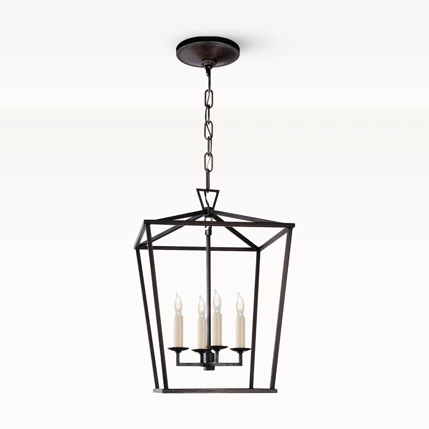 Seller’s Notes: A modern take on the traditional lantern, Darlana suspends candle-style lamps within an open steel frame. Dramatic yet airy, this four-arm fixture is as right in multiples over the kitchen island as it is solo in the foyer.