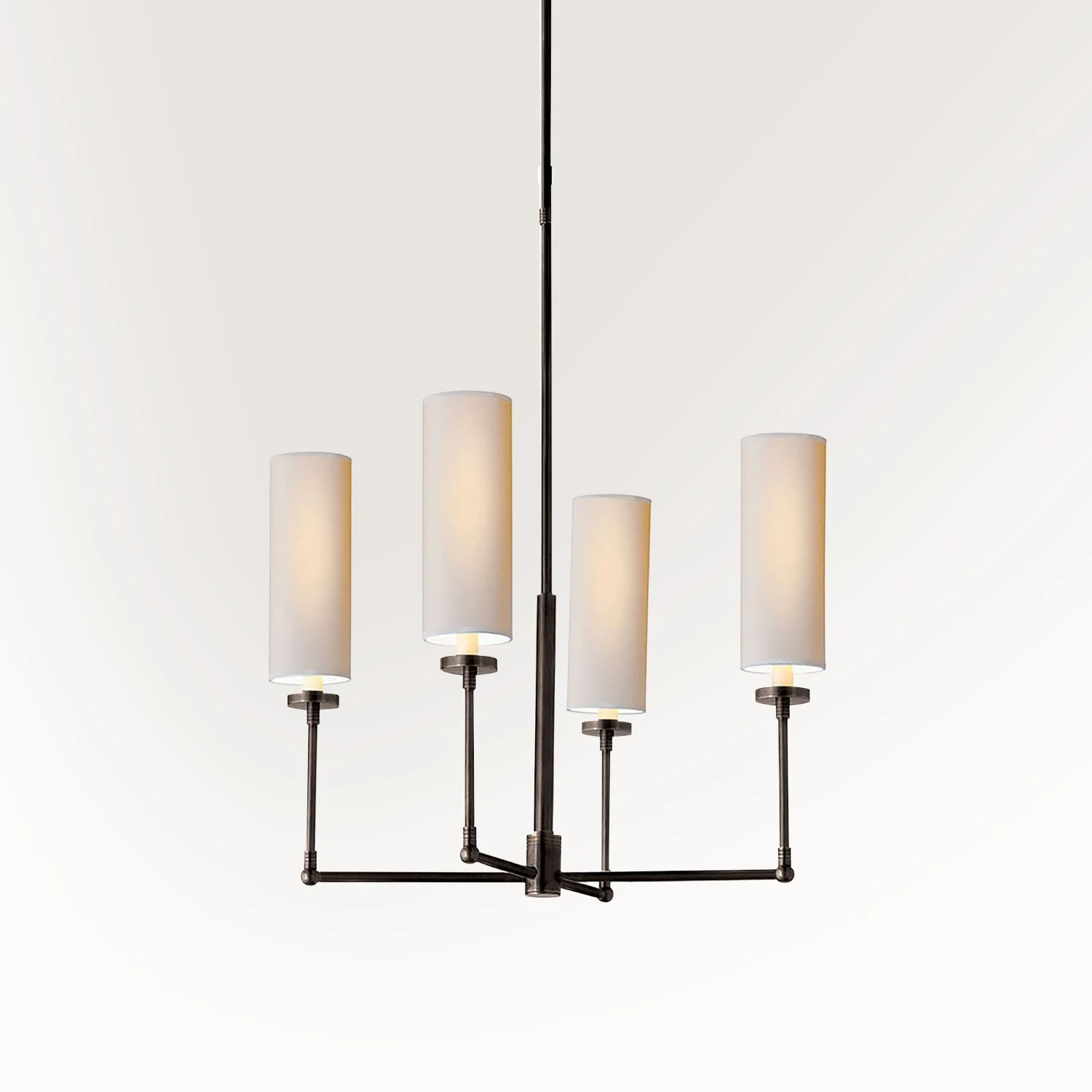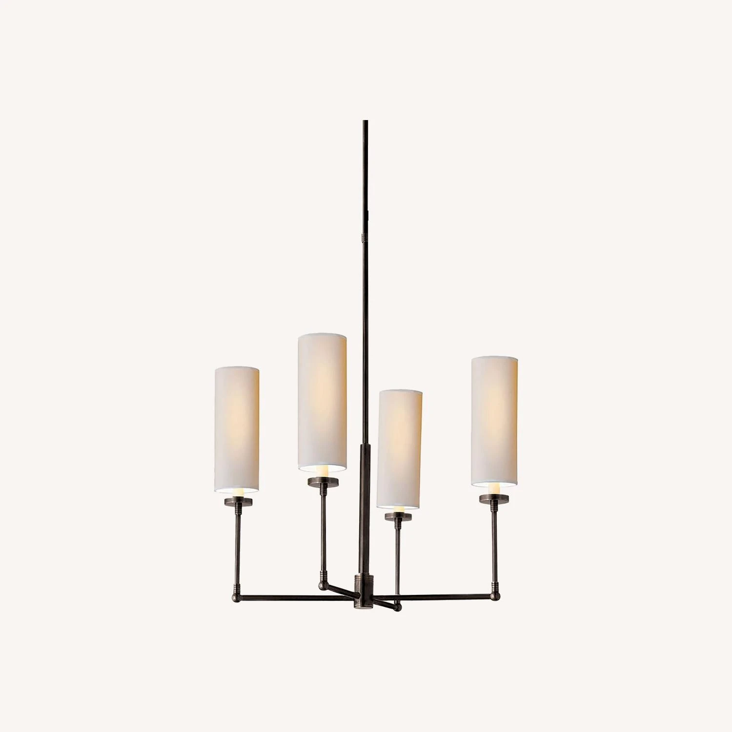 Seller’s Notes: Designer Thomas O’Brien brings his signature understated glamour to this fixture, topping four slim, angled arms with cylindrical paper shades, diffusing the light to a warm glow. For a look that feels modern, retro and industrial all at once, this chandelier is ideally sized for a variety of spaces, from the foyer to the dining room.